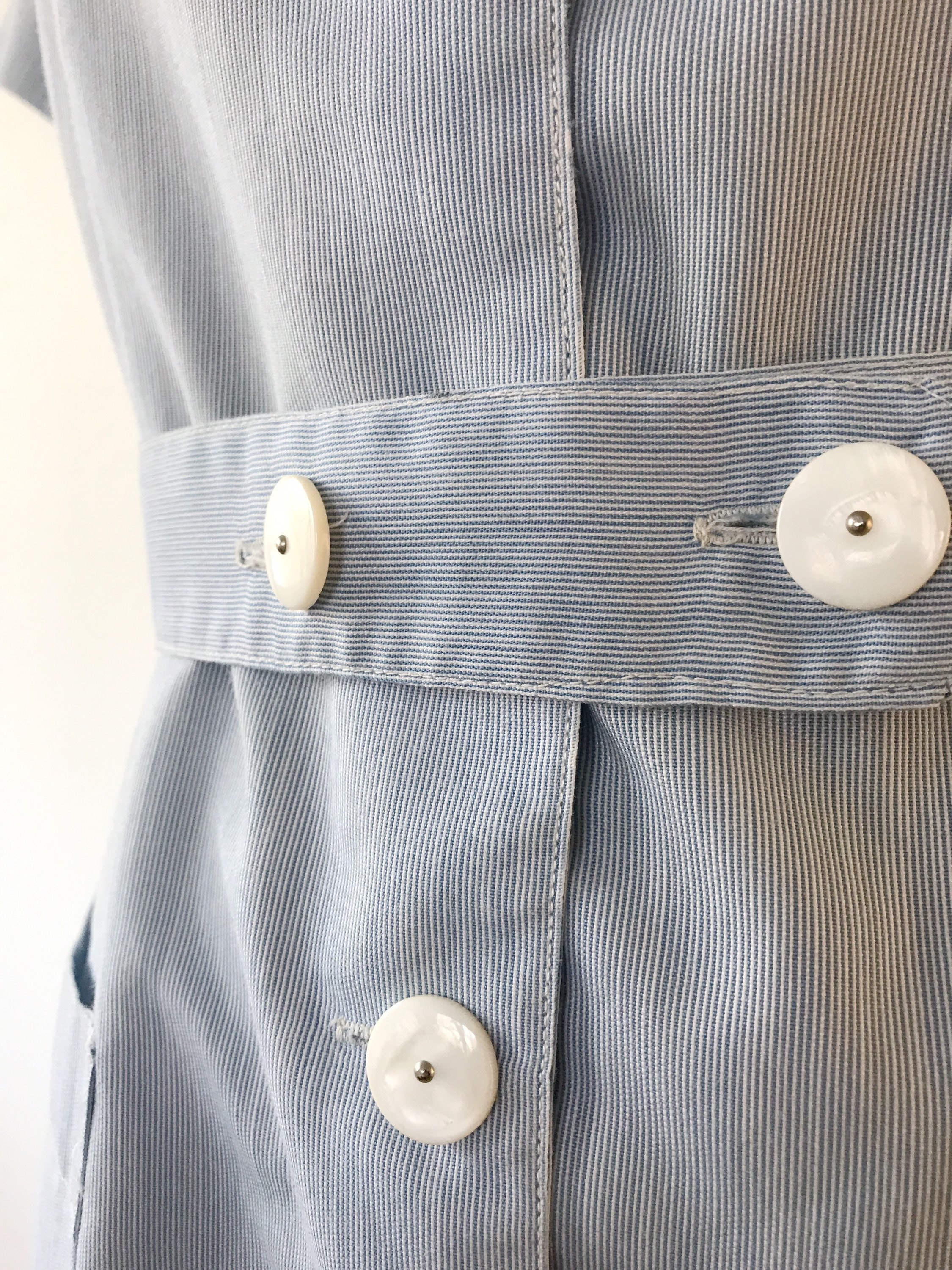 classic blue one piece dress in blue striped seersucker