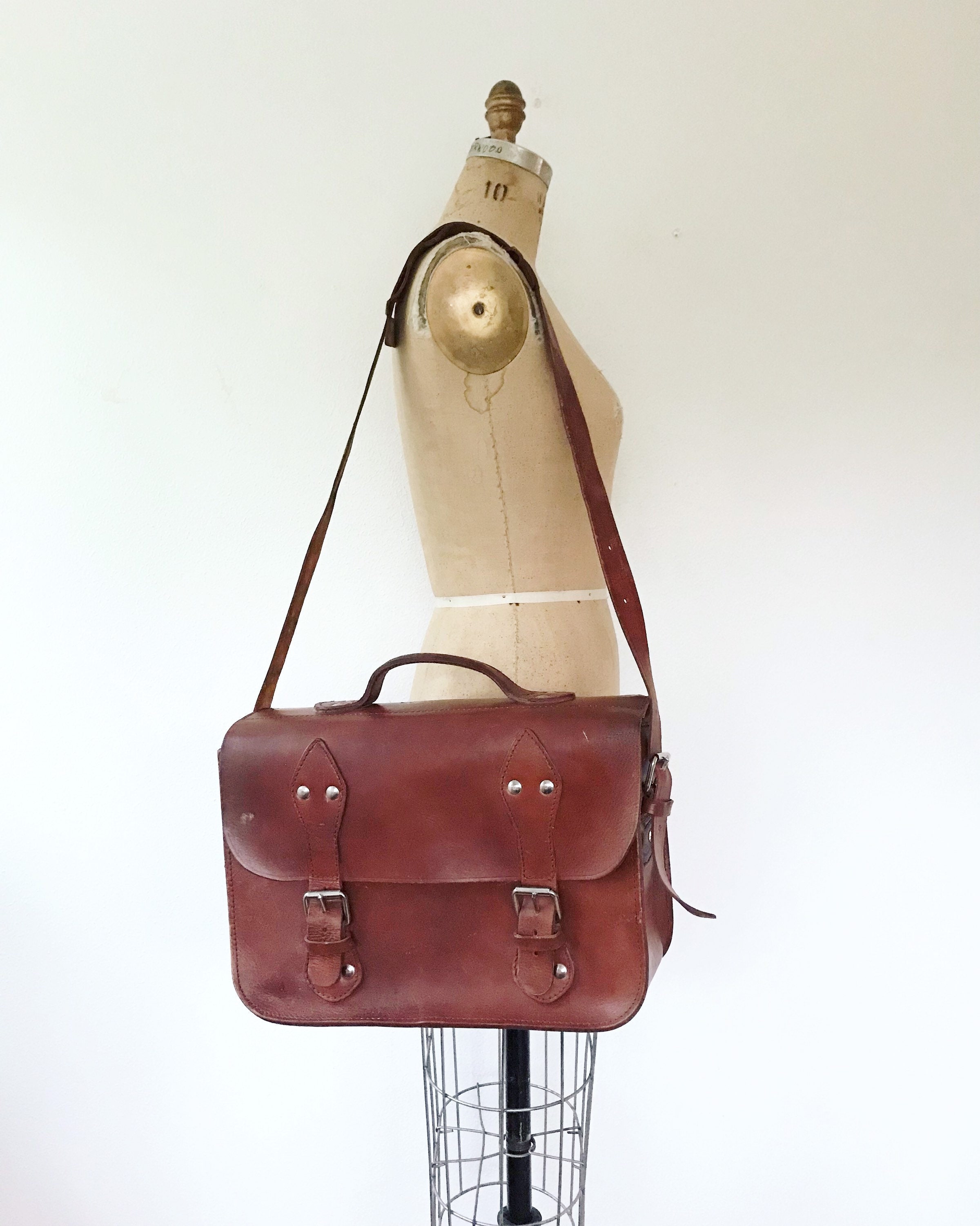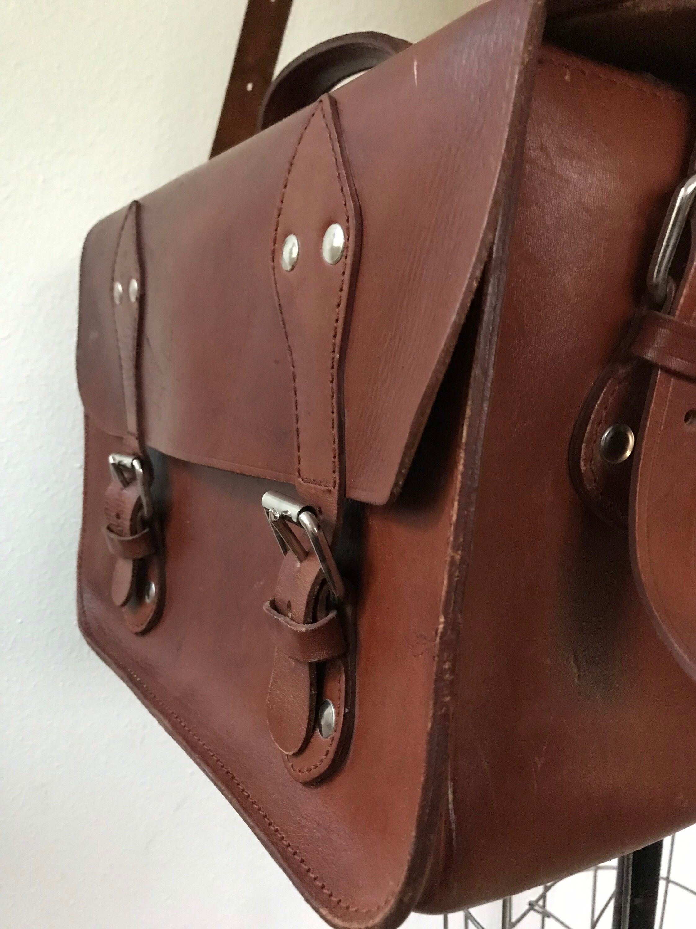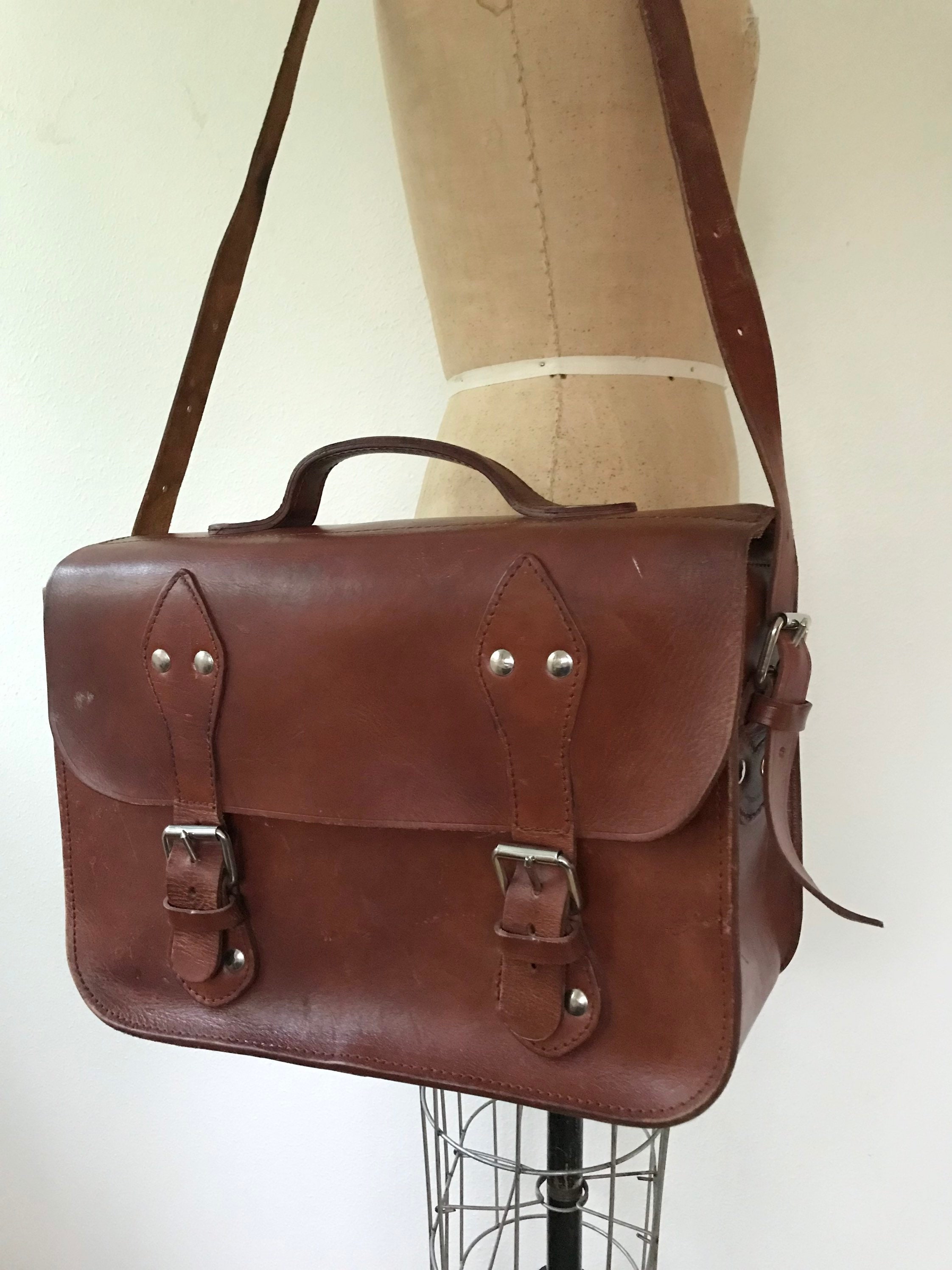 Large brown leather briefcase bag