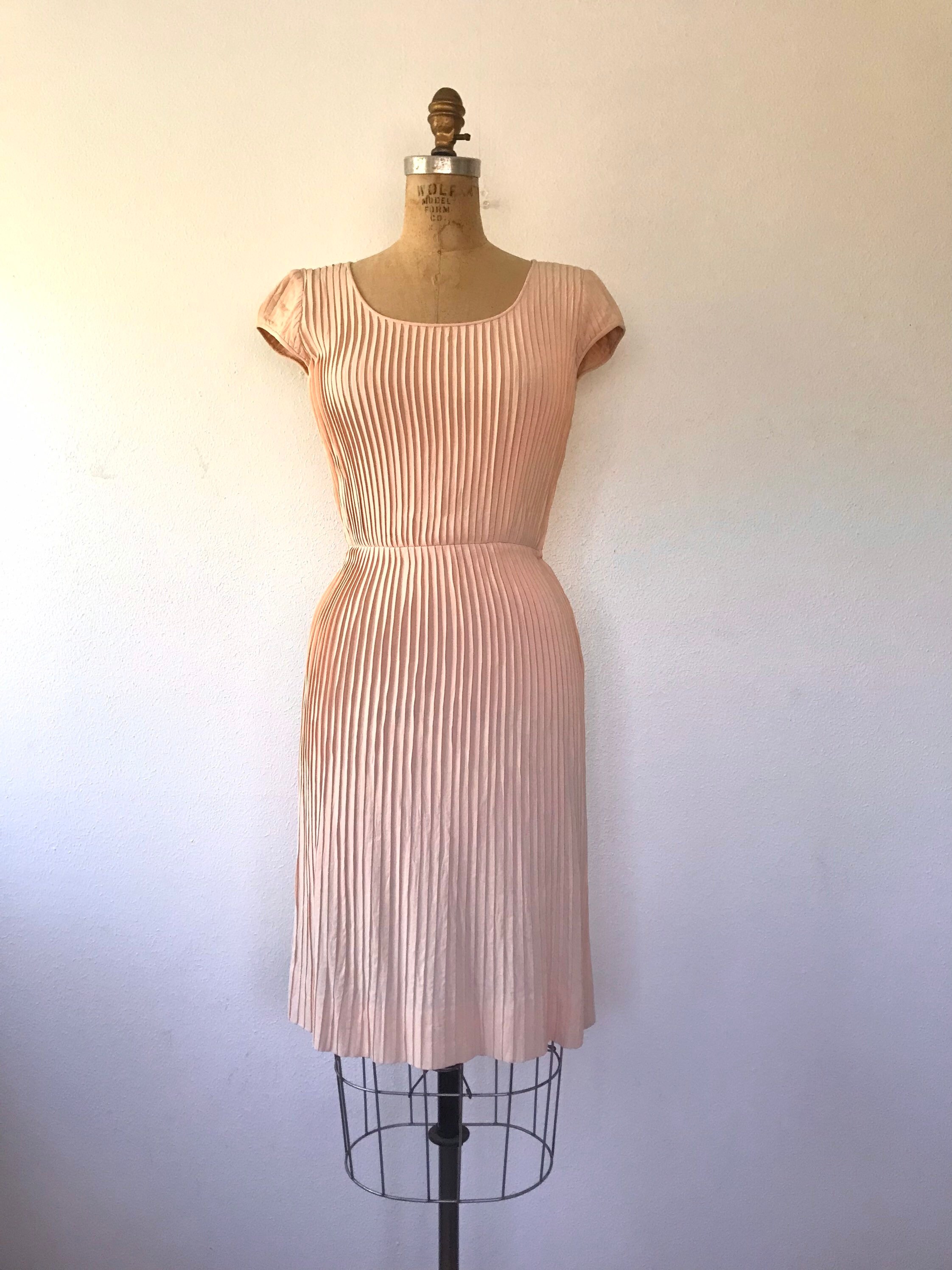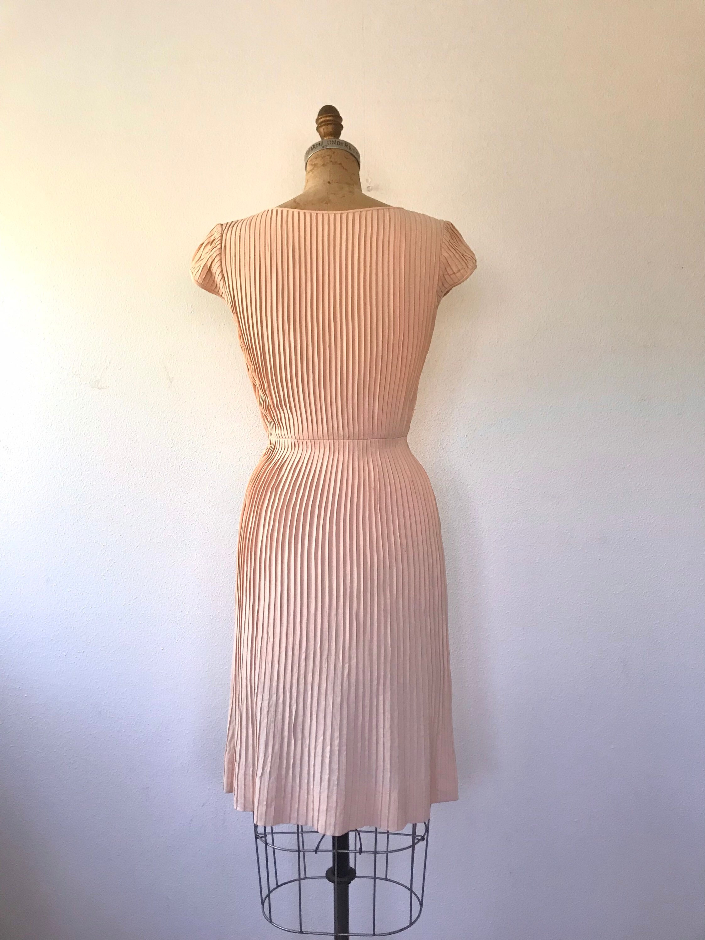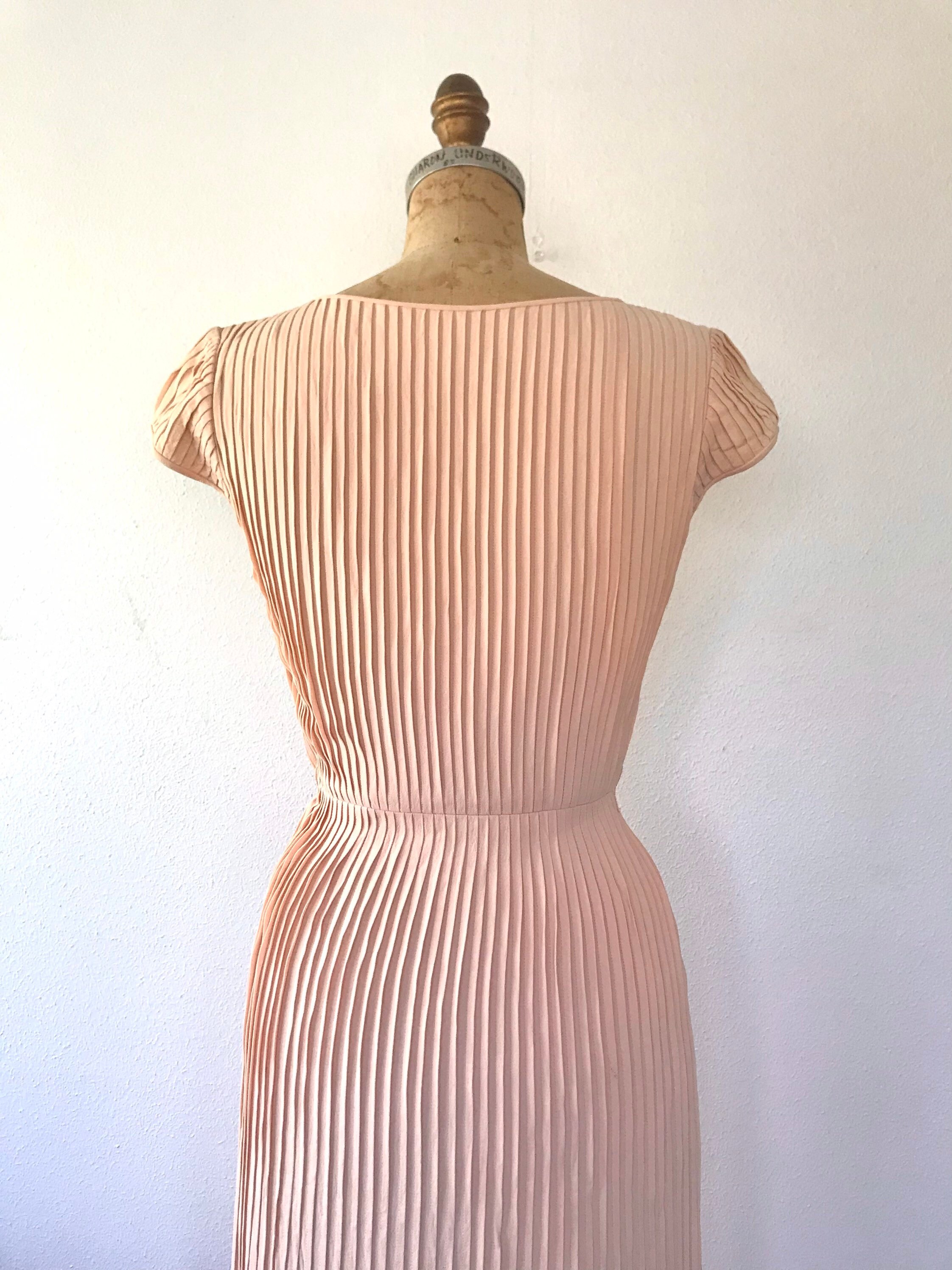 1950s peach crepe pleated dress