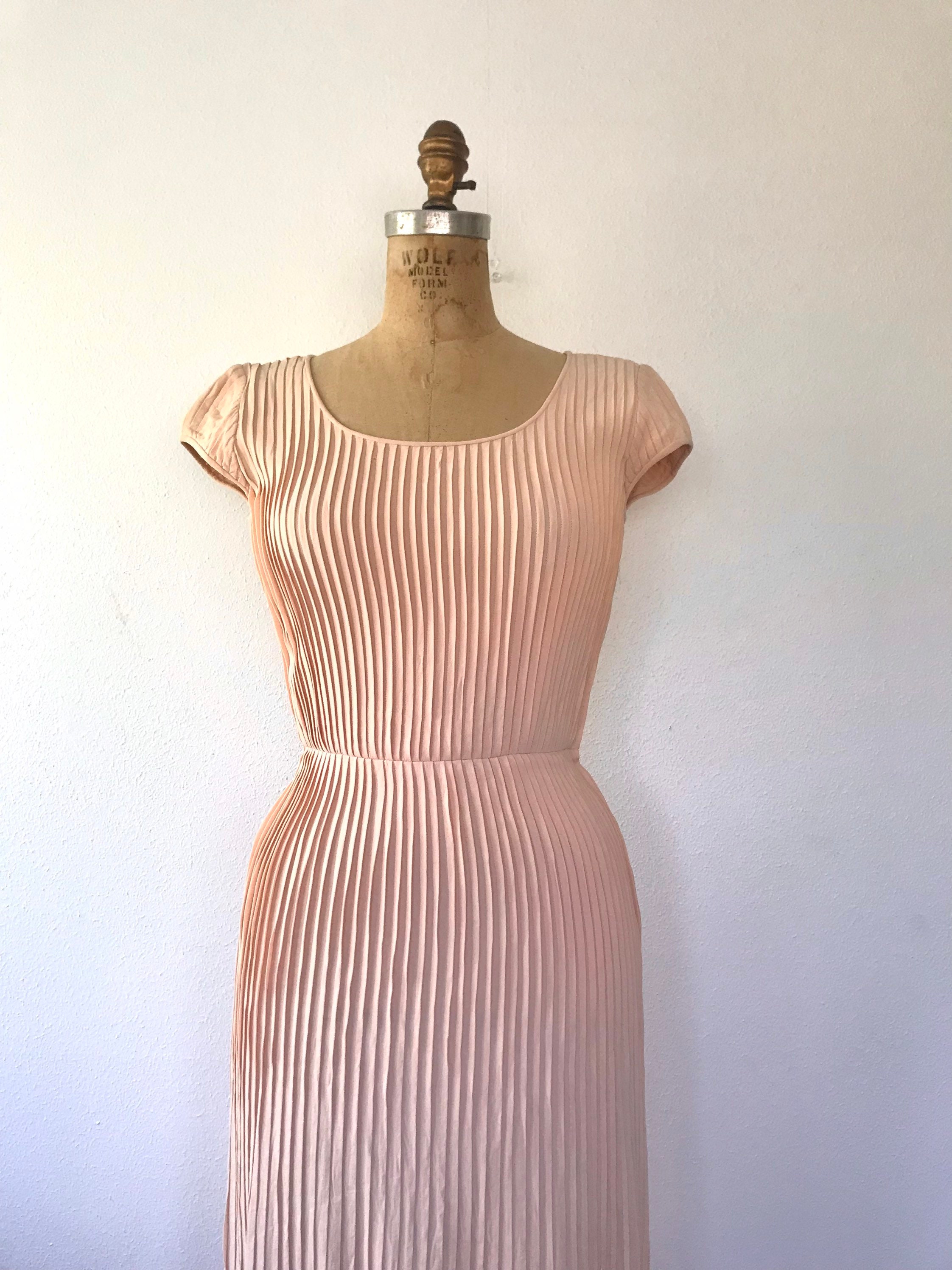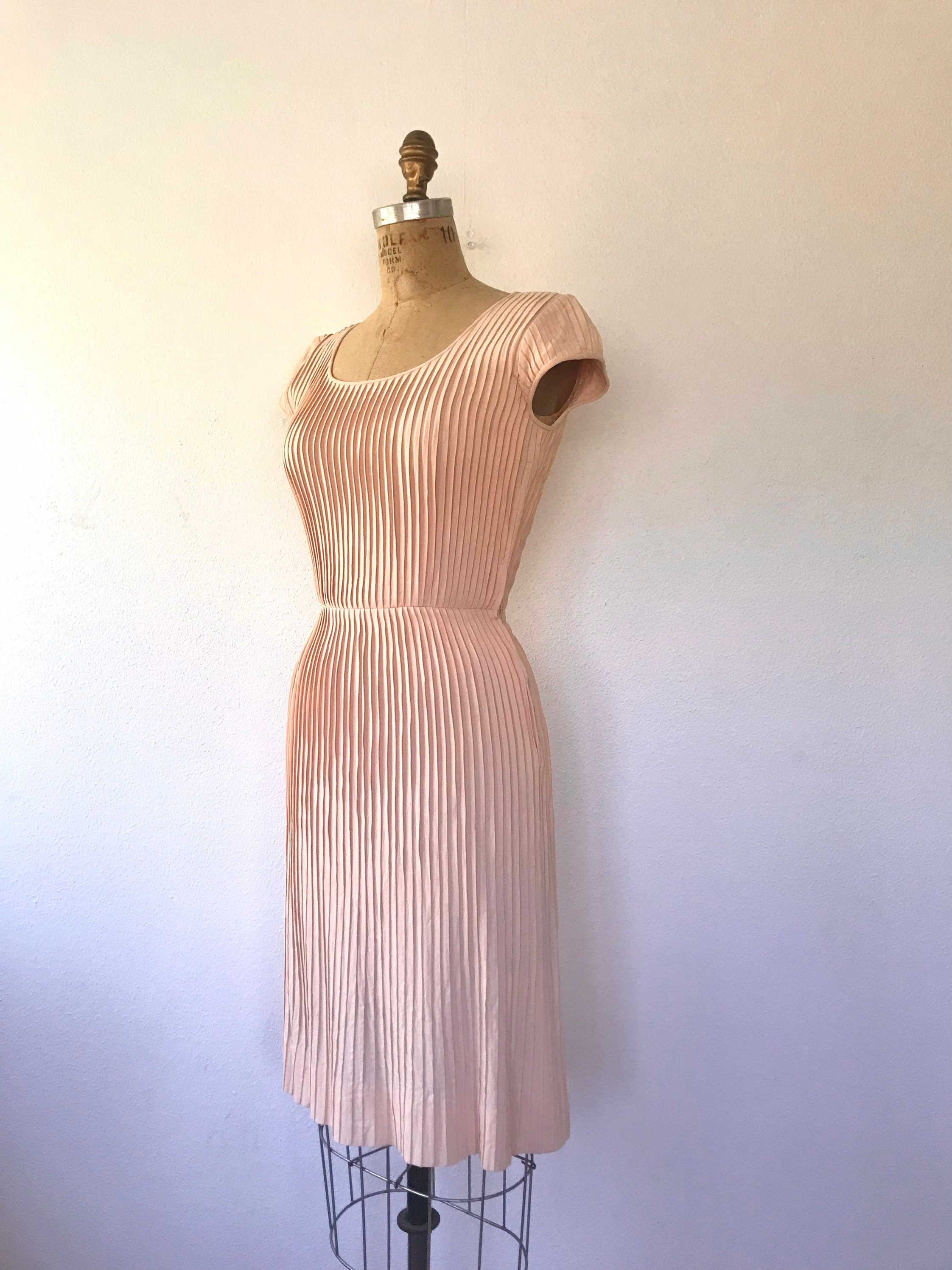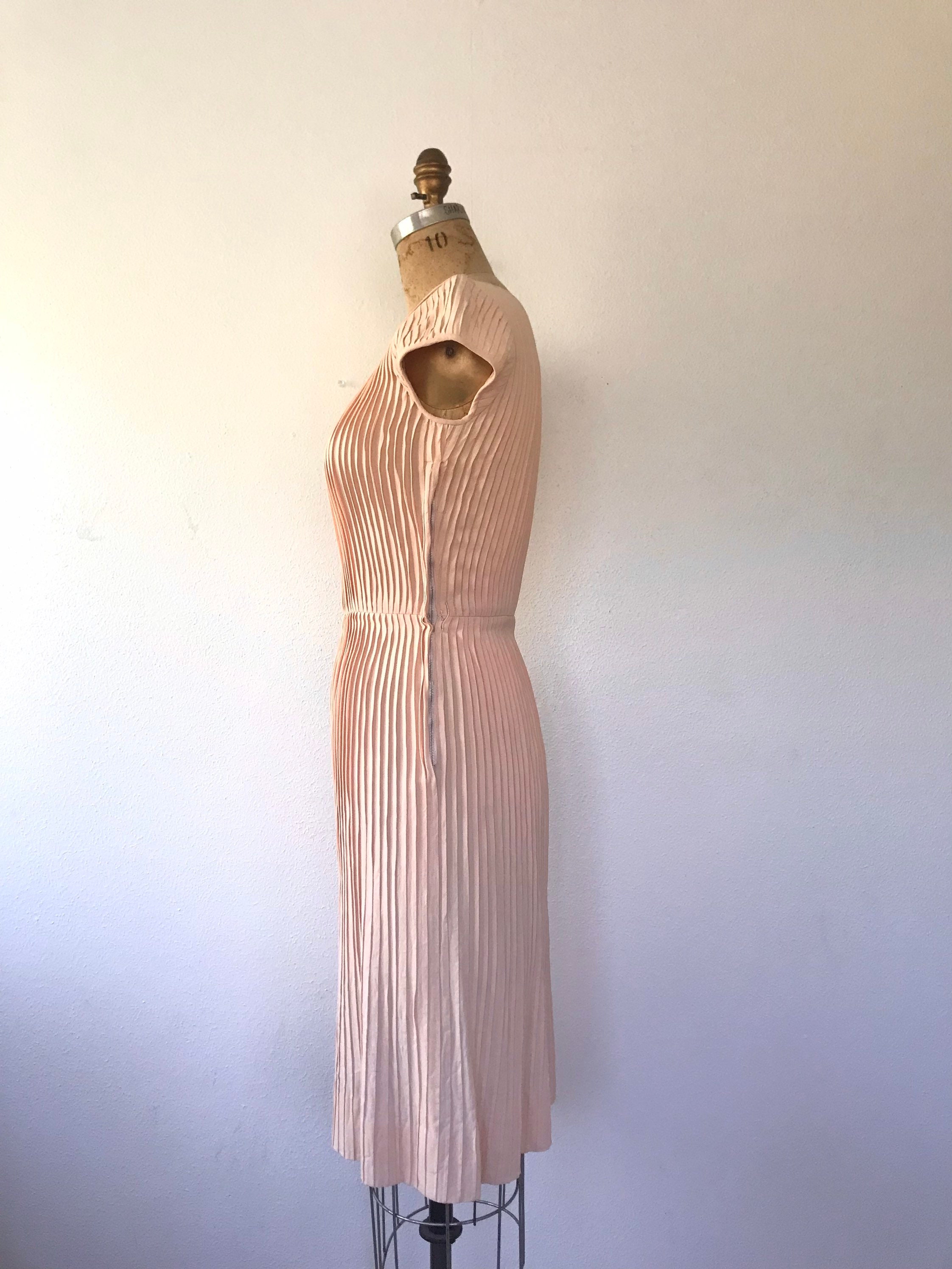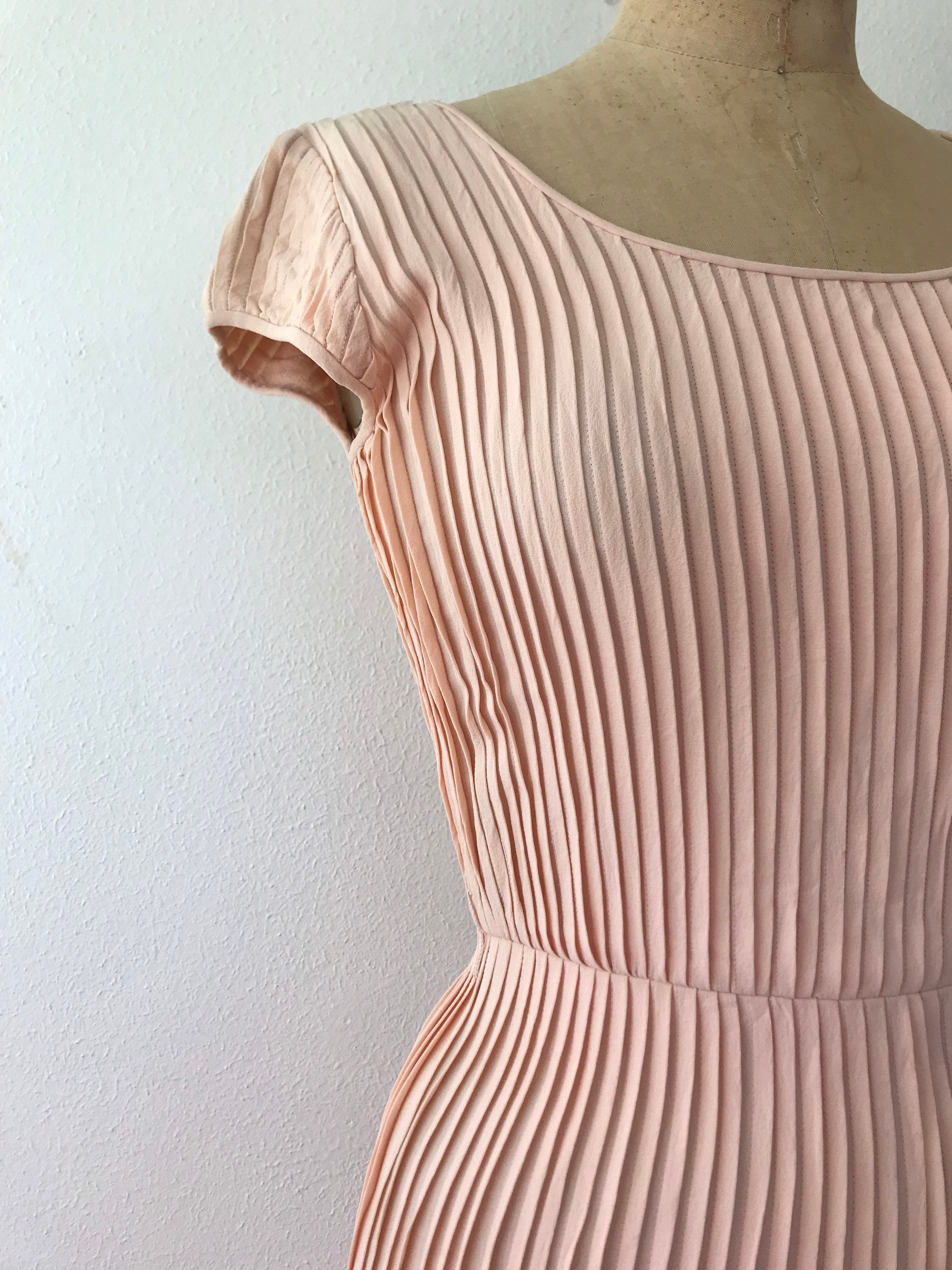 1950s peach crepe pleated dress