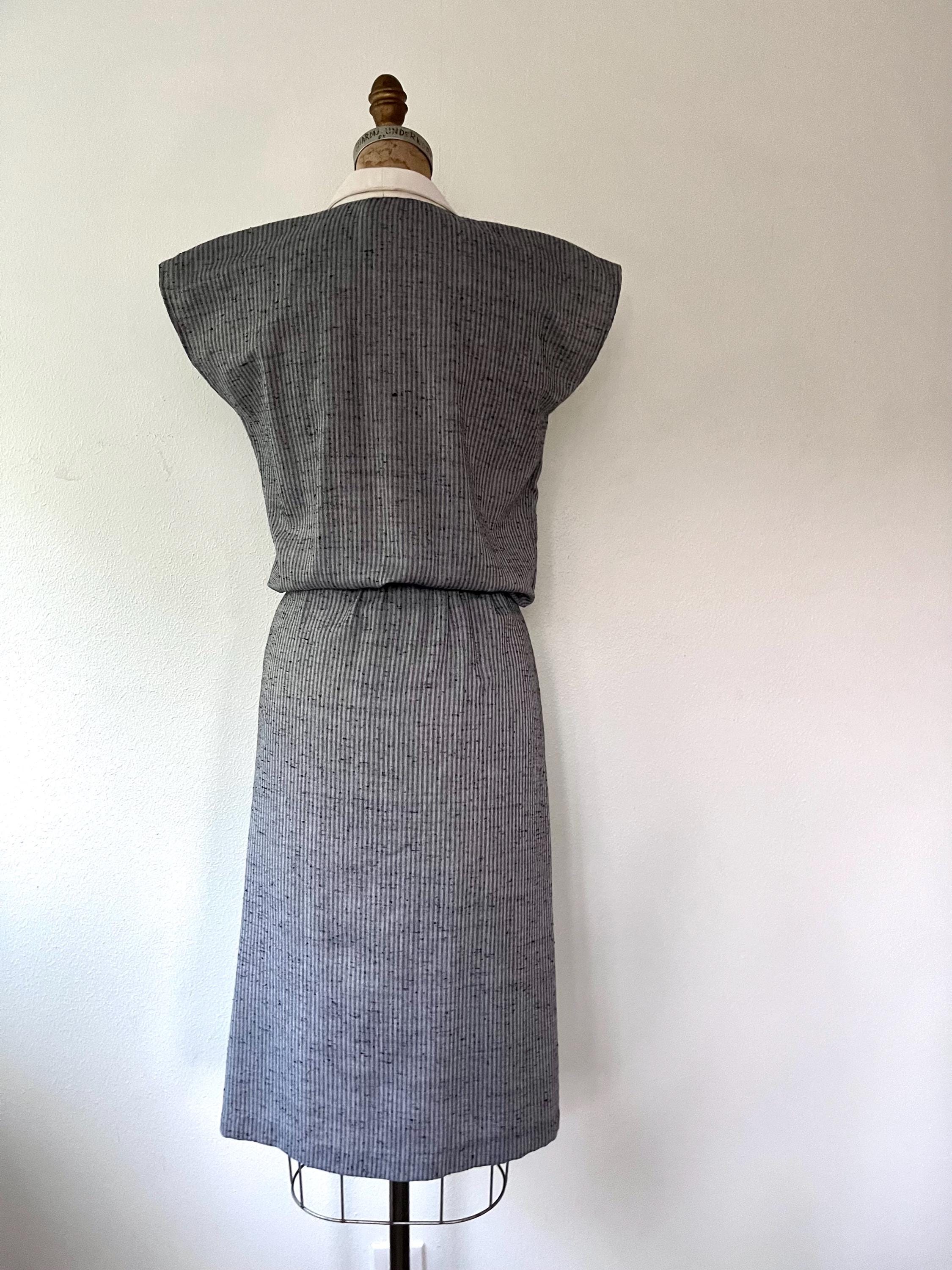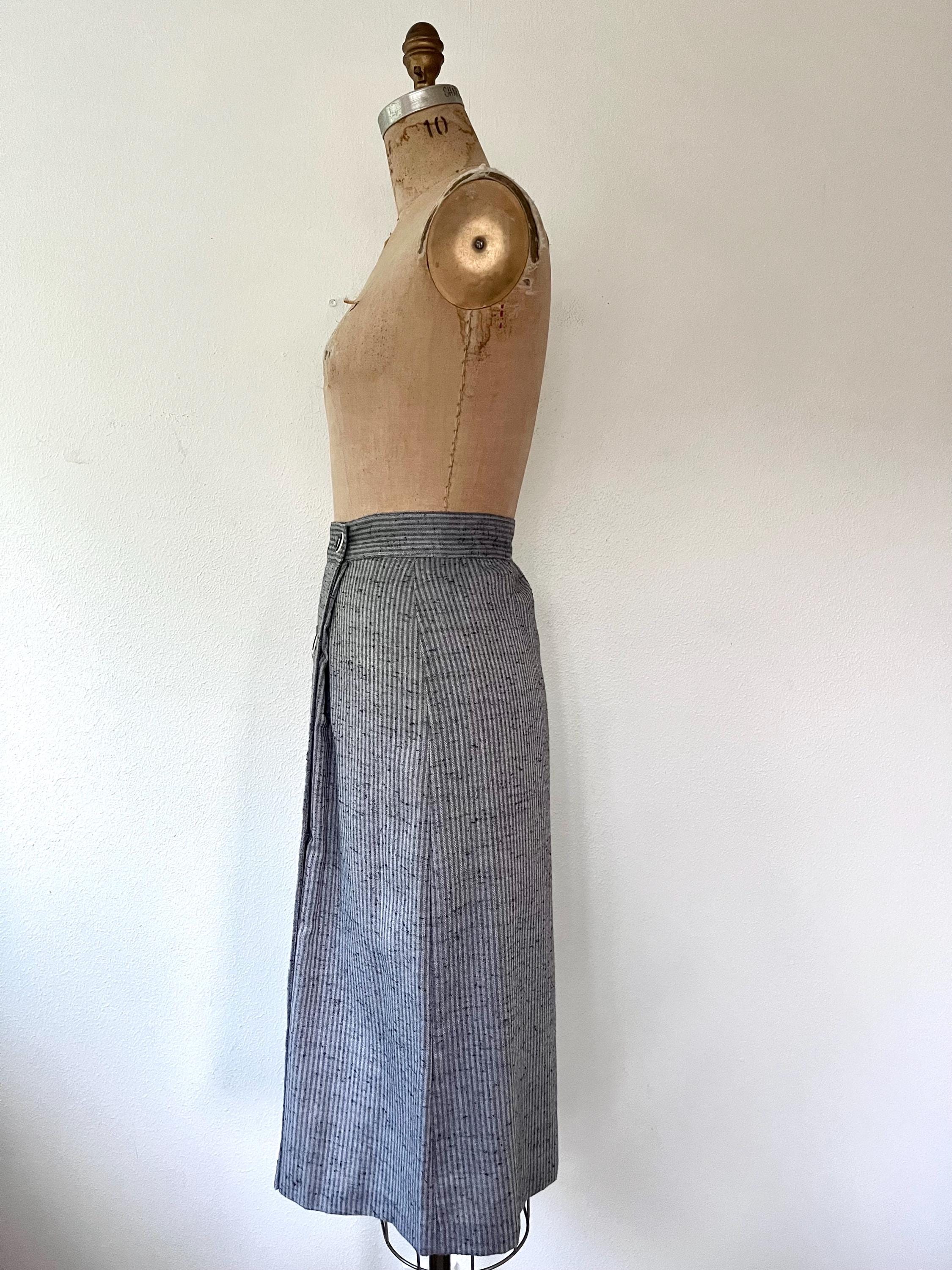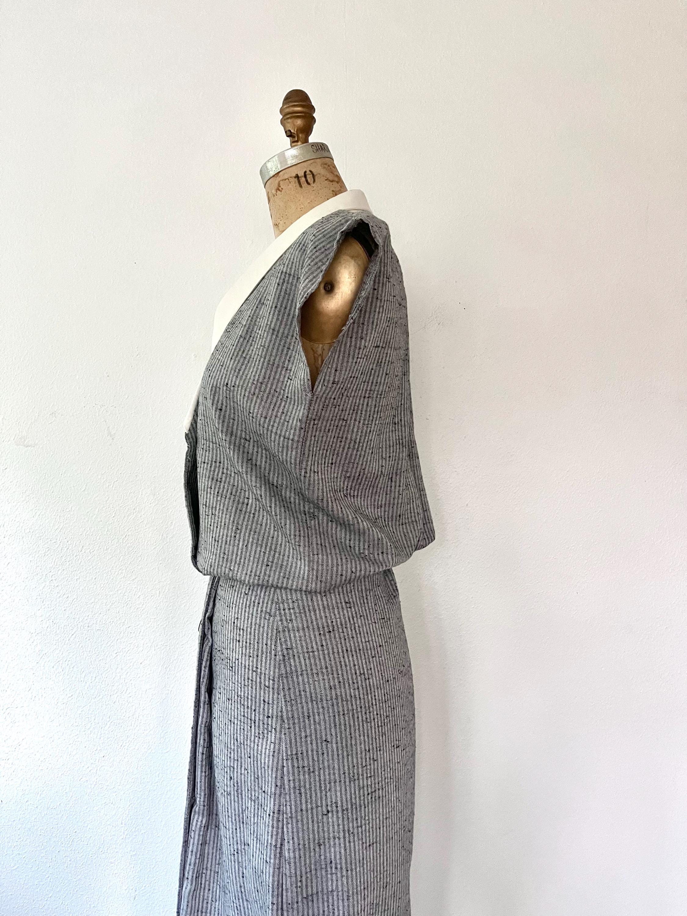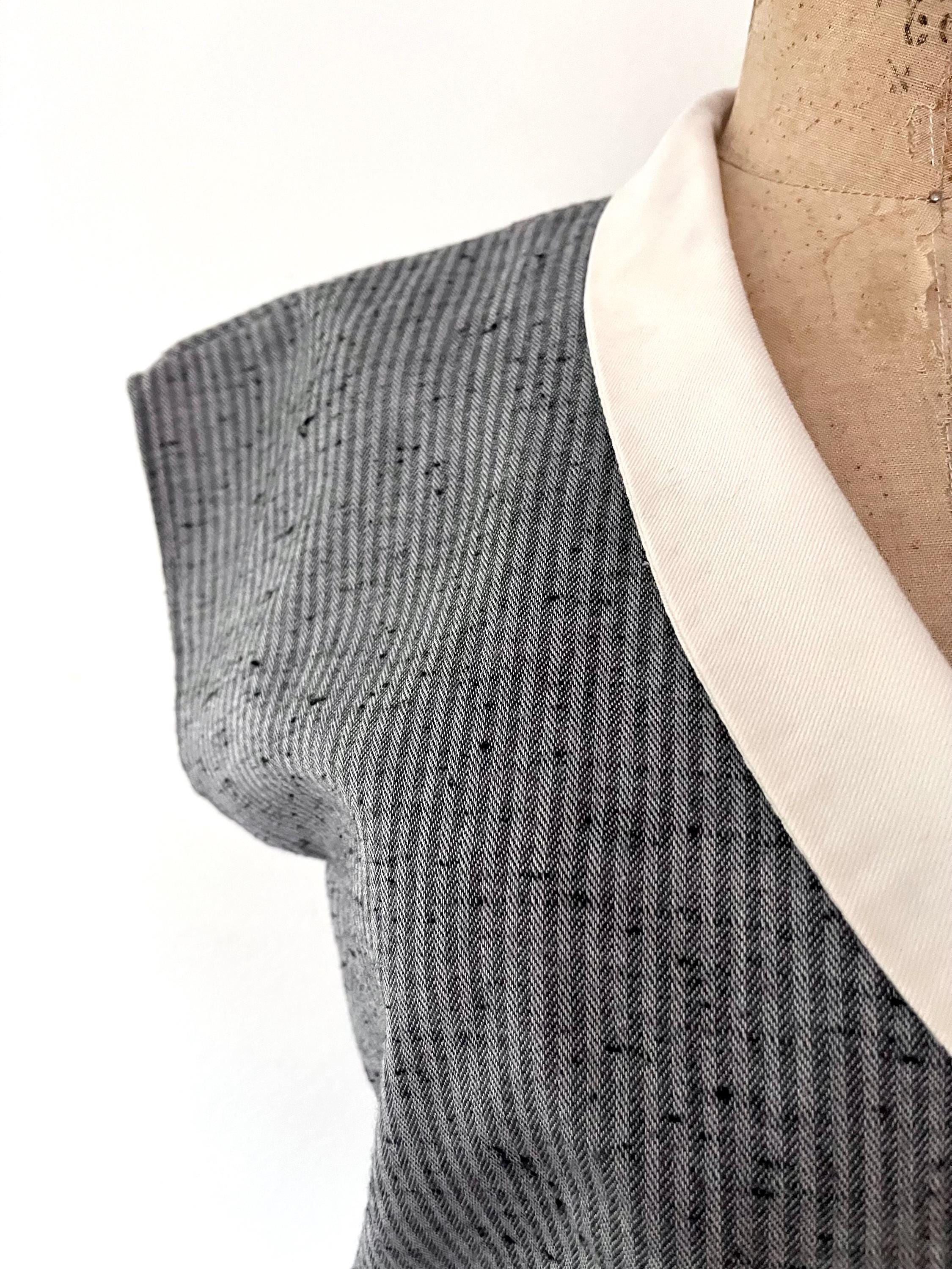 a charcoal warp and weft stripe that reads as deep navy or slate in certain light