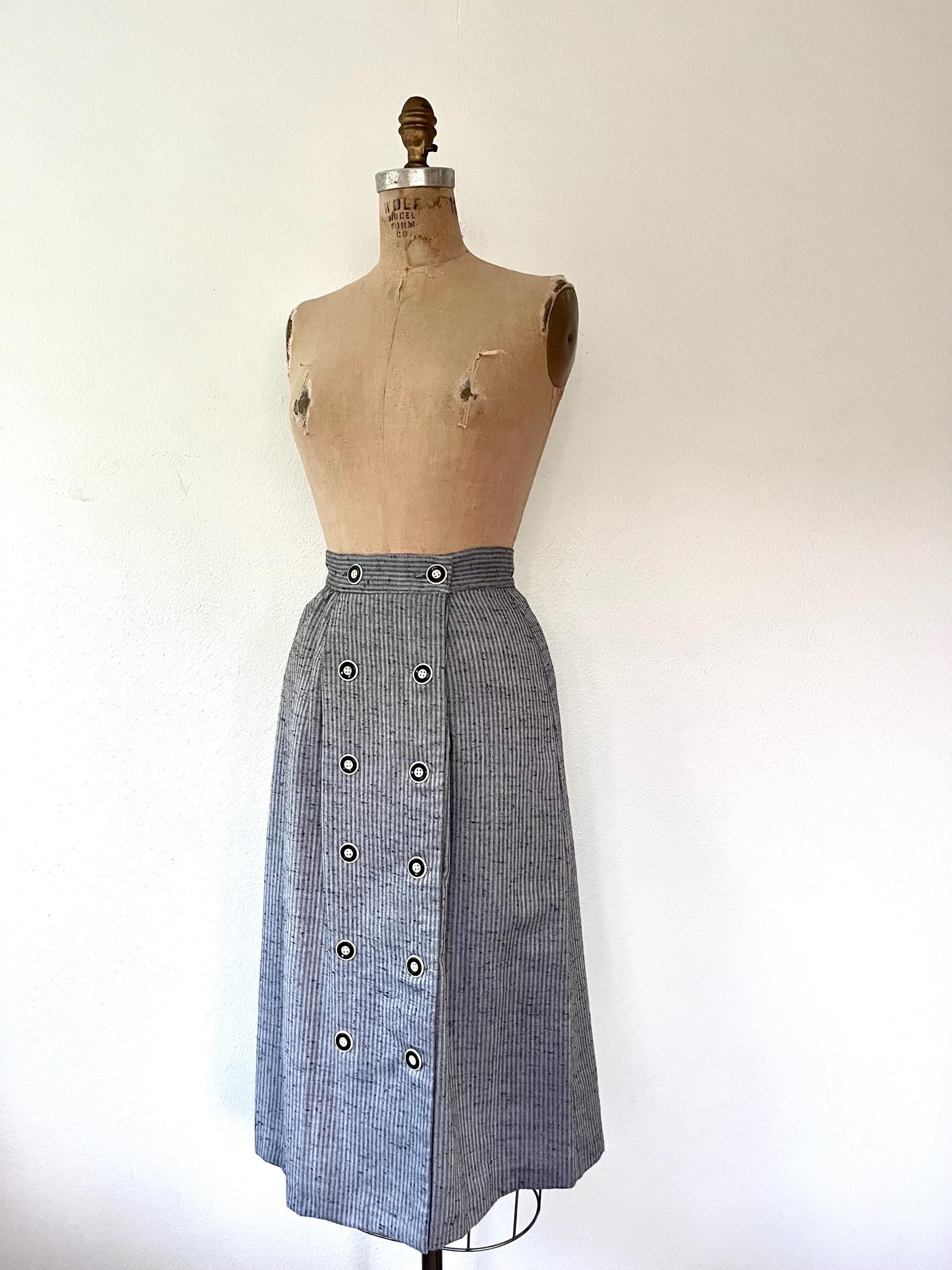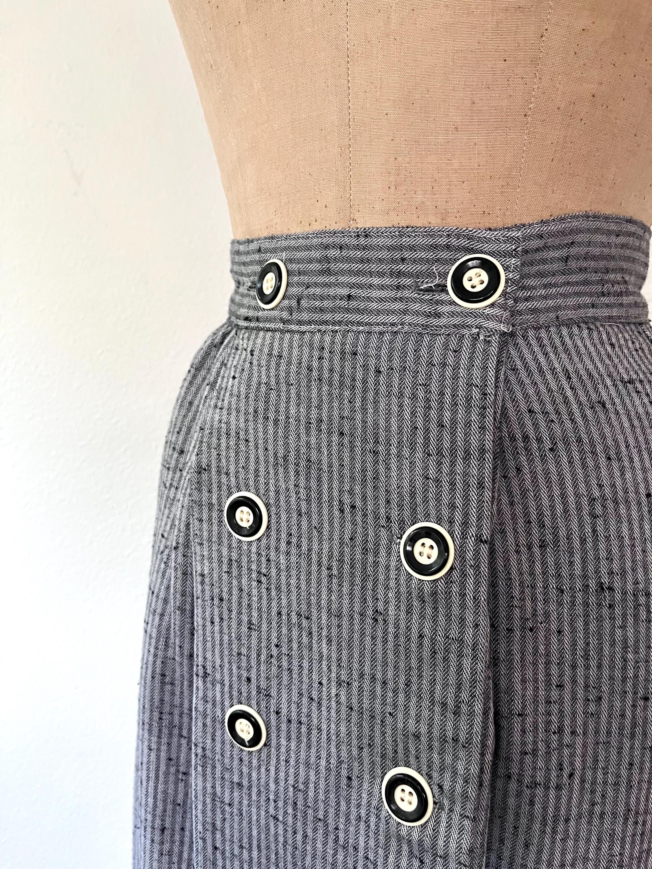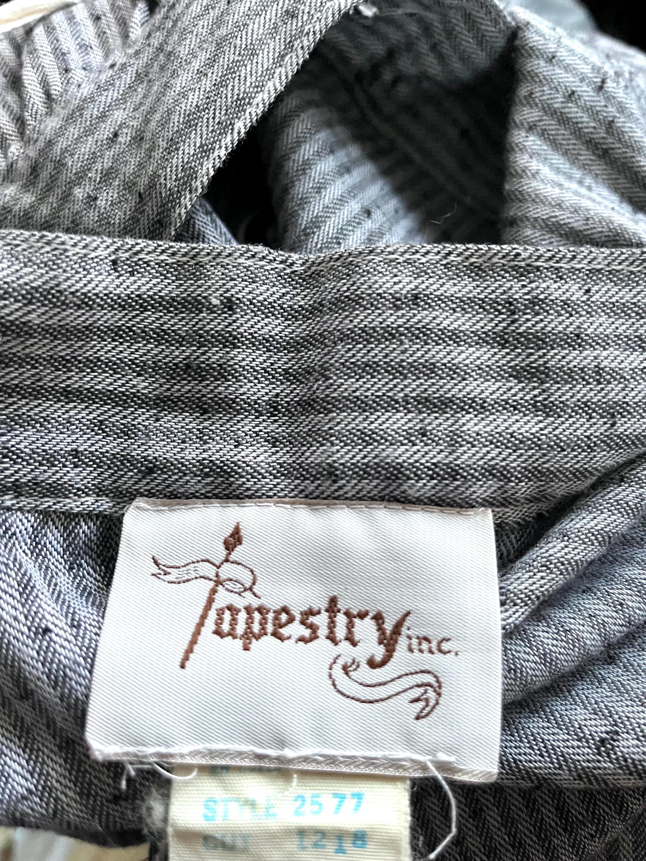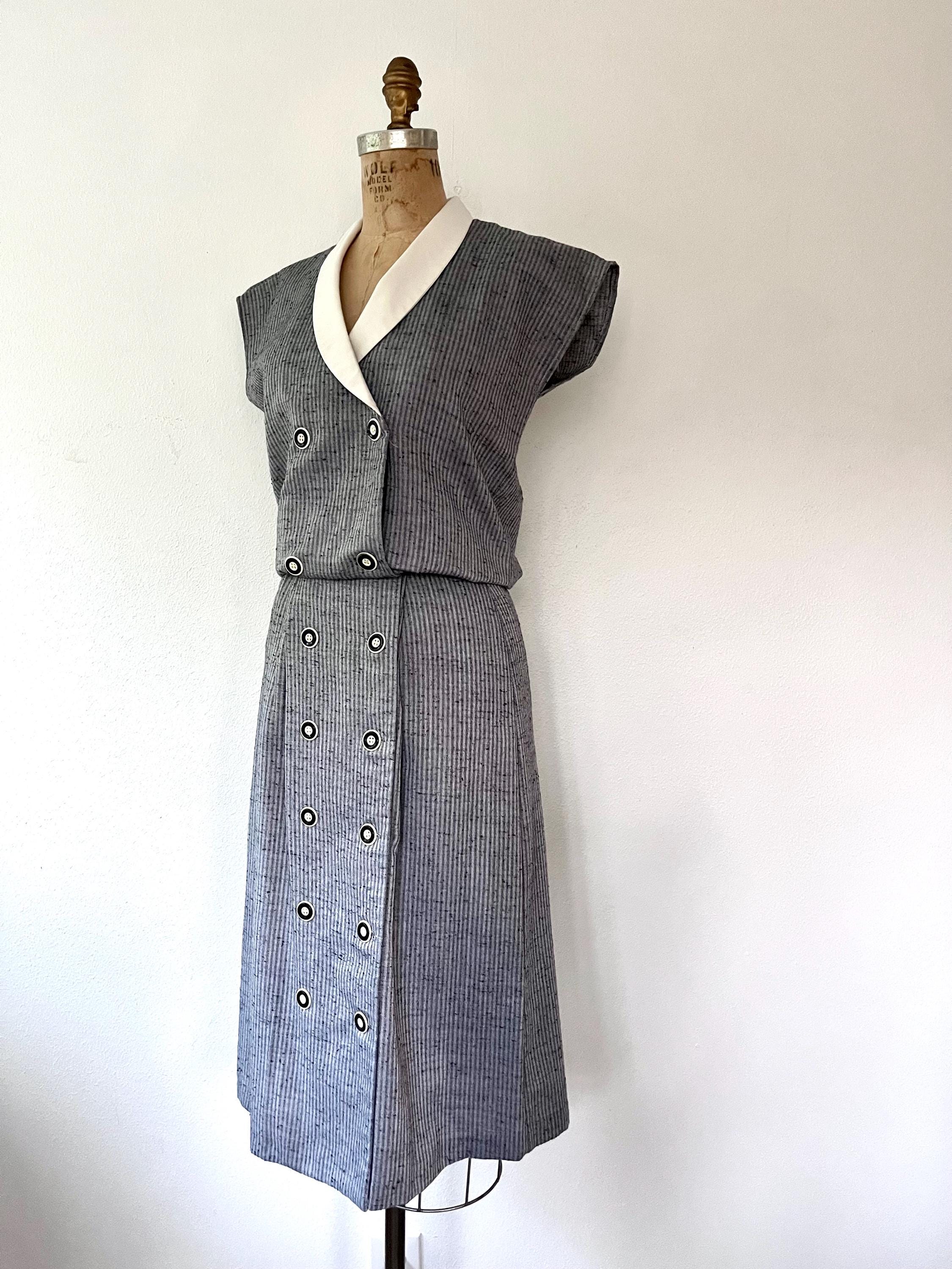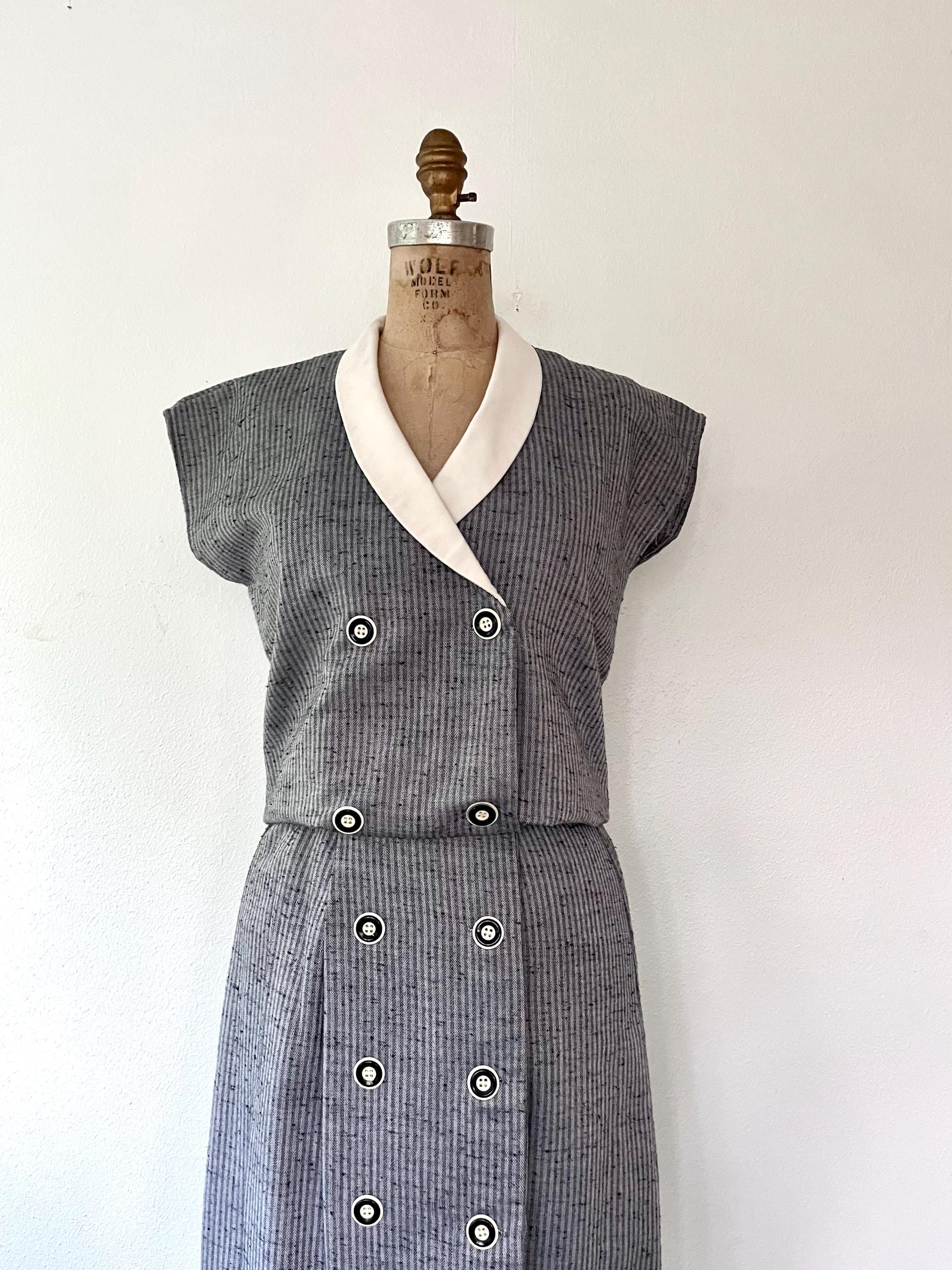 a charcoal warp and weft stripe that reads as deep navy or slate in certain light