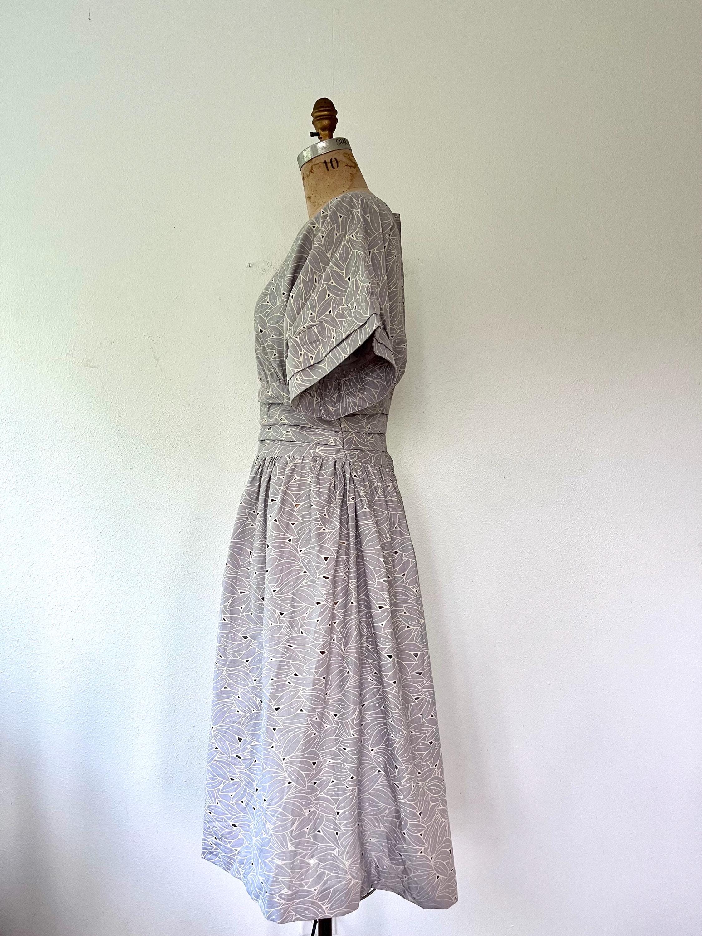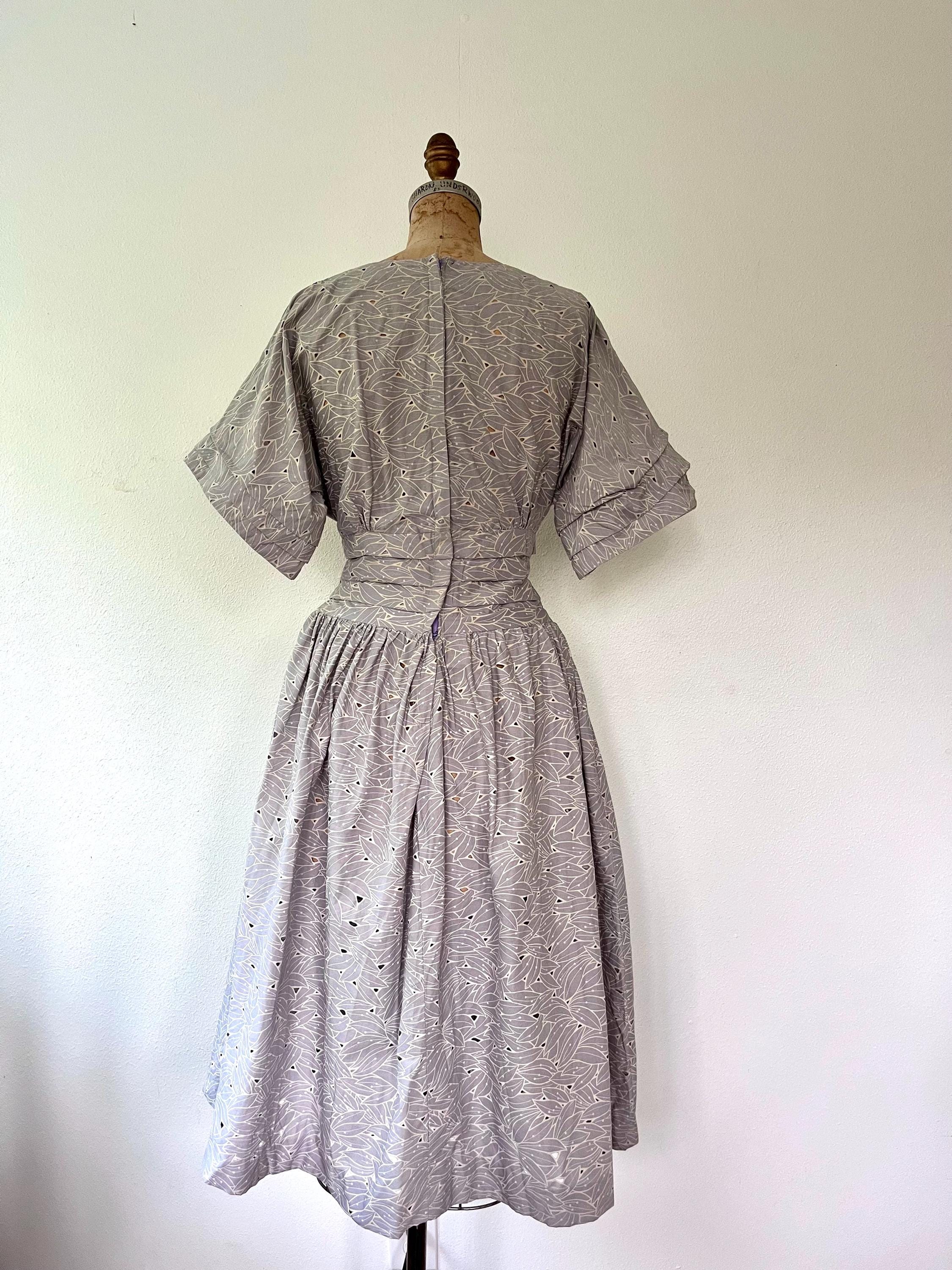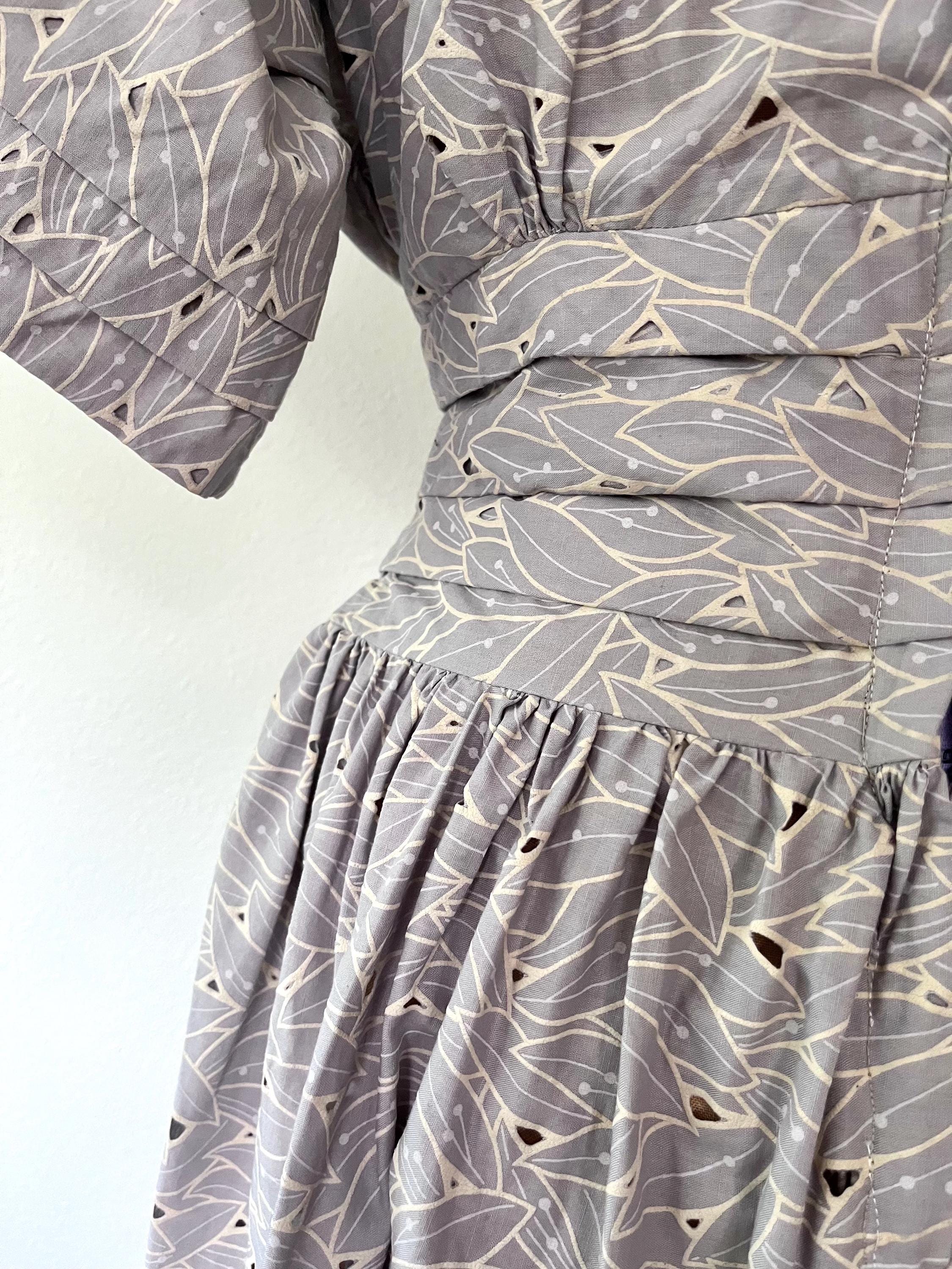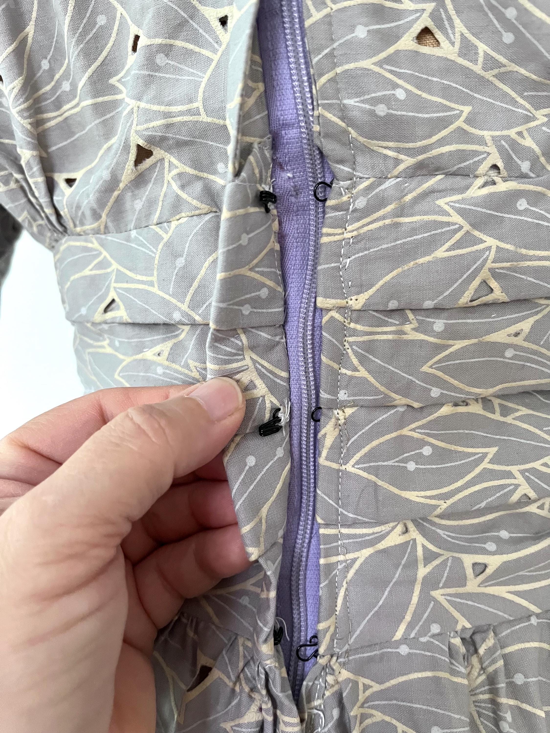 back zipper is a newer style, dress was fashioned and made in the mid century and finished later in the 60s, 70s