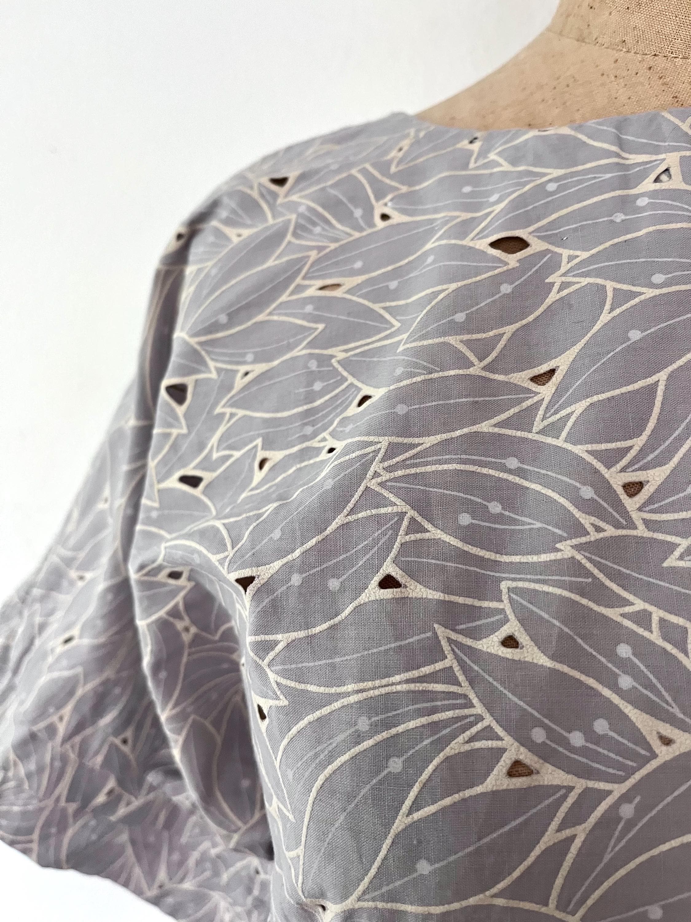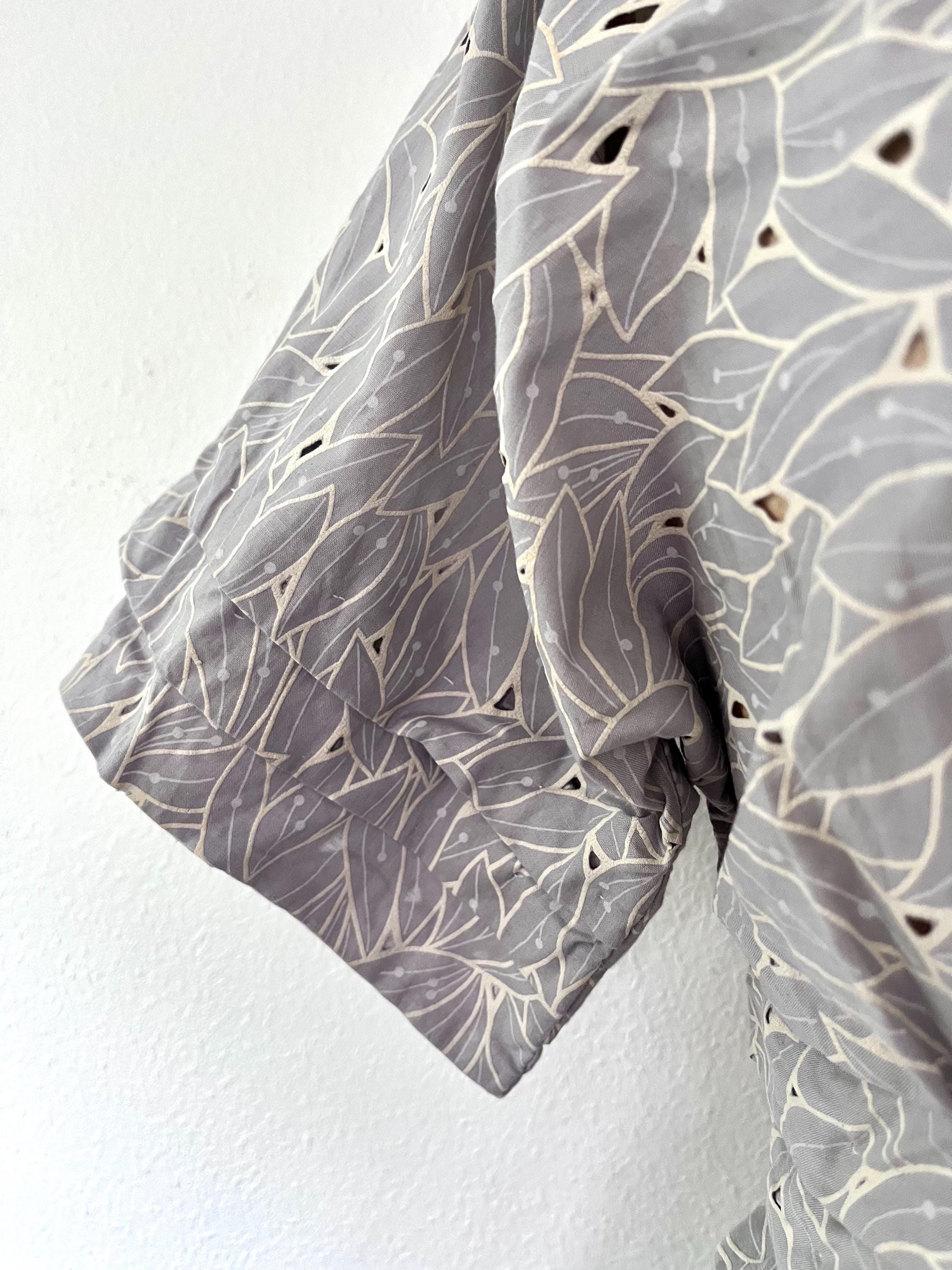 pattern looks like an overlayed leaf design with open lace work and textured chenille silhouettes