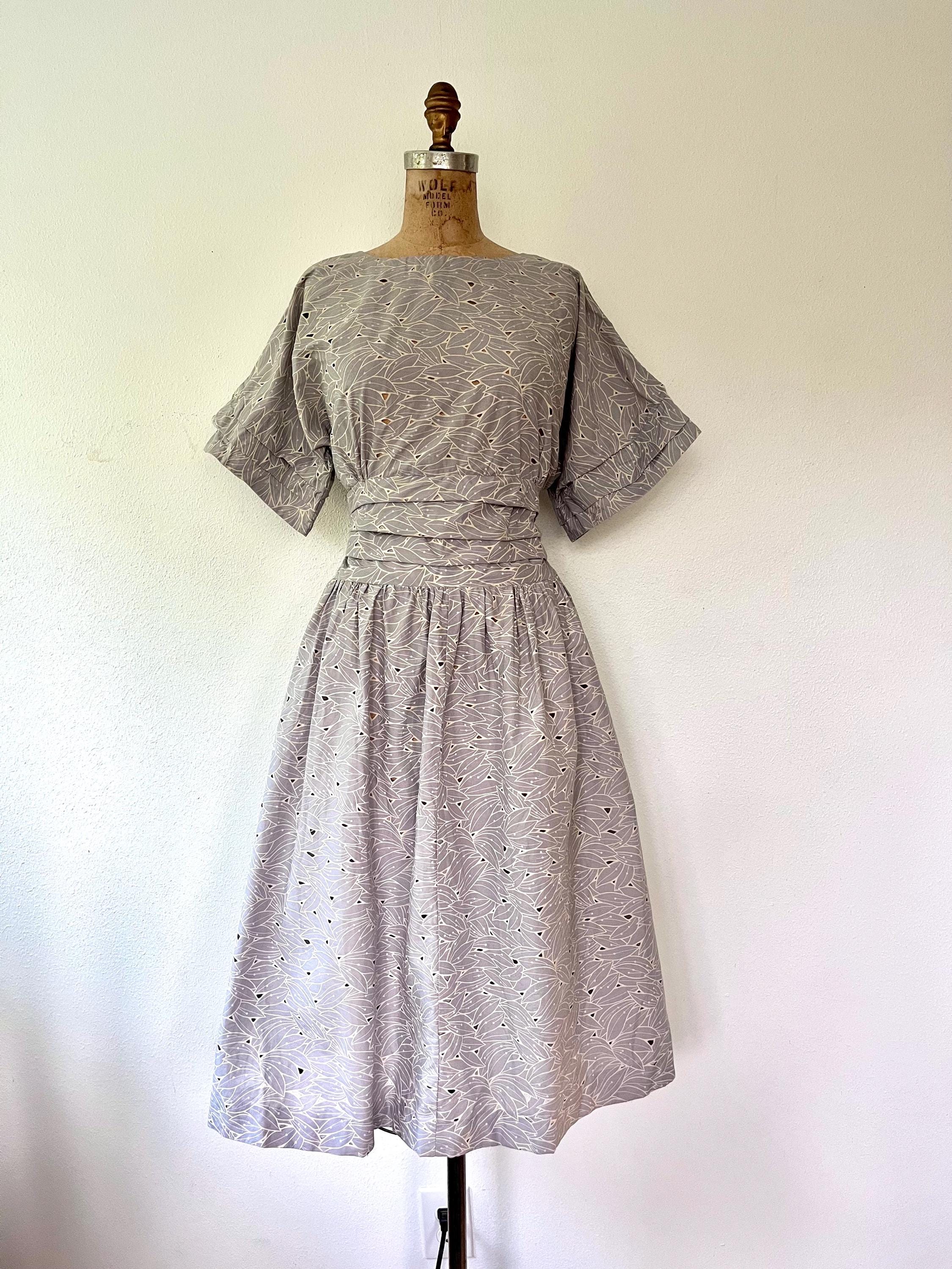 fitted & pleated cummerbund waist and a soft pleated skirt- a-line cut