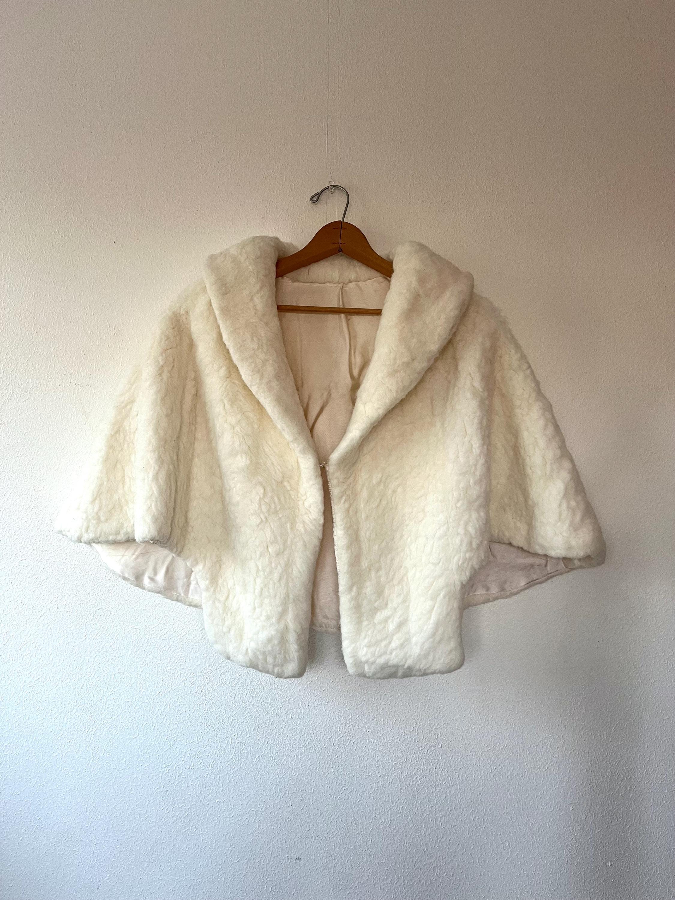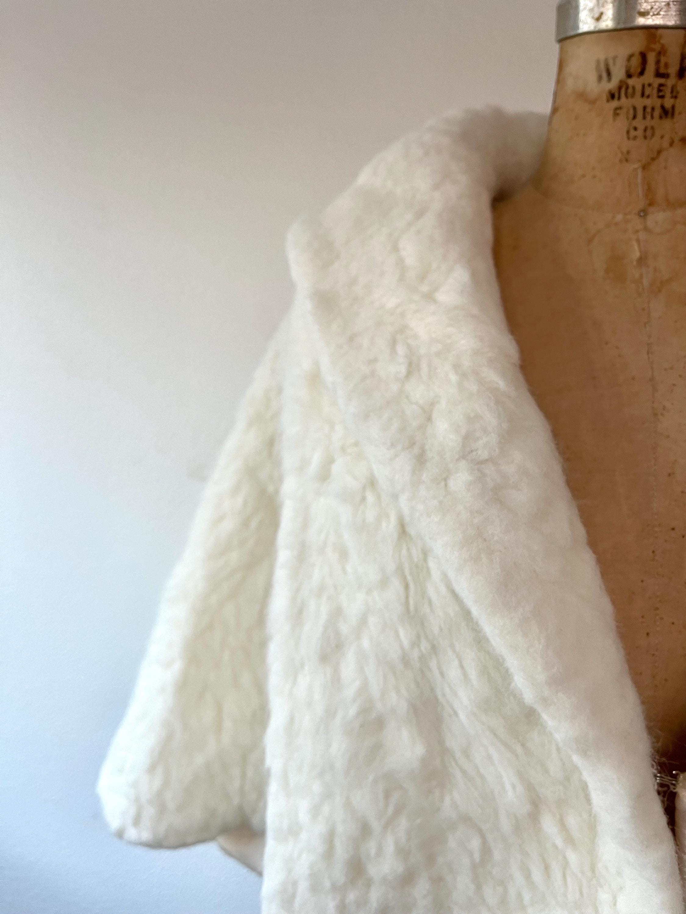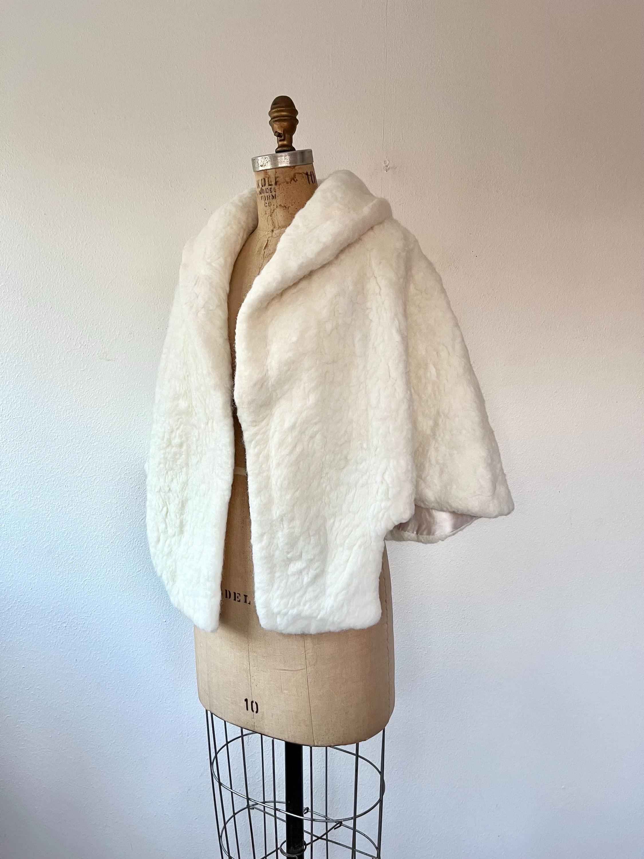 1950s lush faux fur shrug in a cozy lambswool/shearling look
