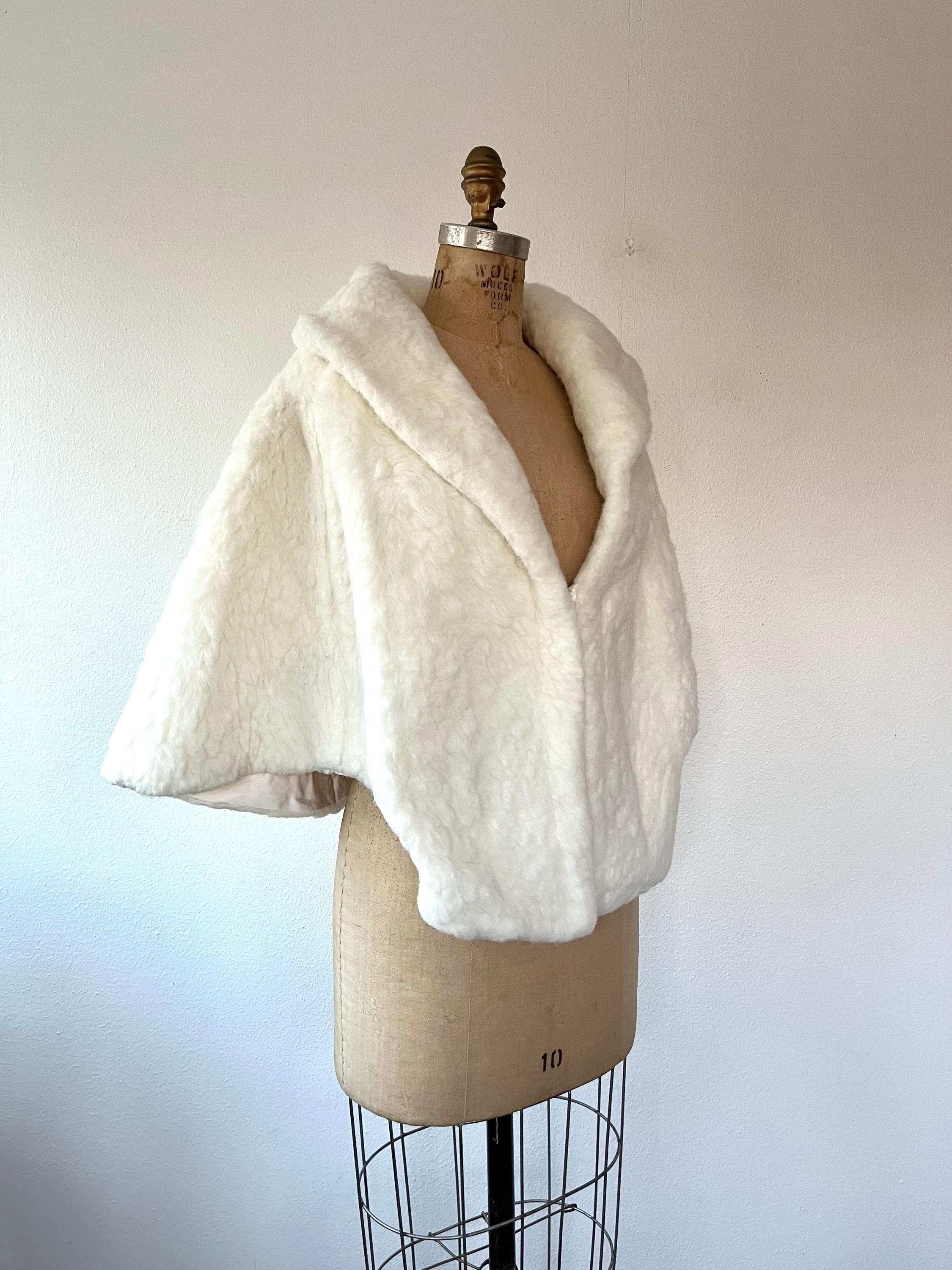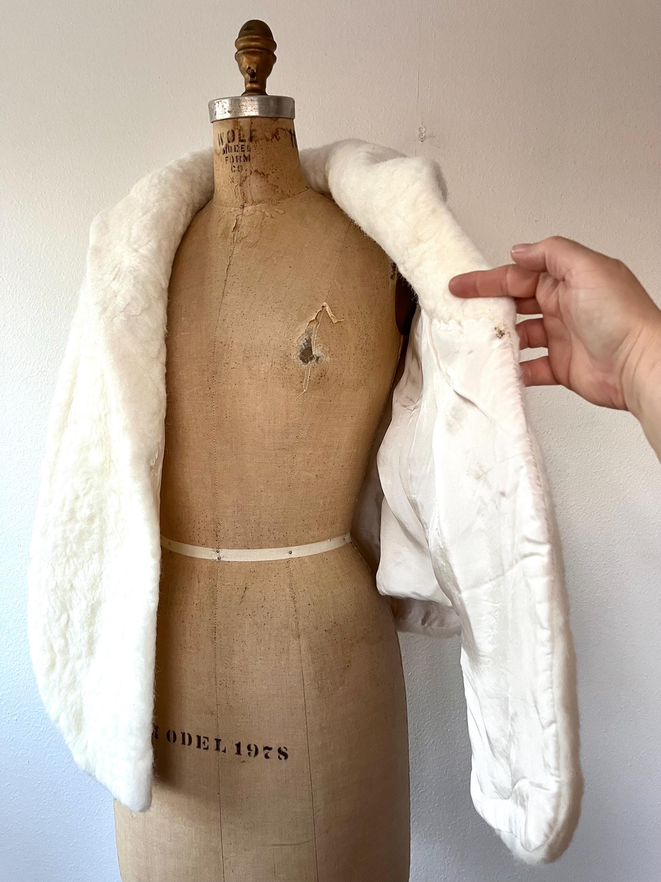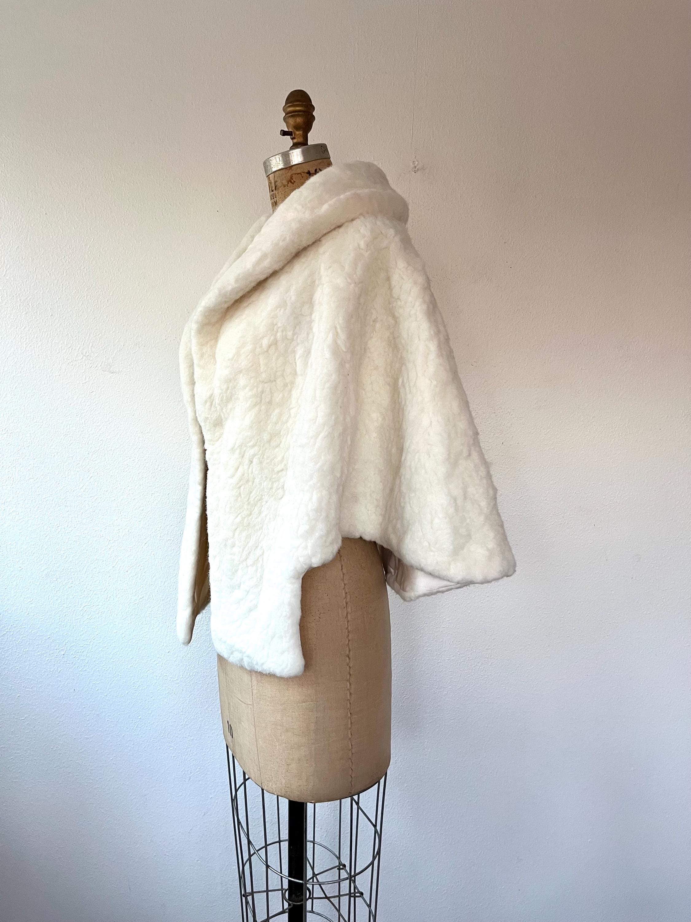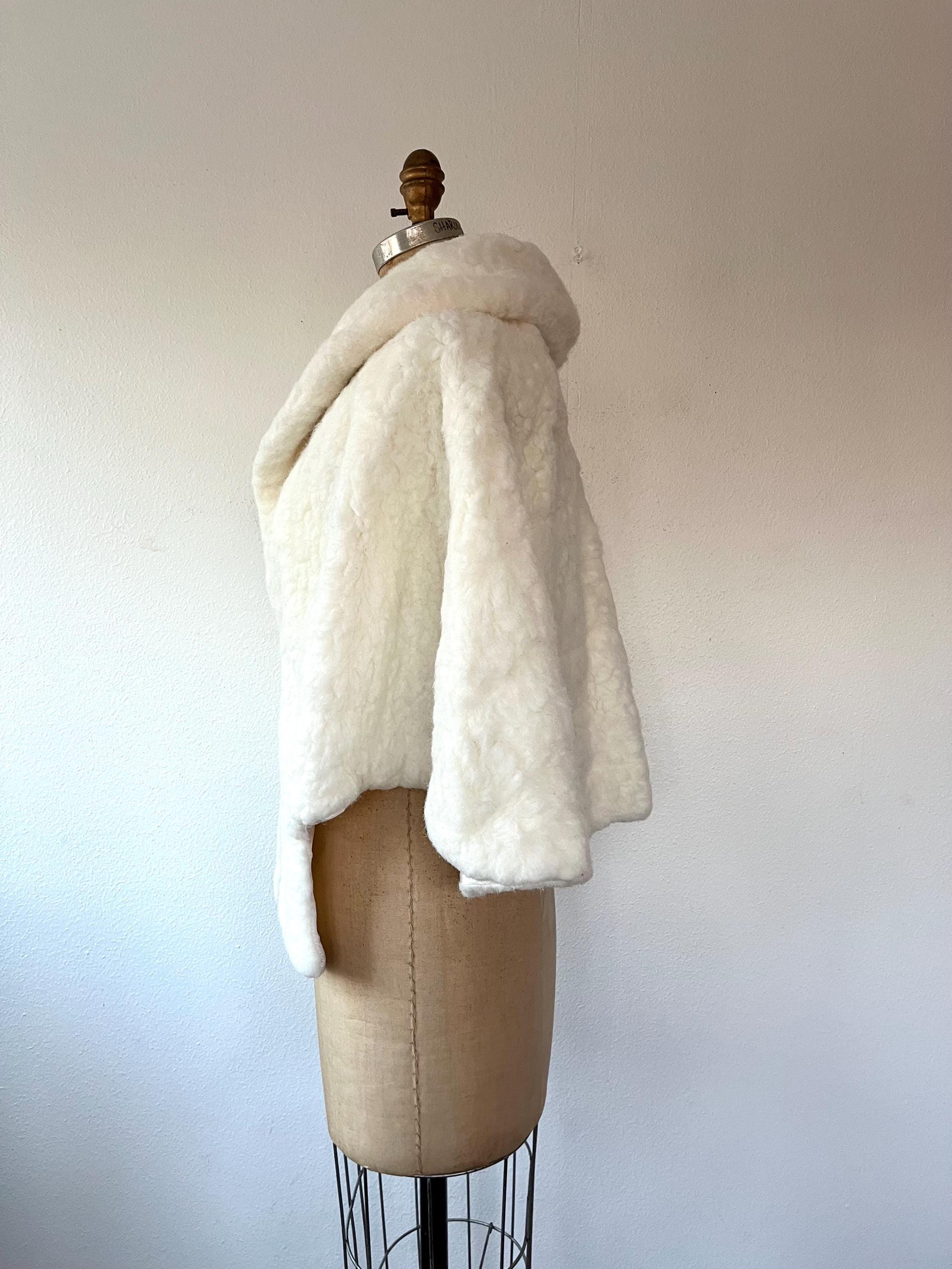 1950s lush faux fur shrug in a cozy lambswool/shearling look