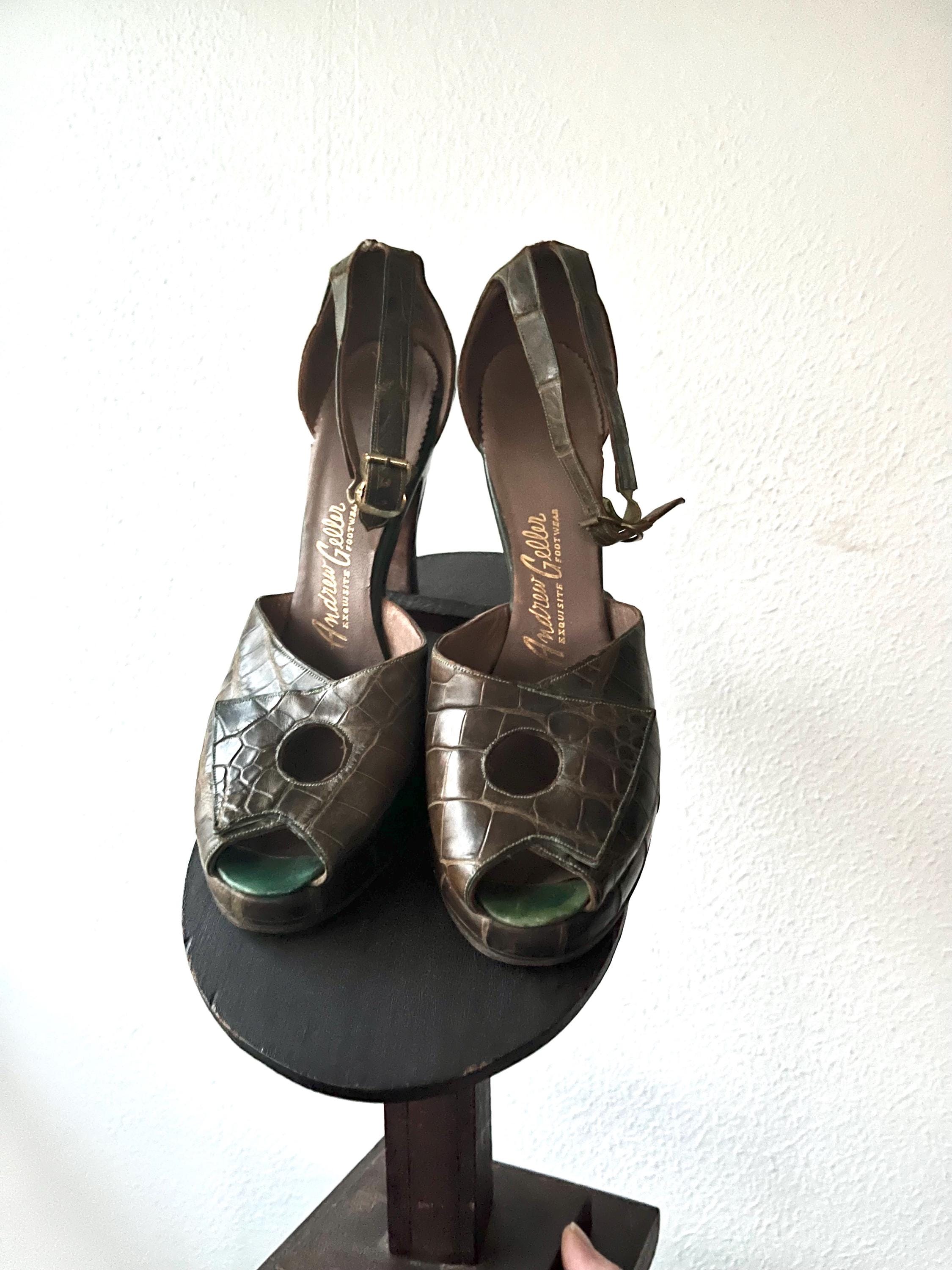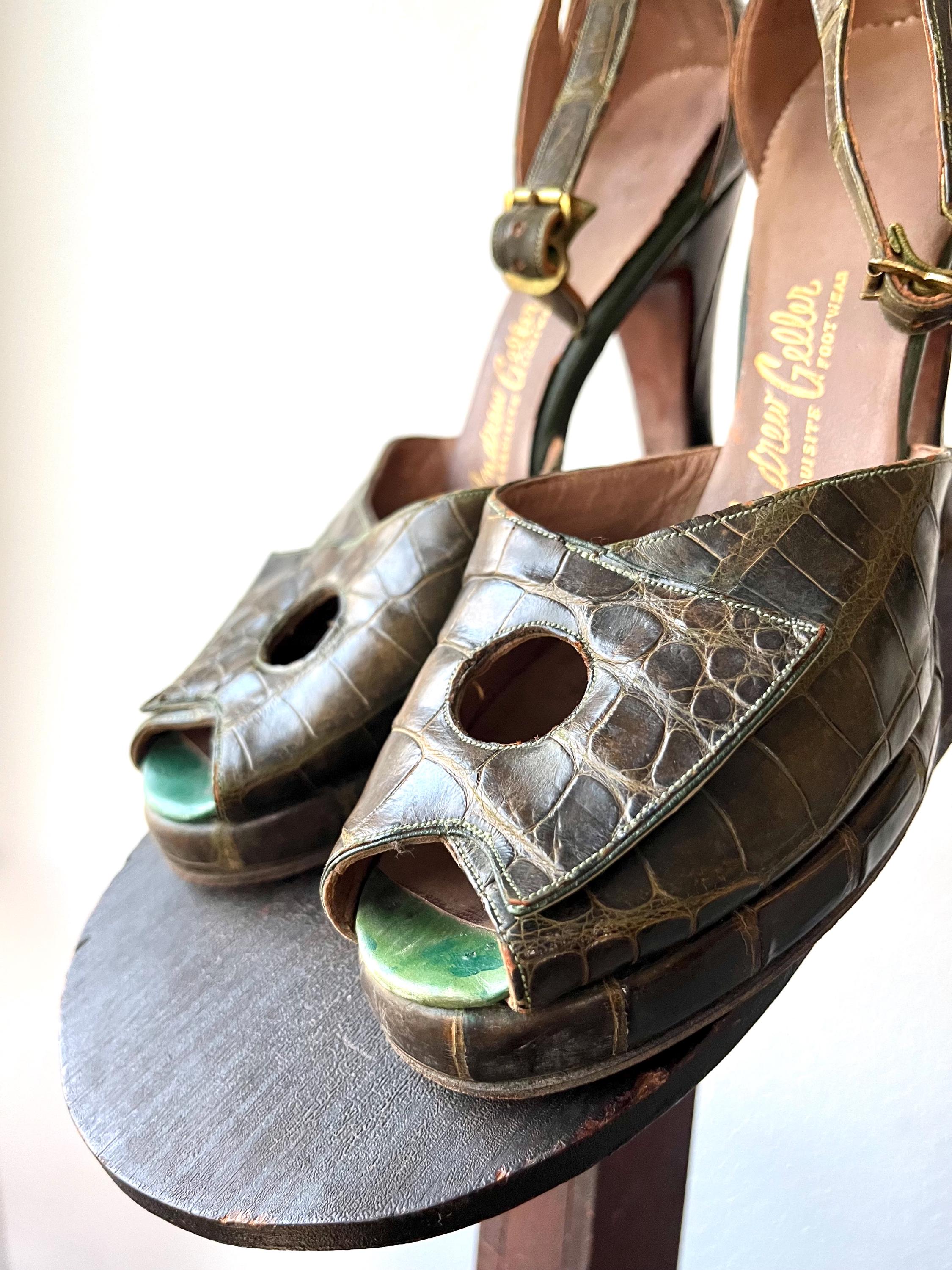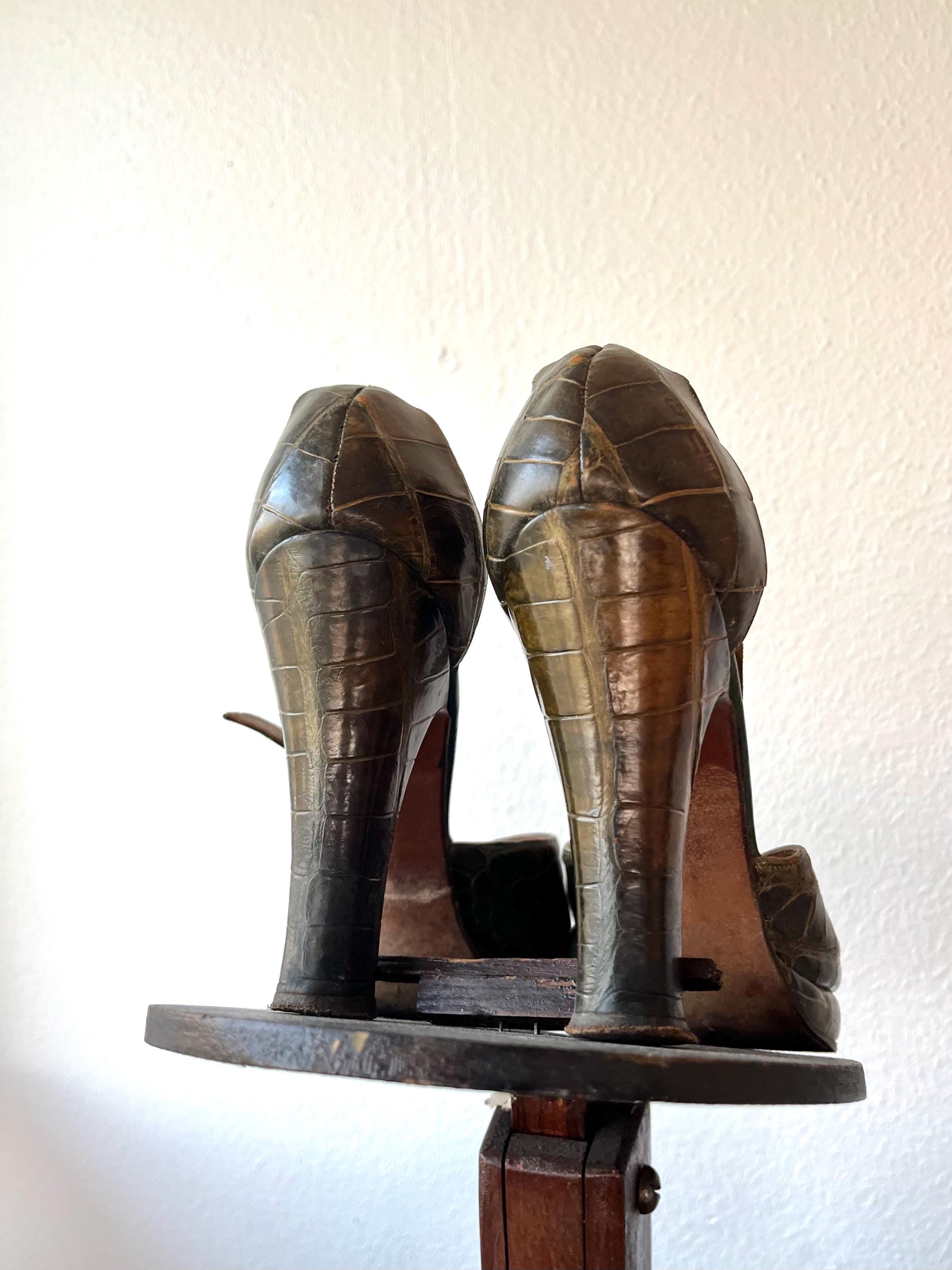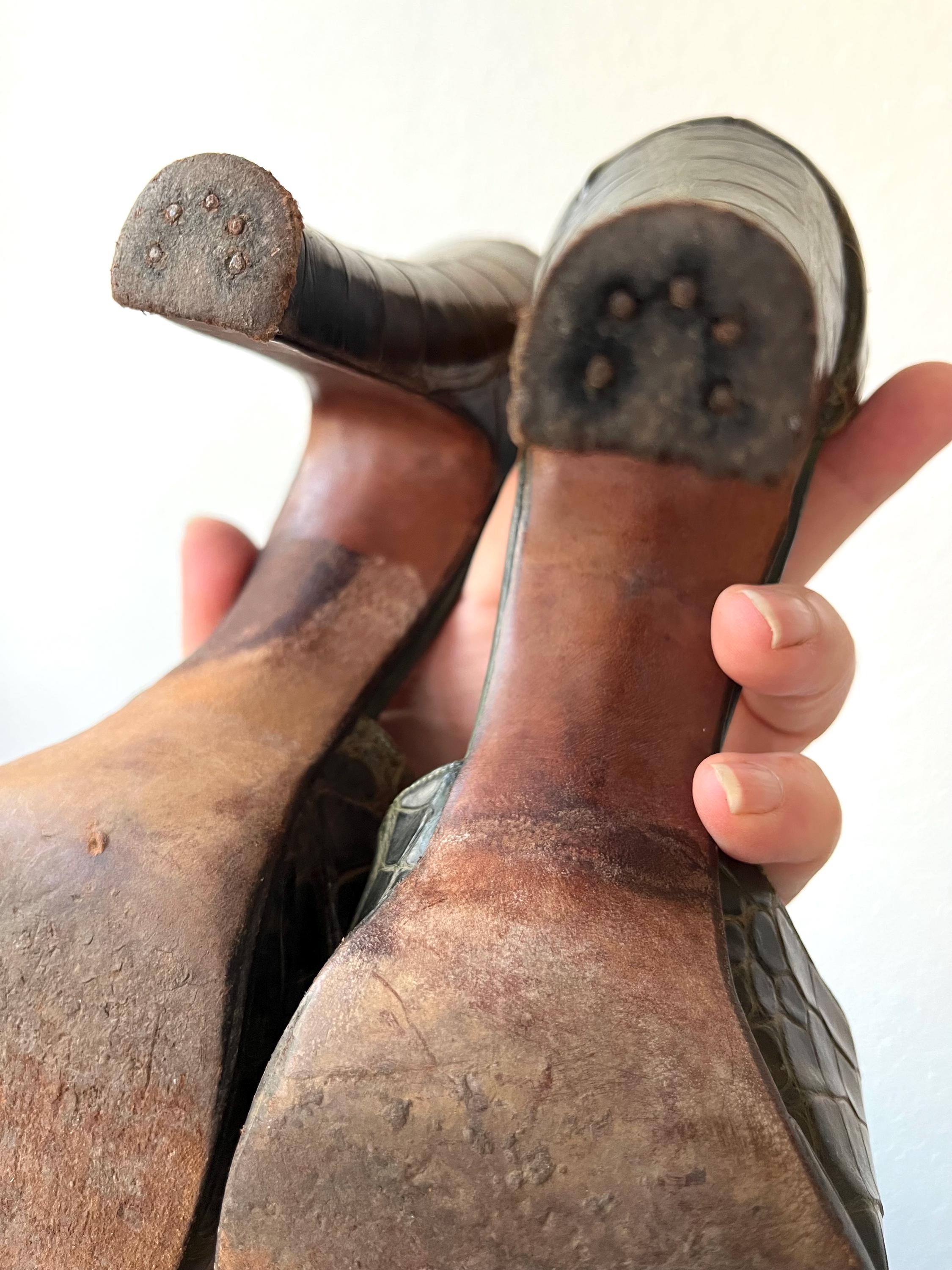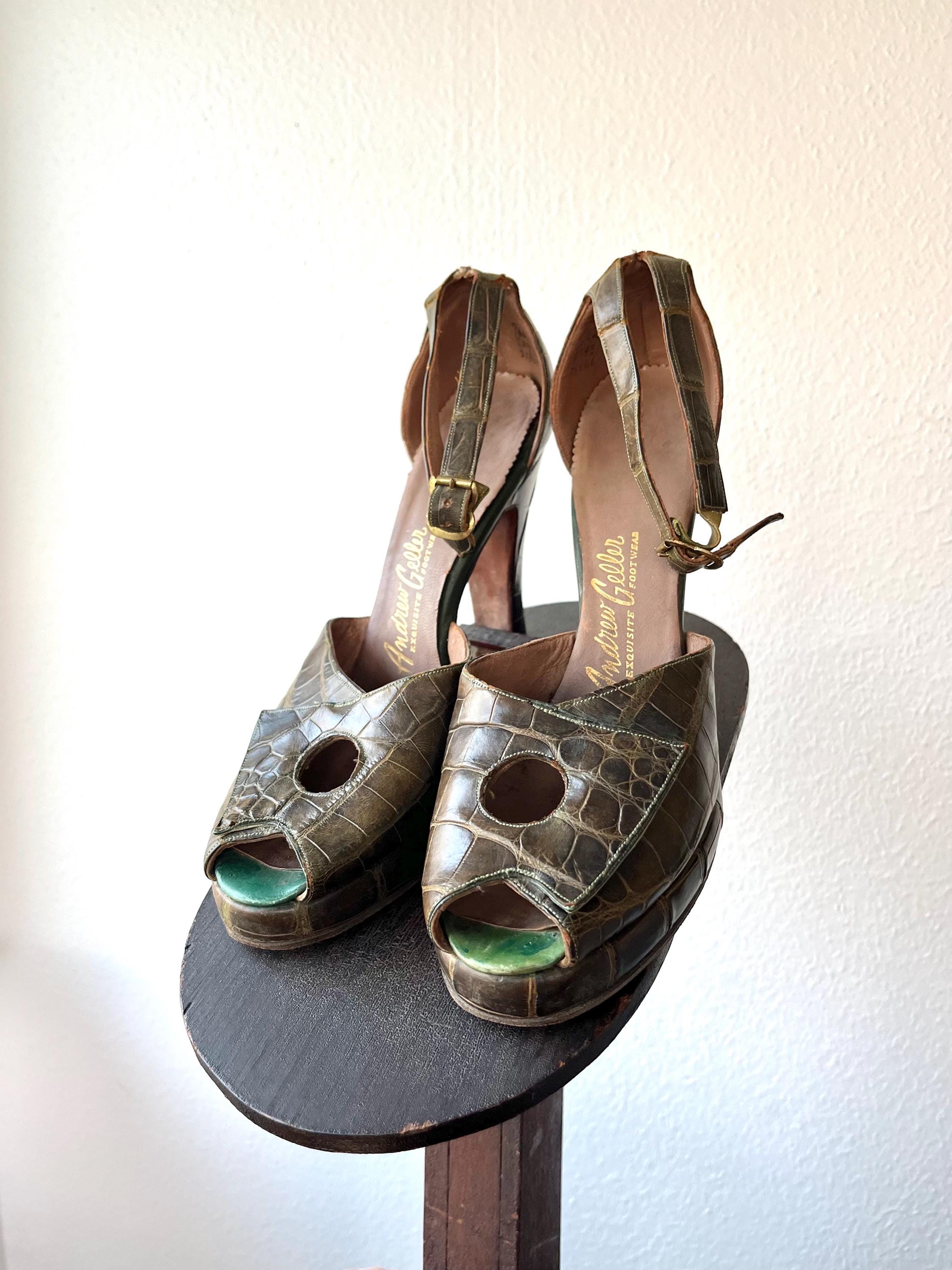 vintage 40s embossed (gator or lizard) green leather heels