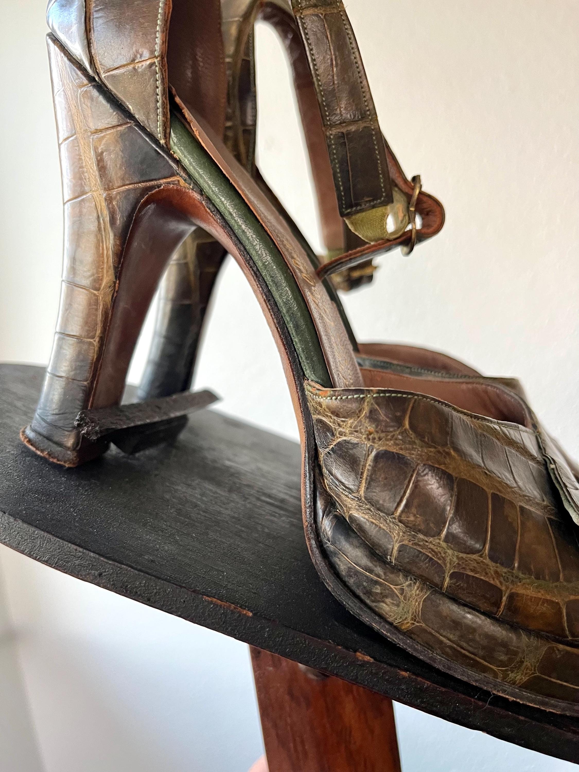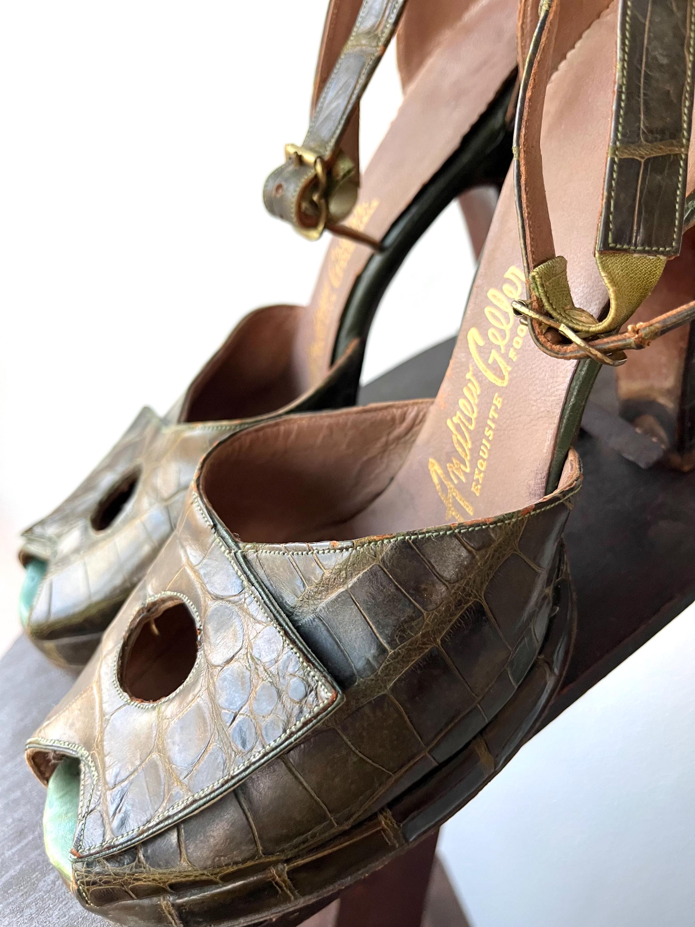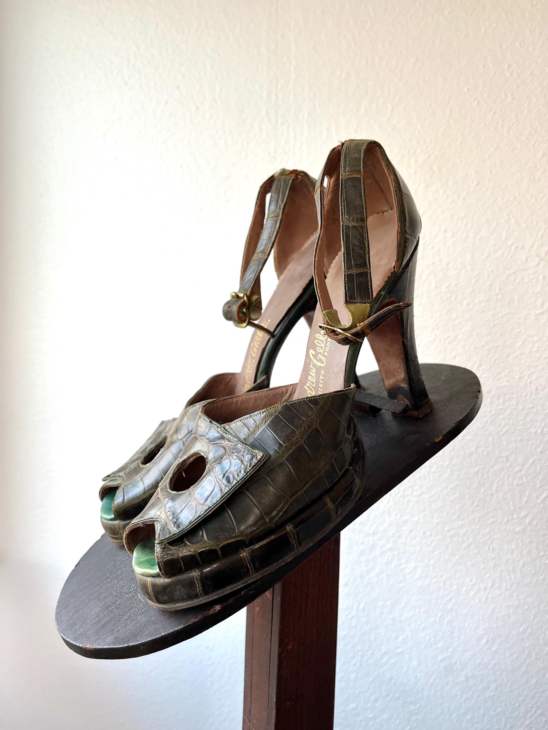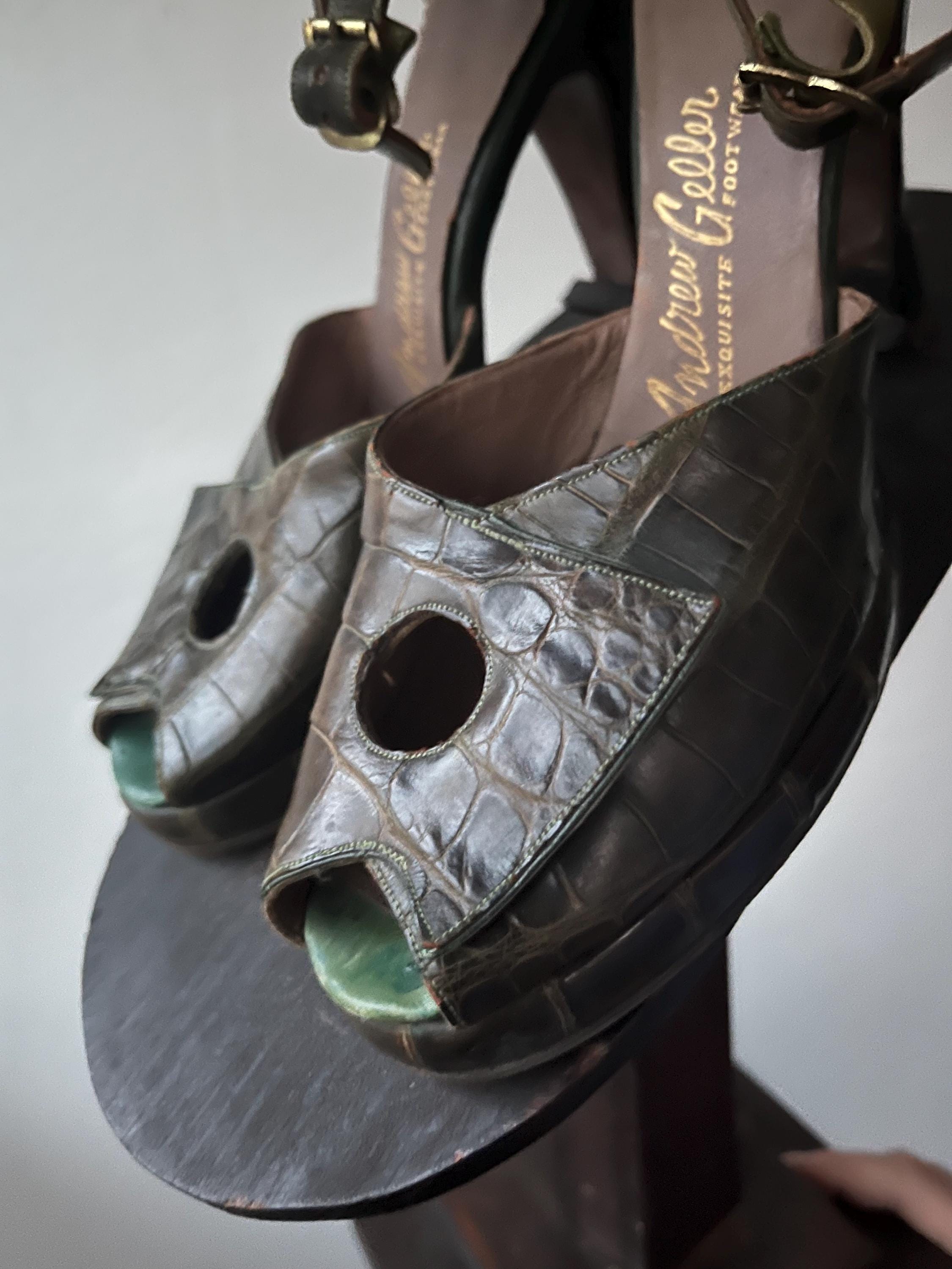vintage 40s embossed (gator or lizard) green leather heels
