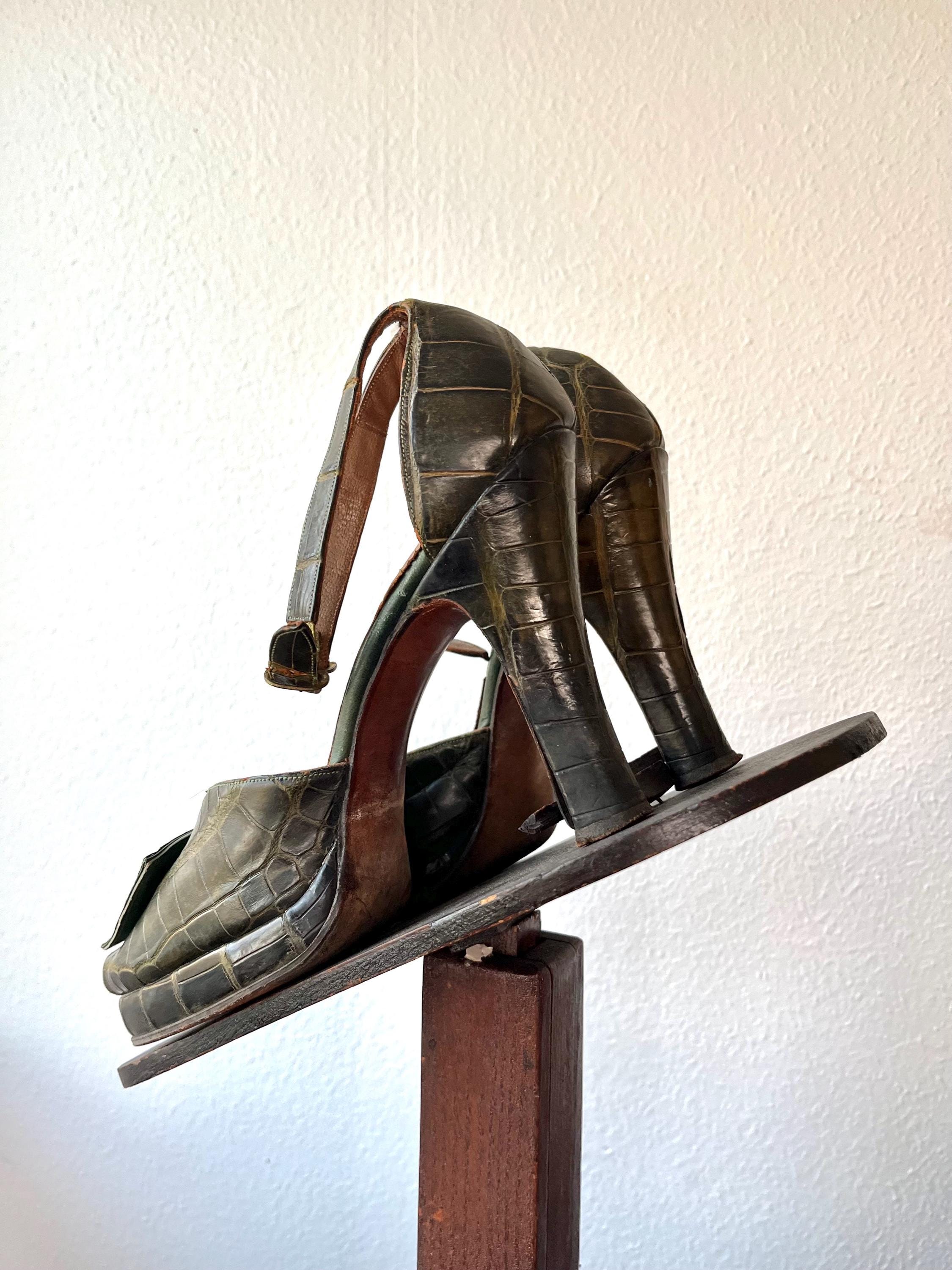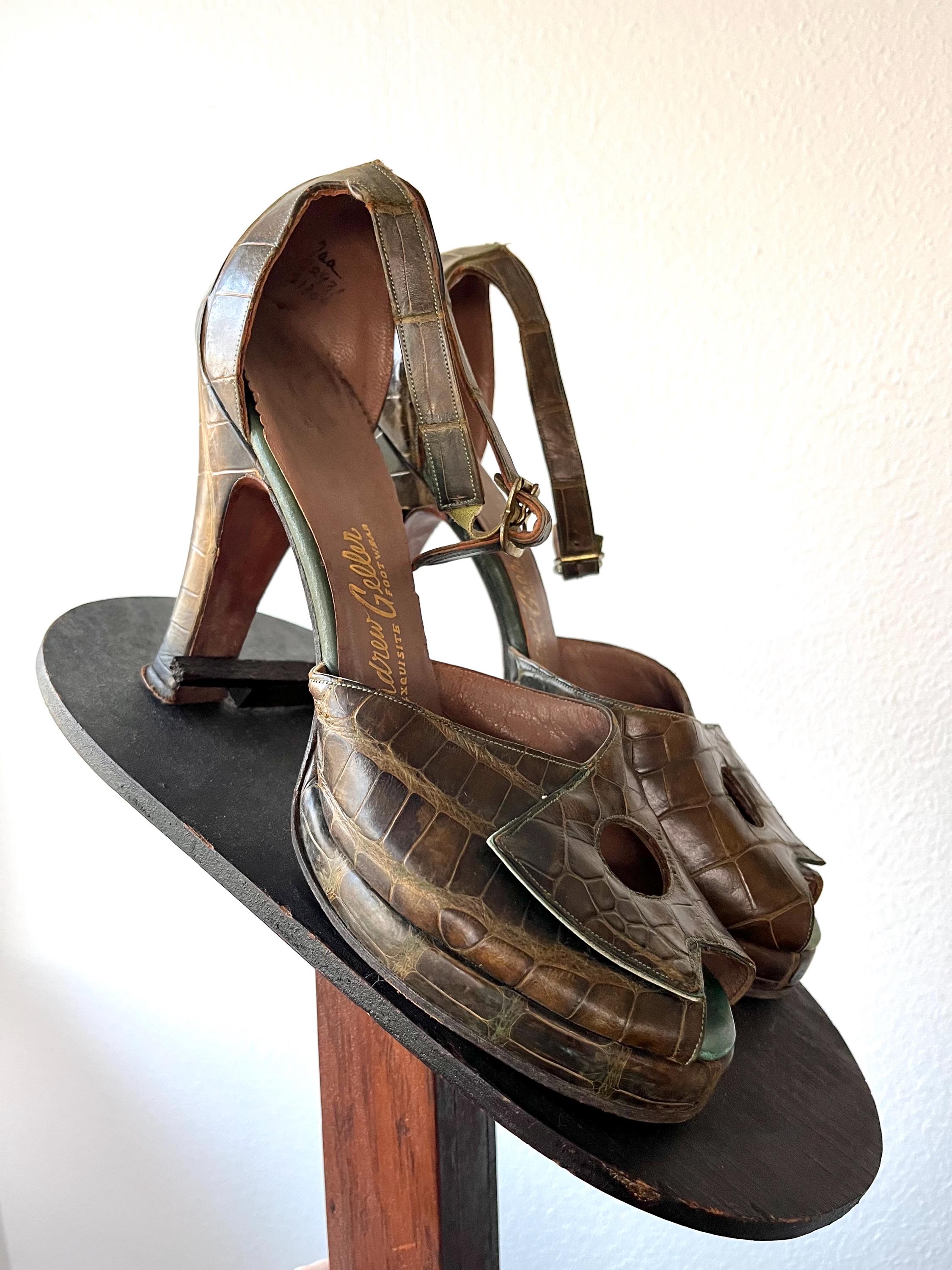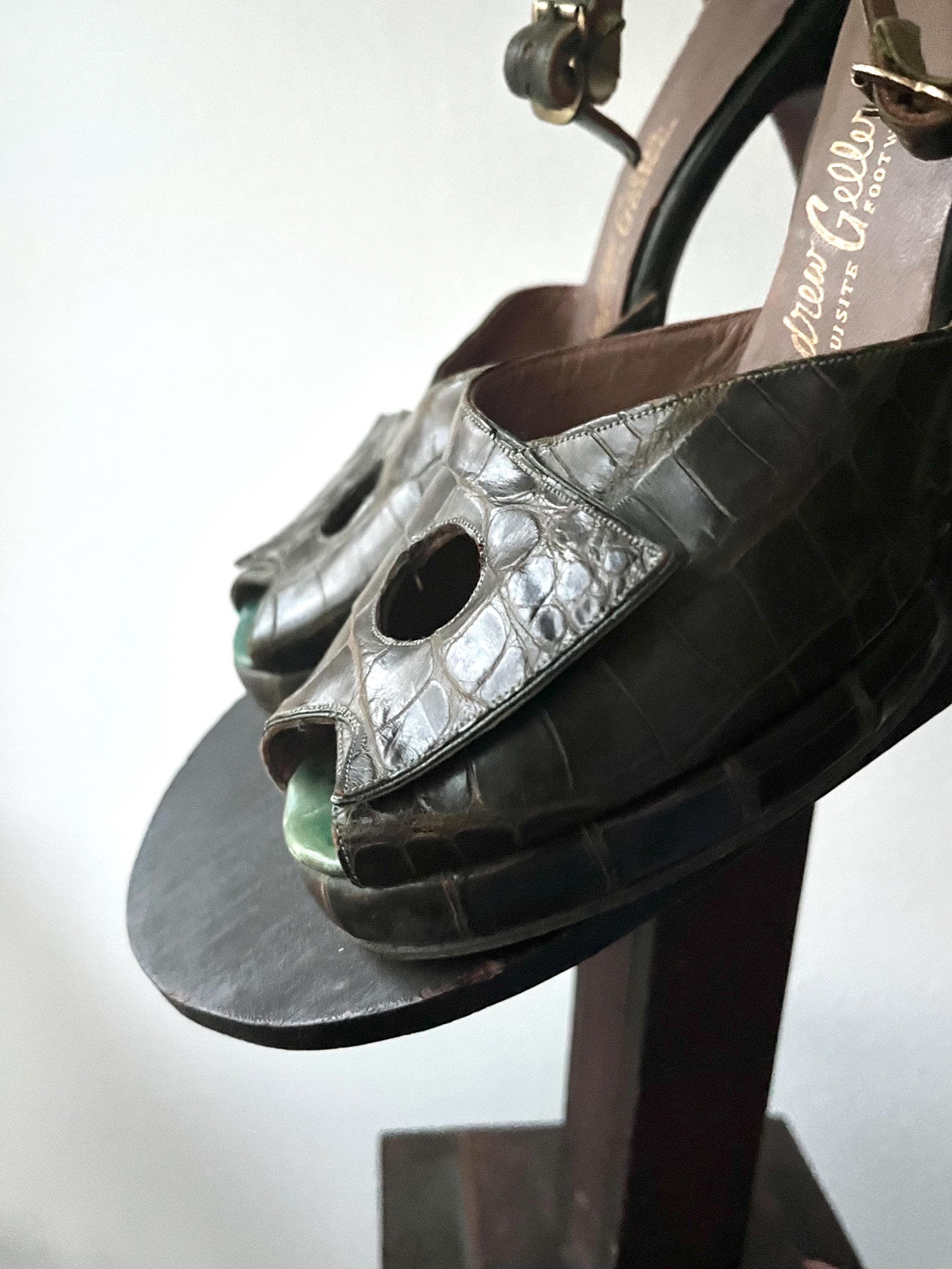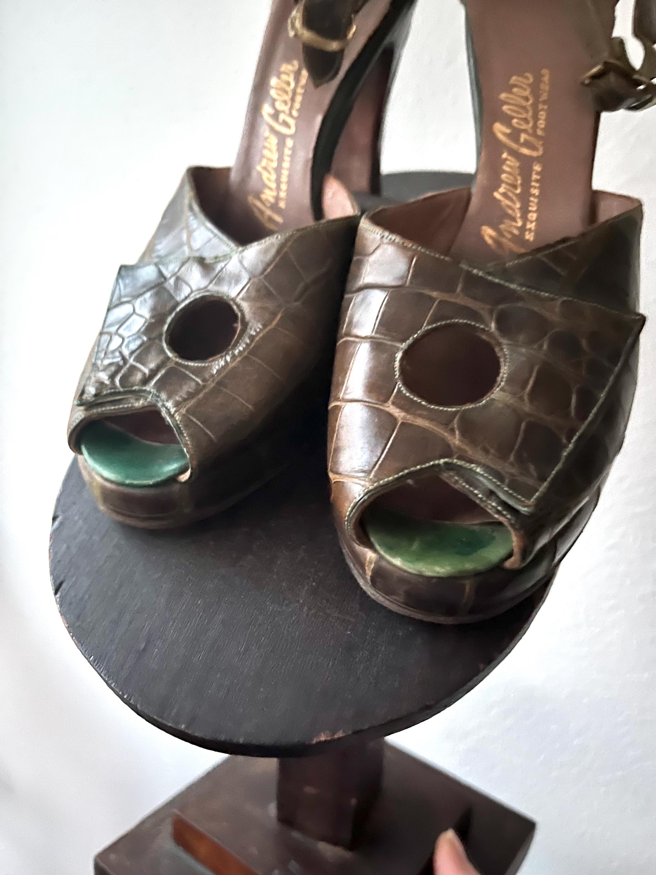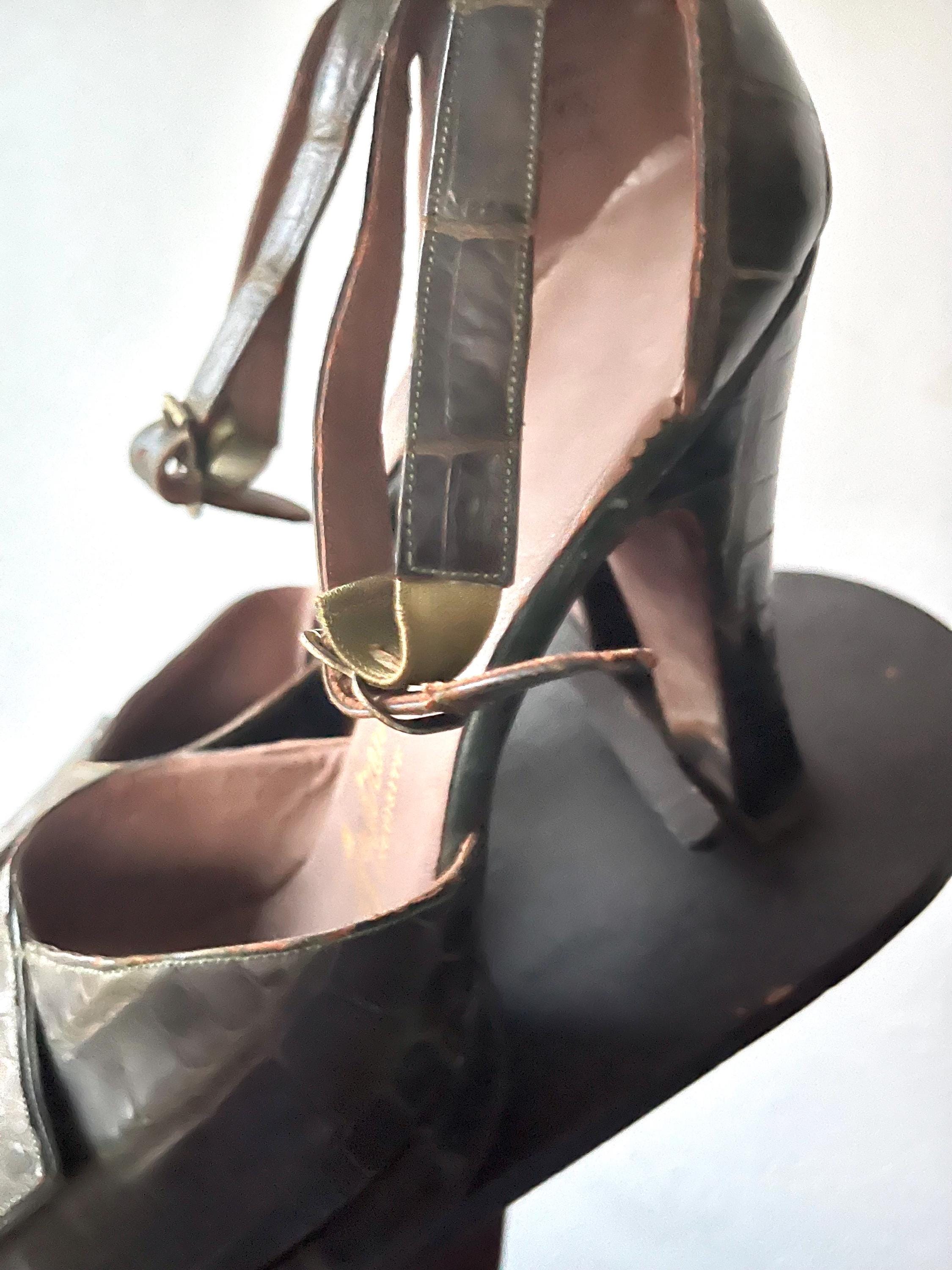 vintage 40s embossed (gator or lizard) green leather heels