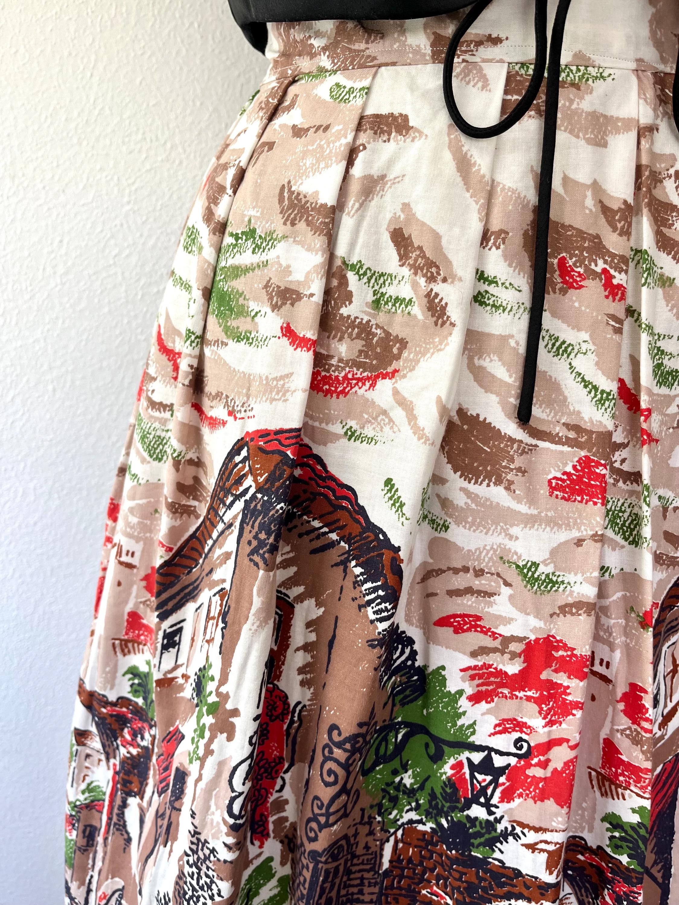 1950s Novelty print cotton skirt