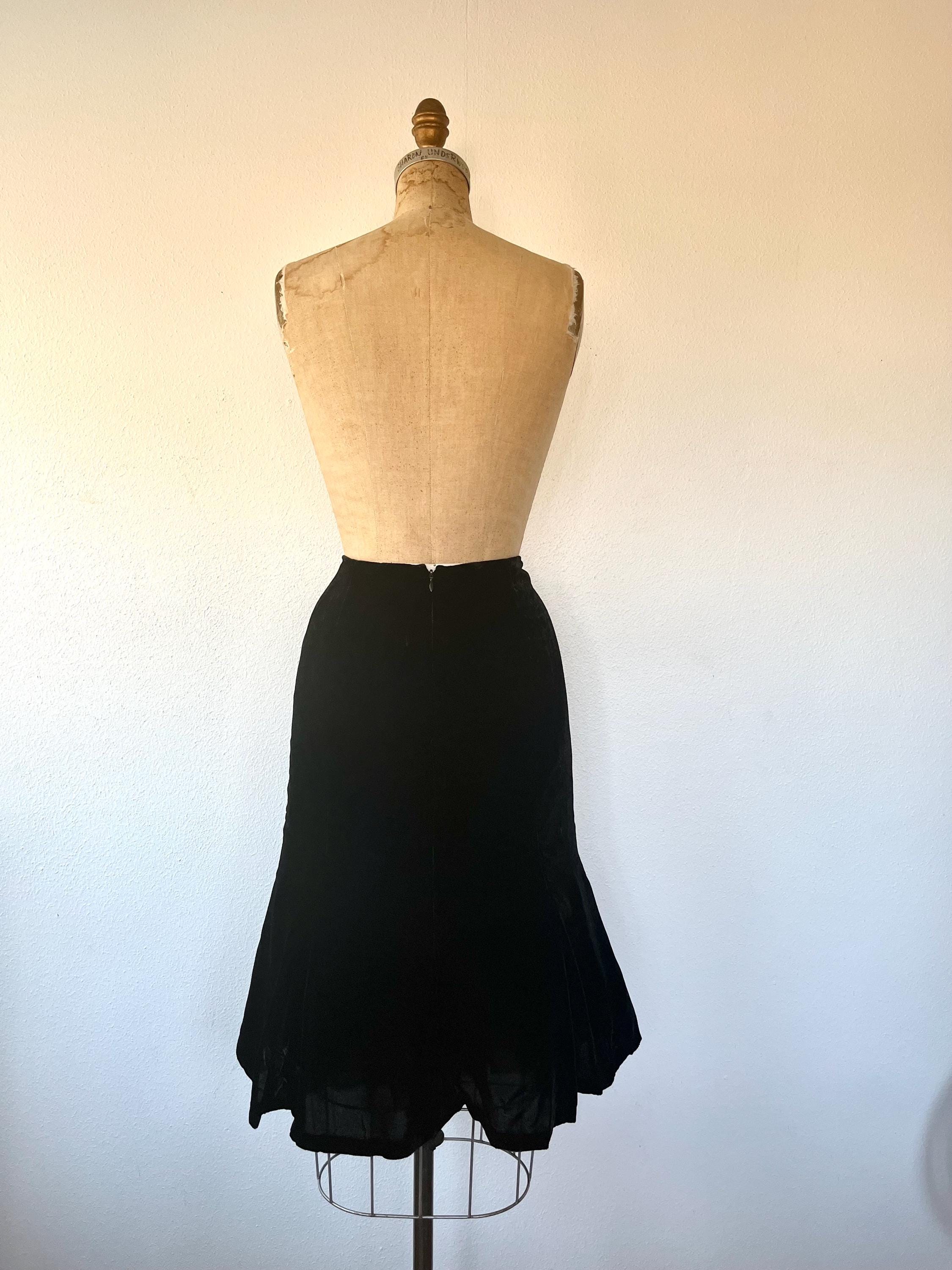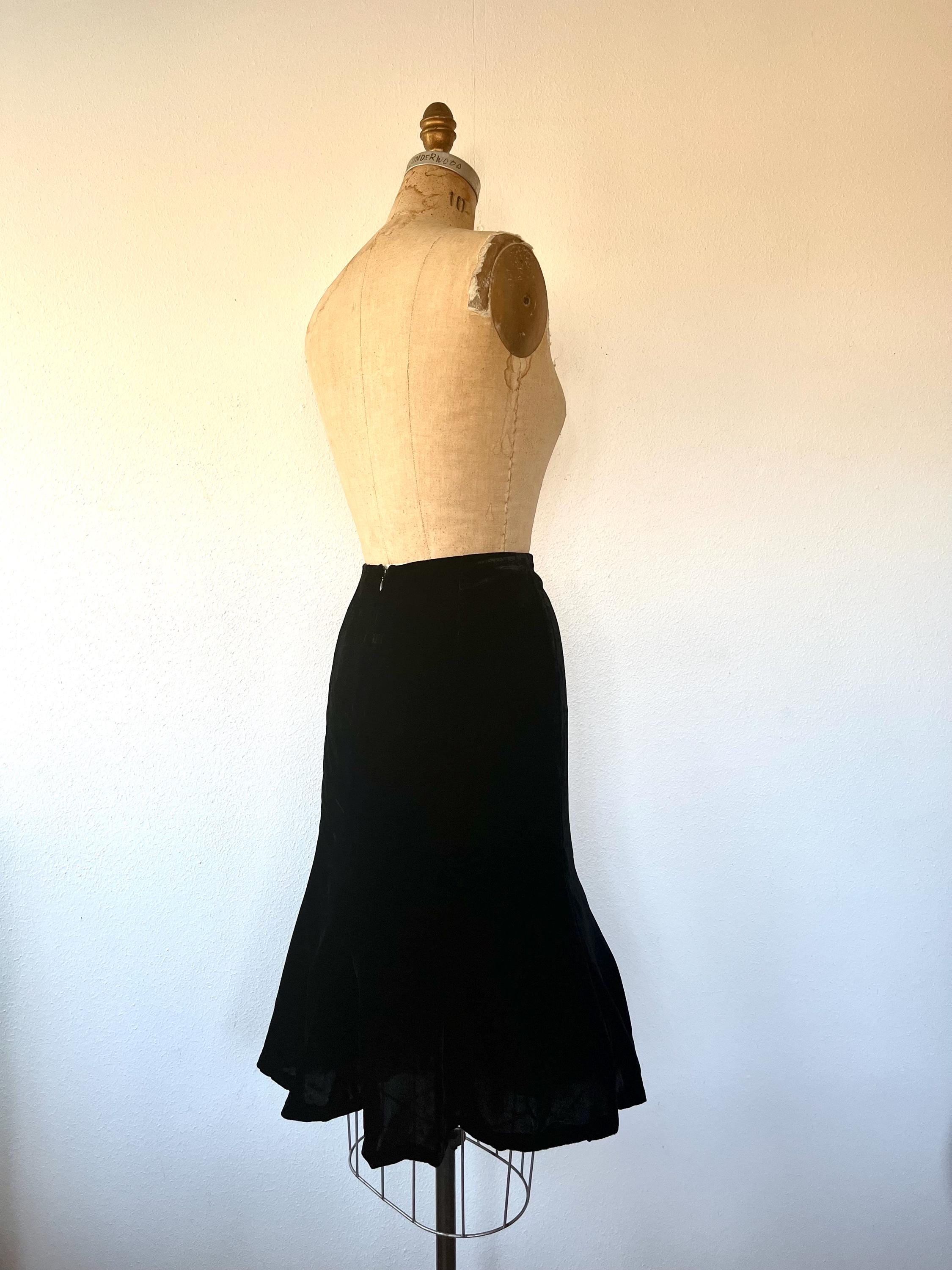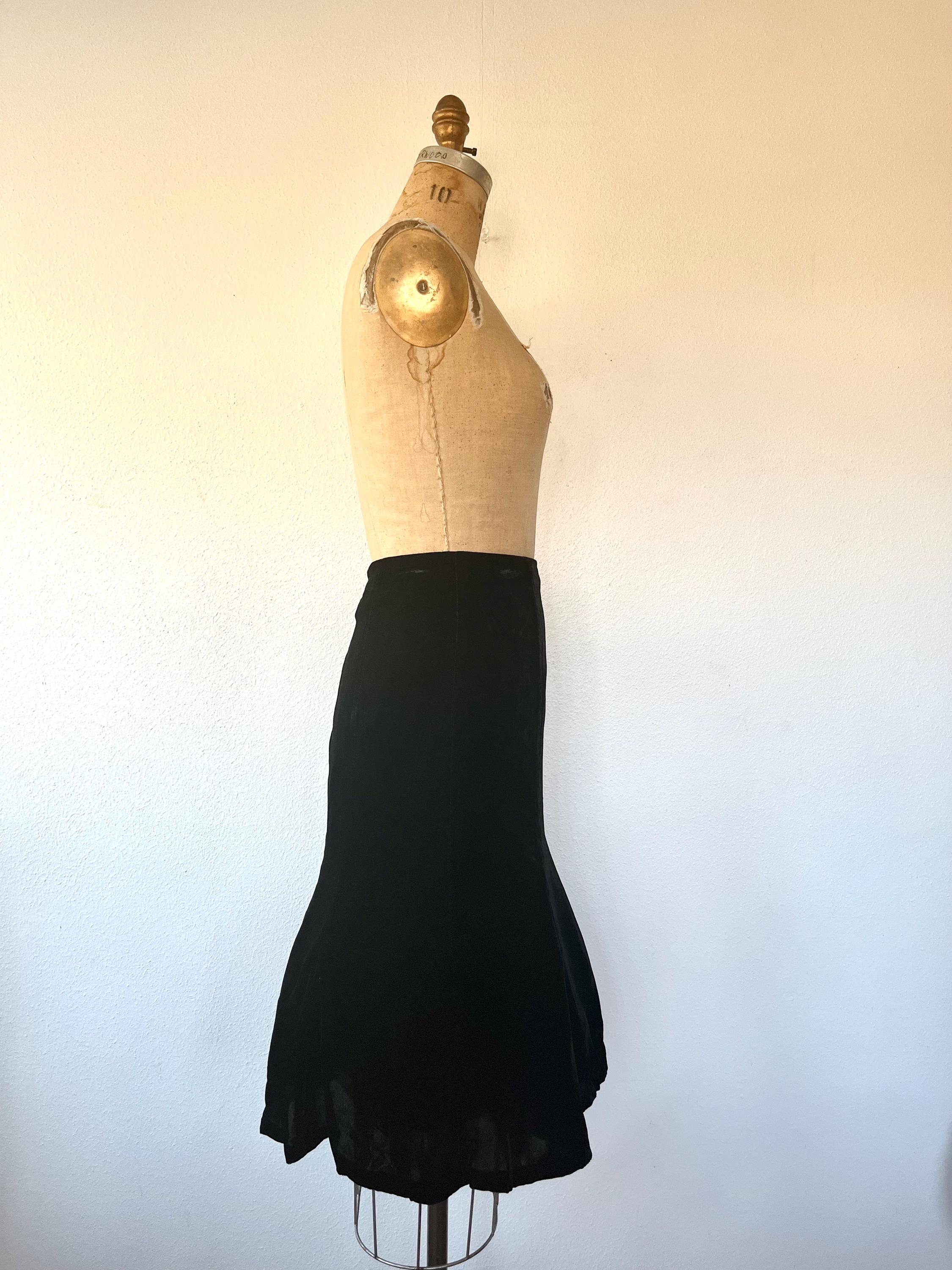 90s black velvet skirt with a flirty hem