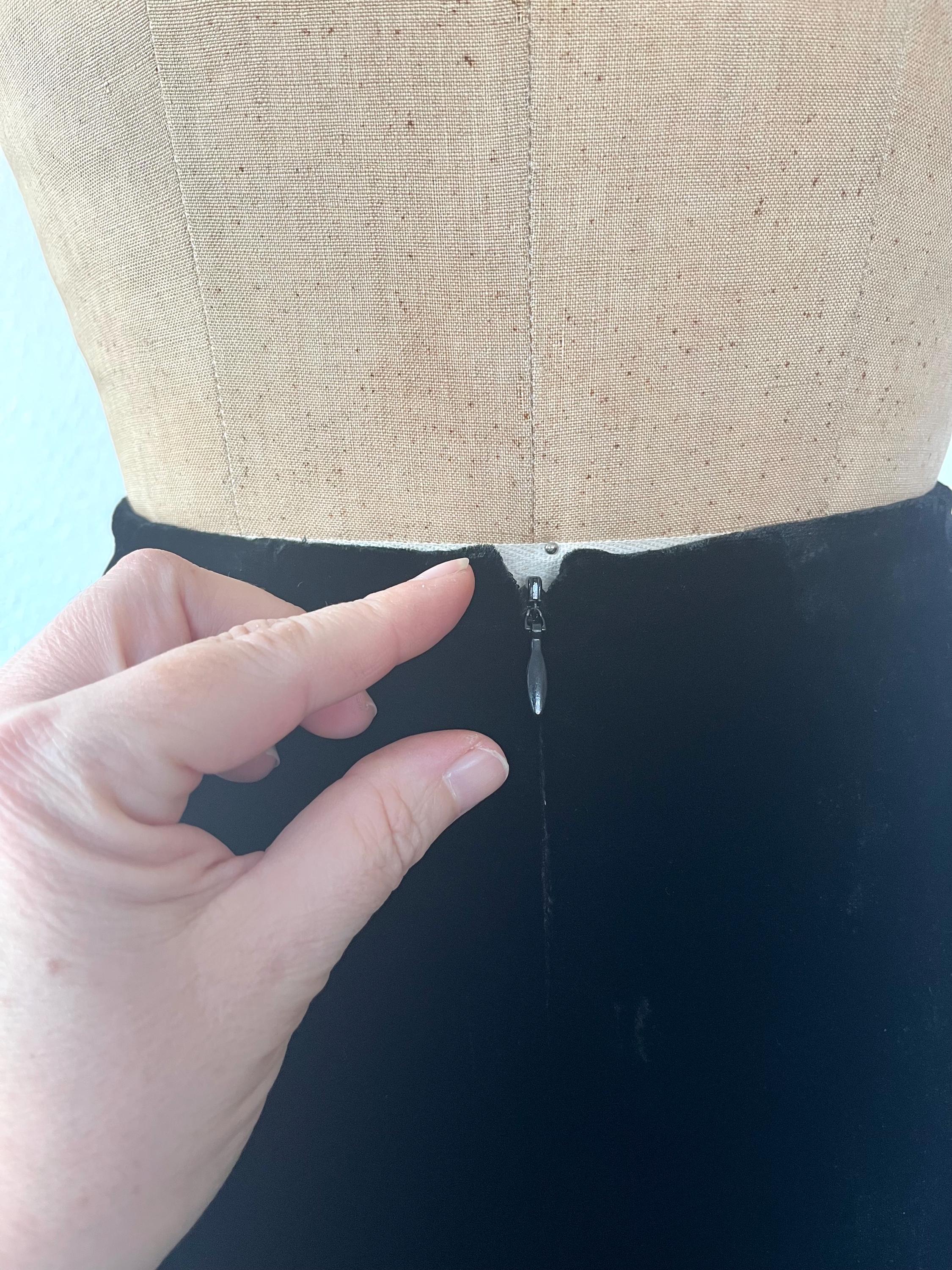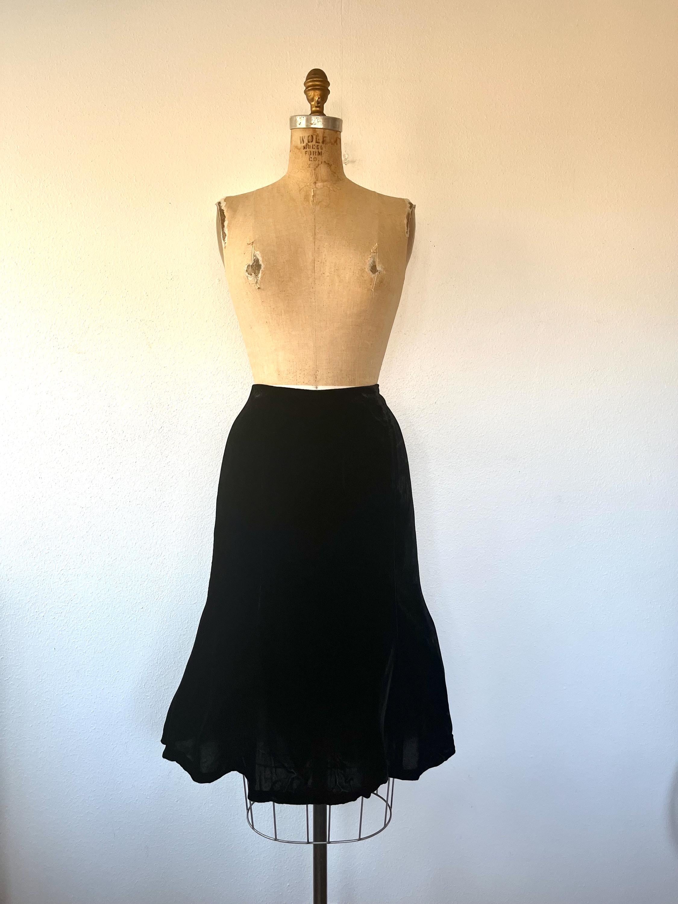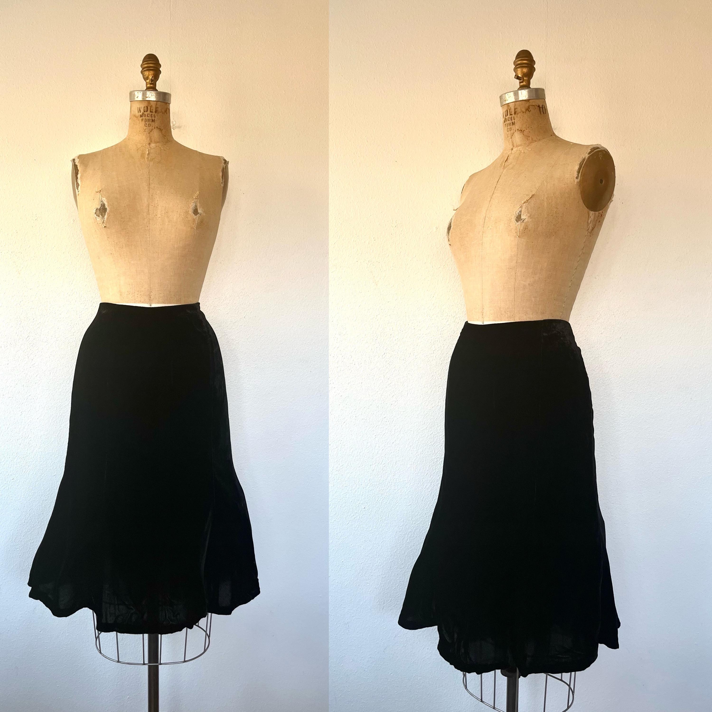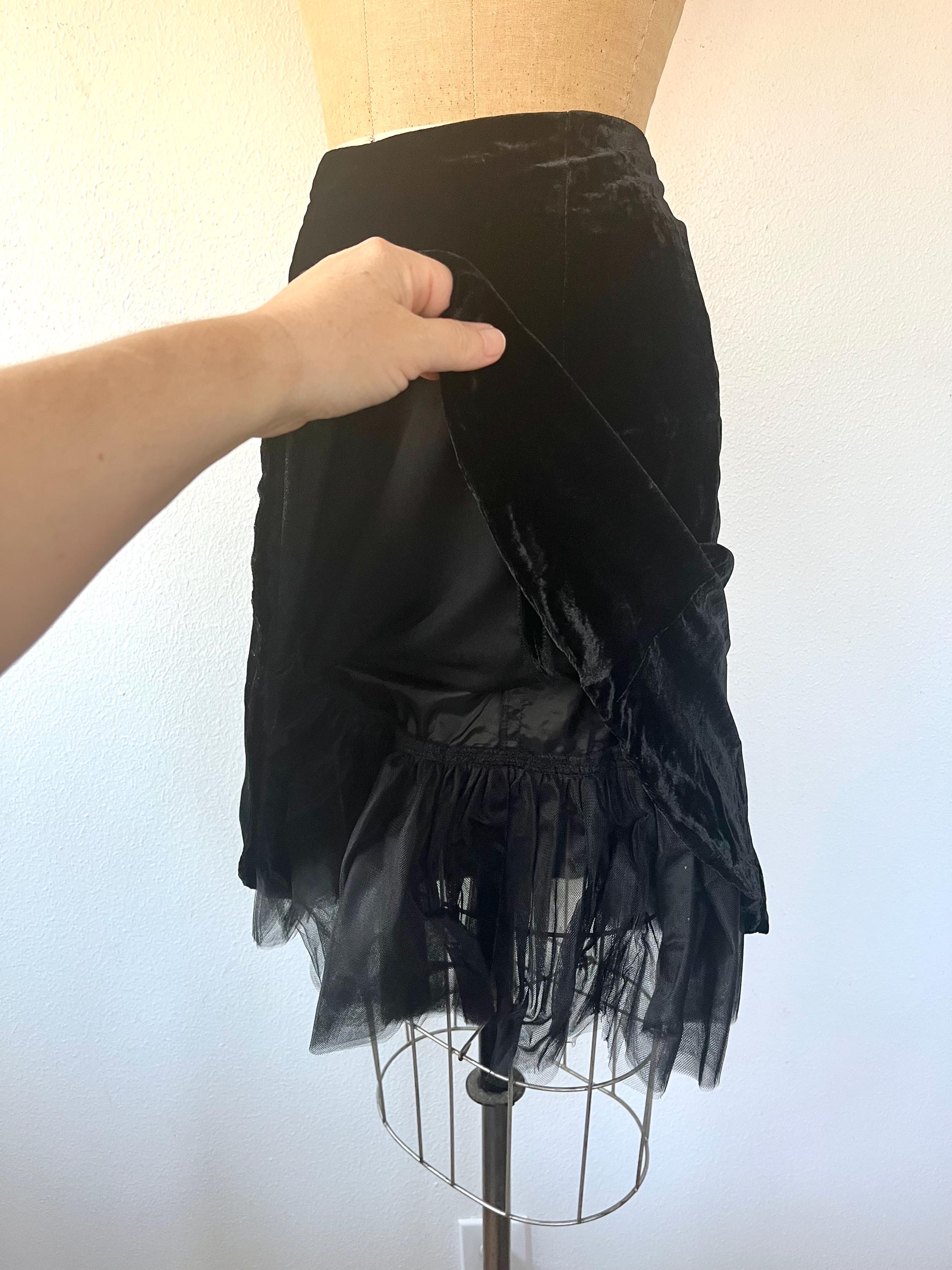 90s black velvet skirt with a flirty hem