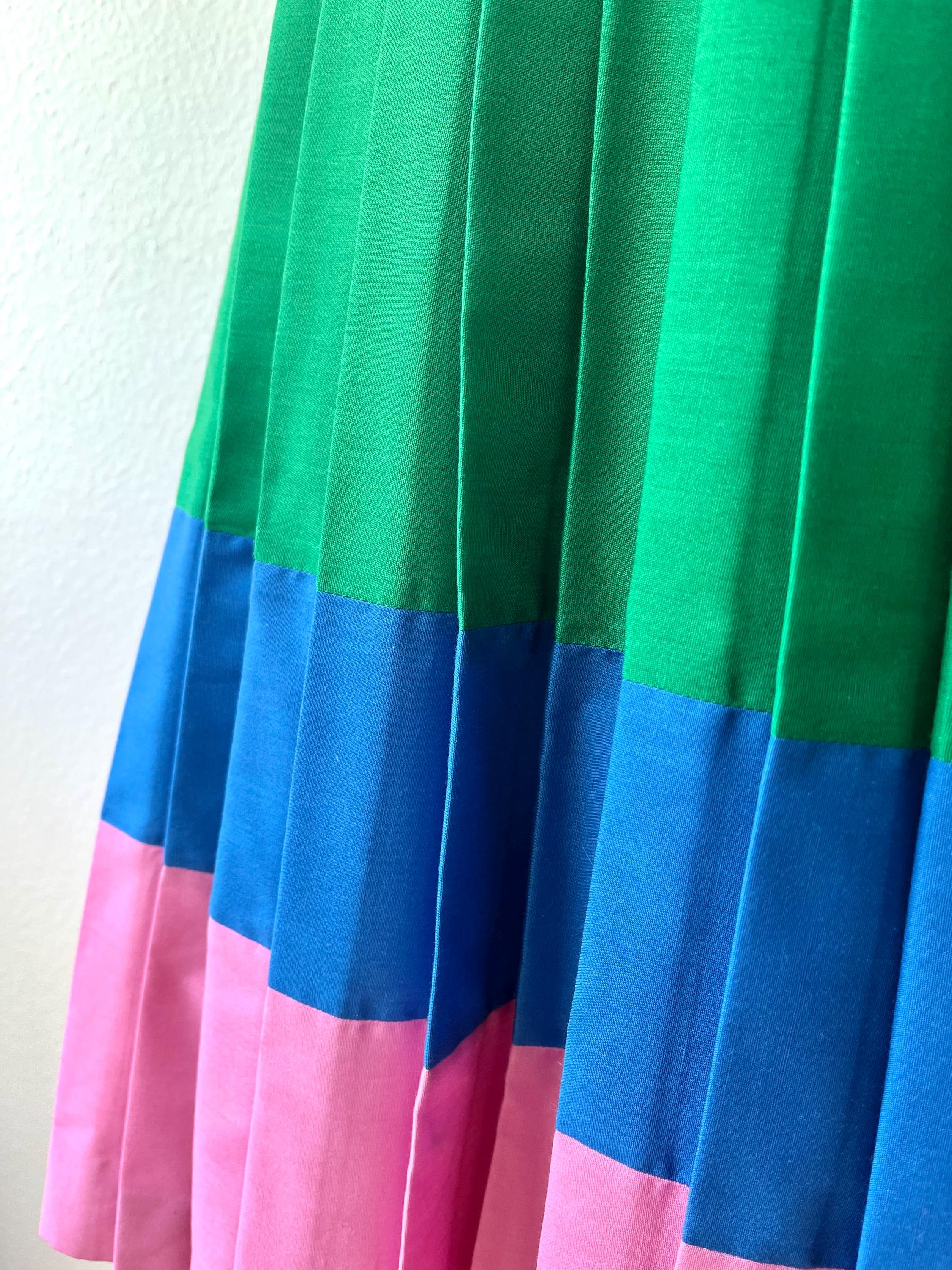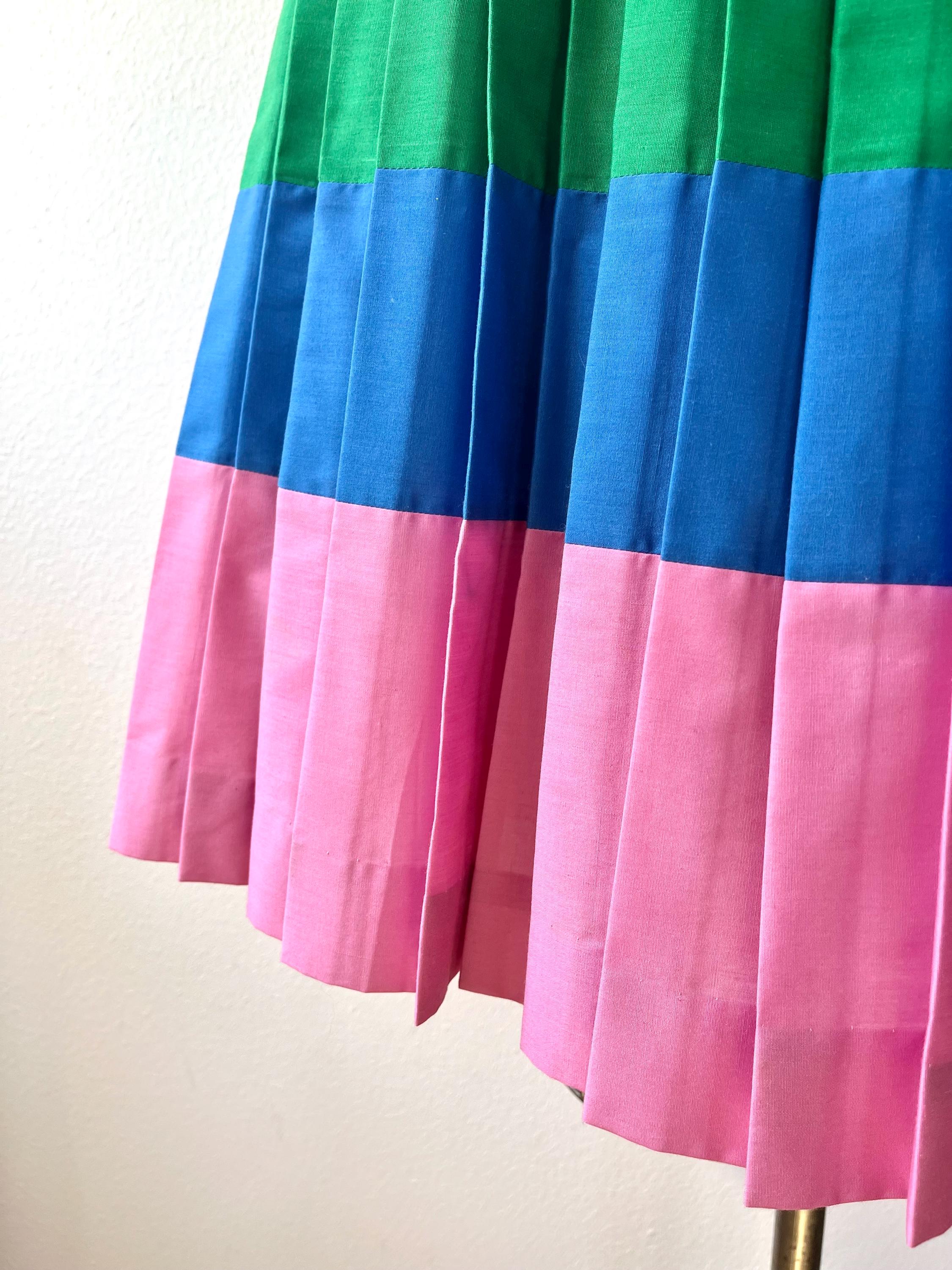 color-blocked in Spring green, pink and blue