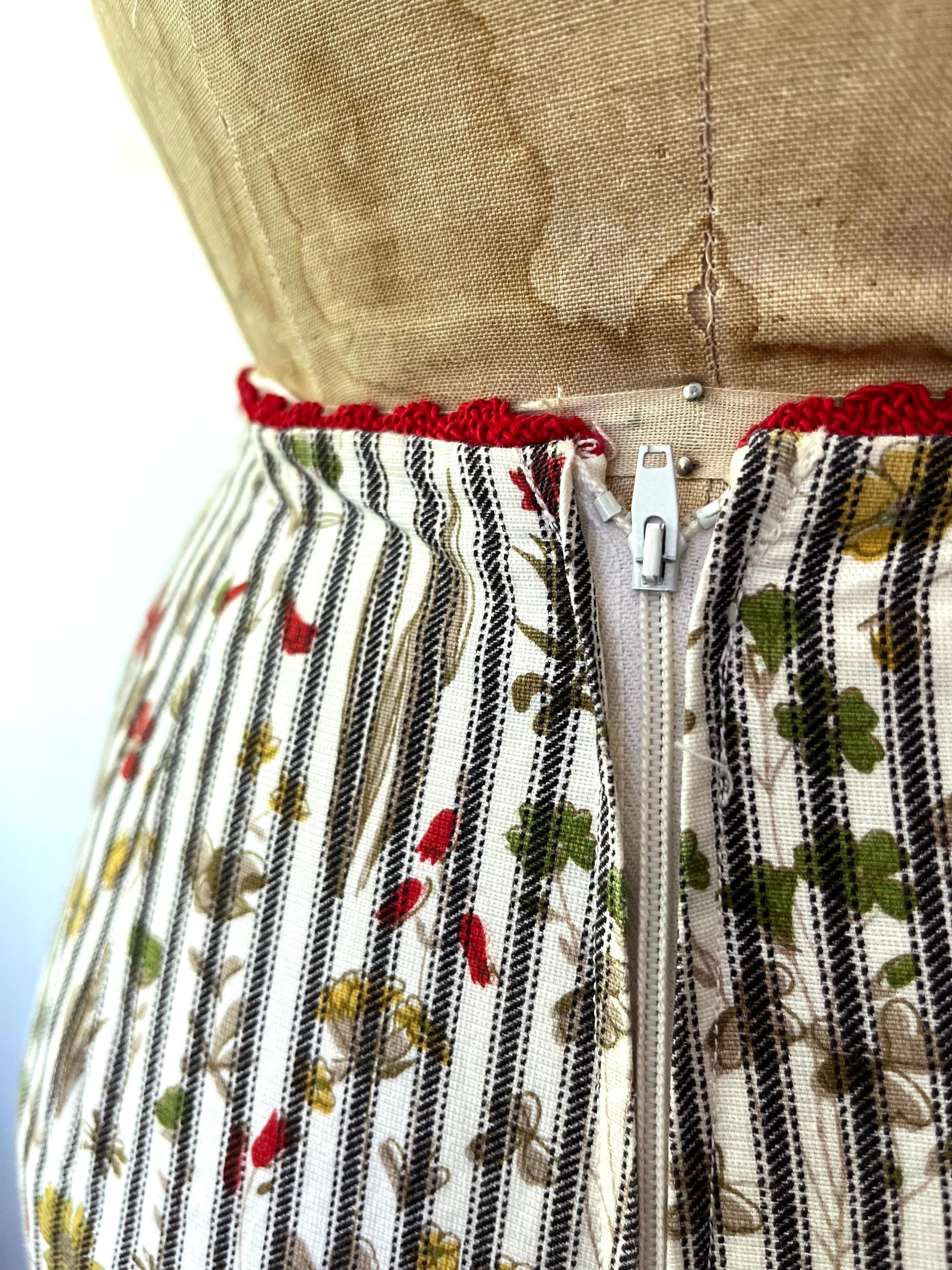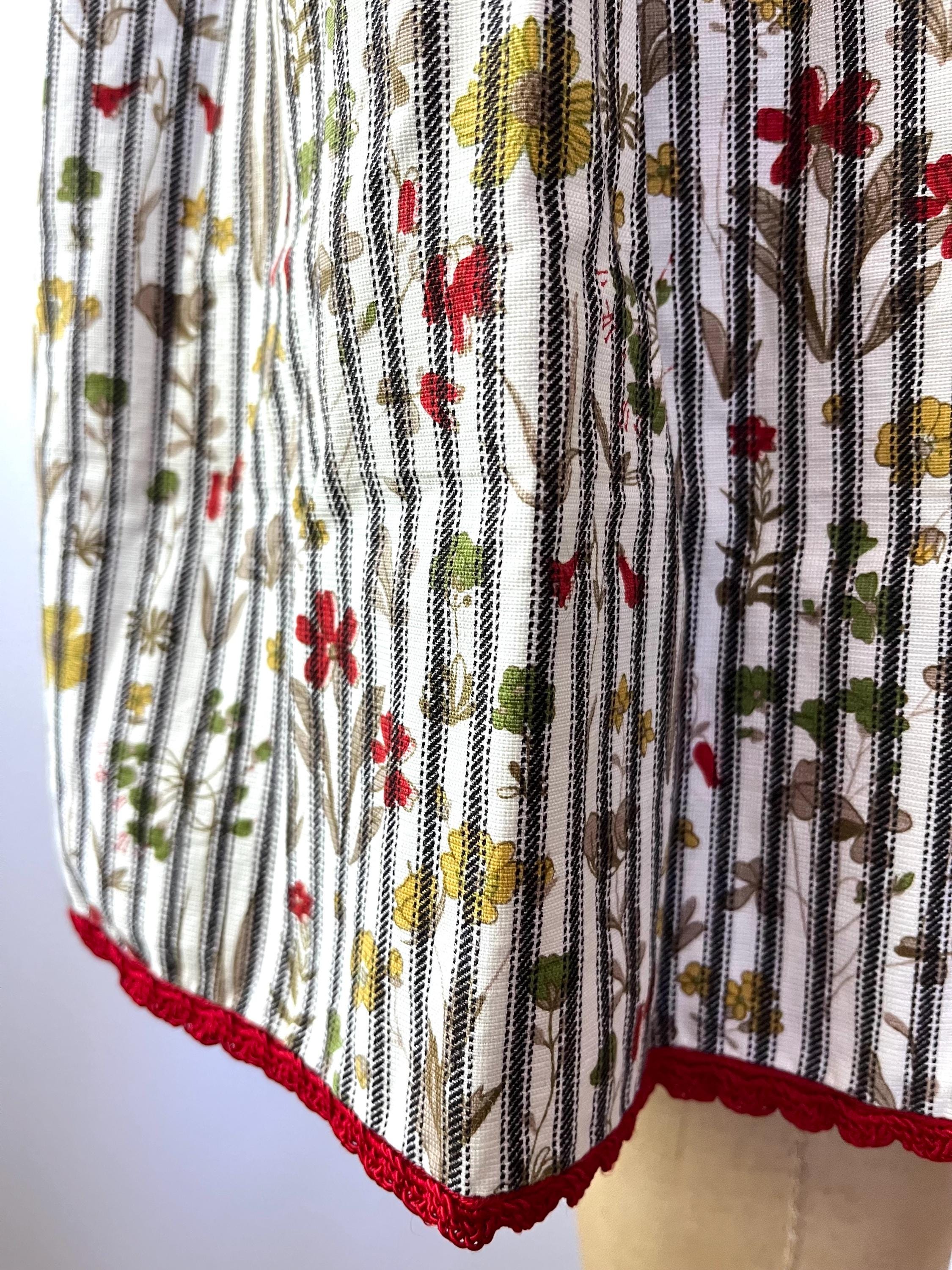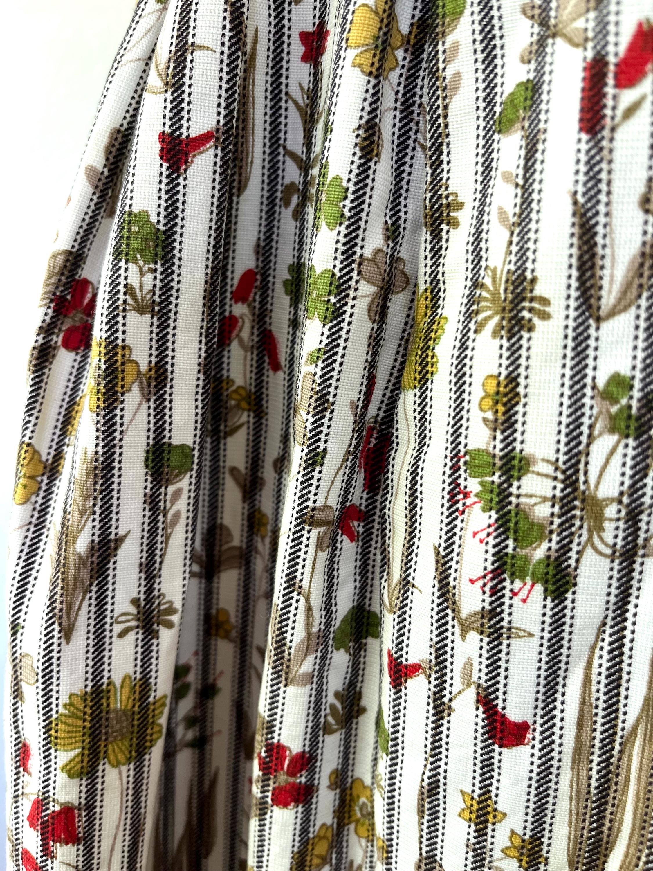 the fabric is so beautiful with the ticking highlighting the botanical floral print of whimsical seeds, buds, leaves and flowers of clover, wood sorrel, aster, daisies and anemone