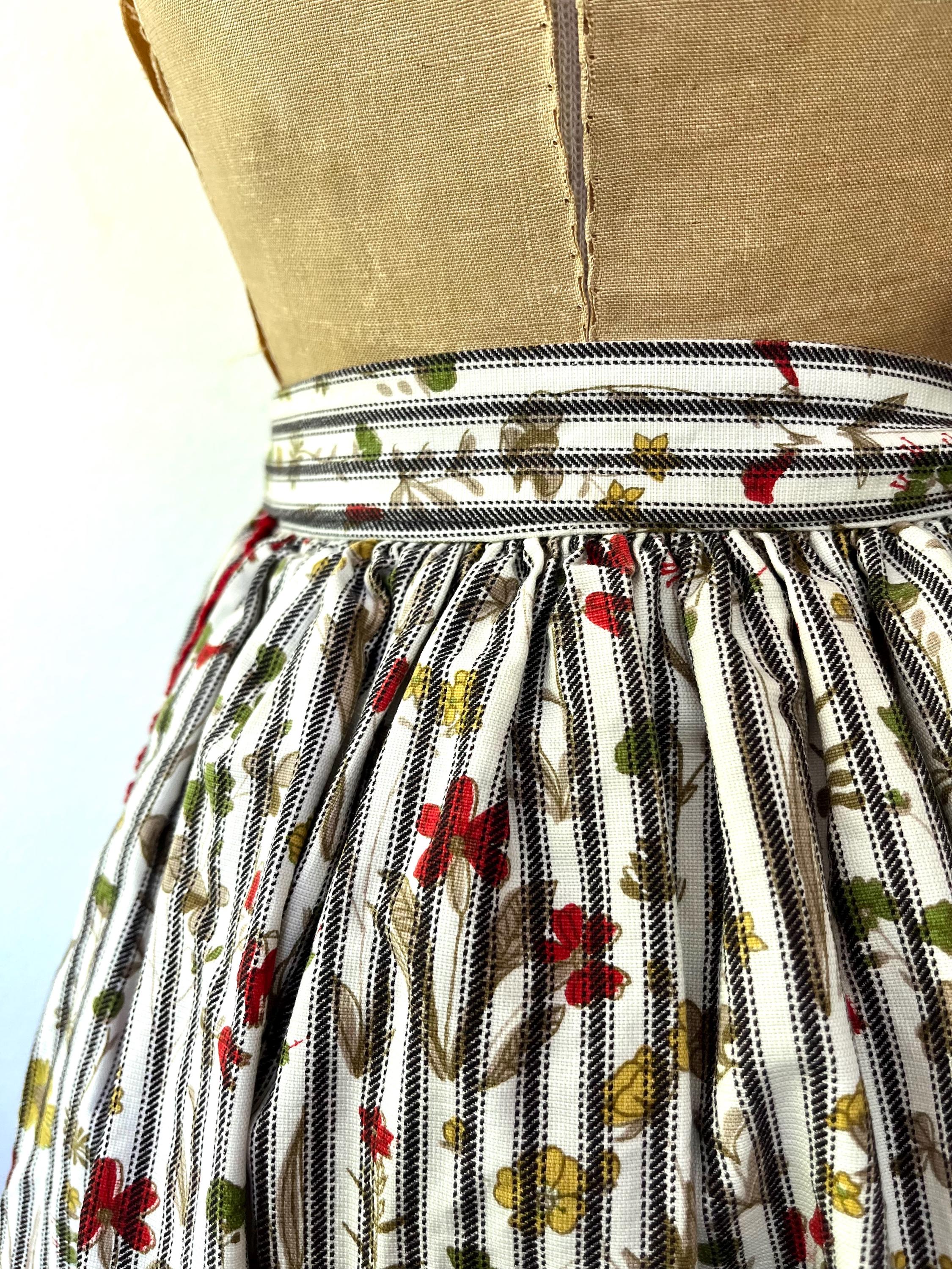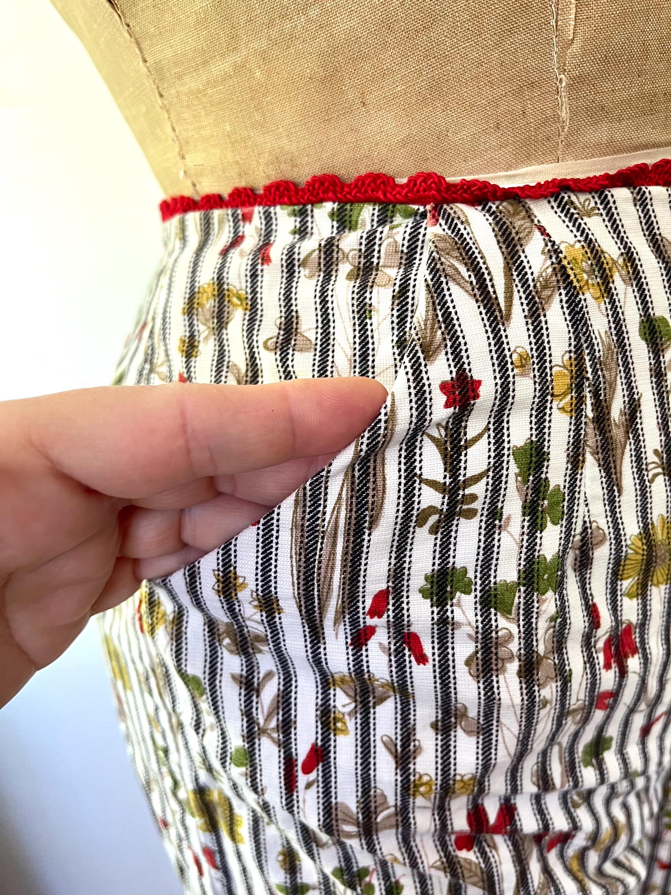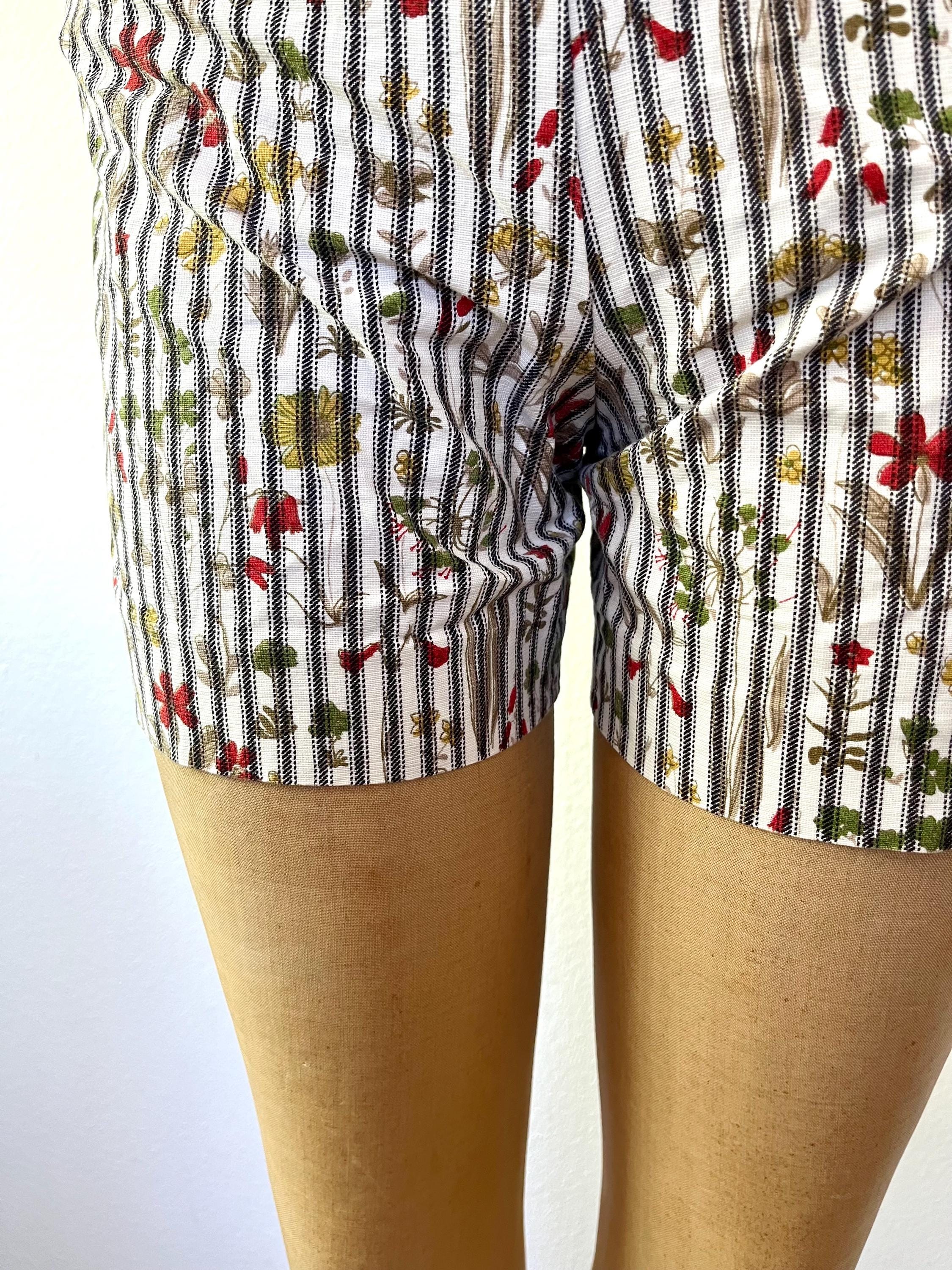 the fabric is so beautiful with the ticking highlighting the botanical floral print of whimsical seeds, buds, leaves and flowers of clover, wood sorrel, aster, daisies and anemone