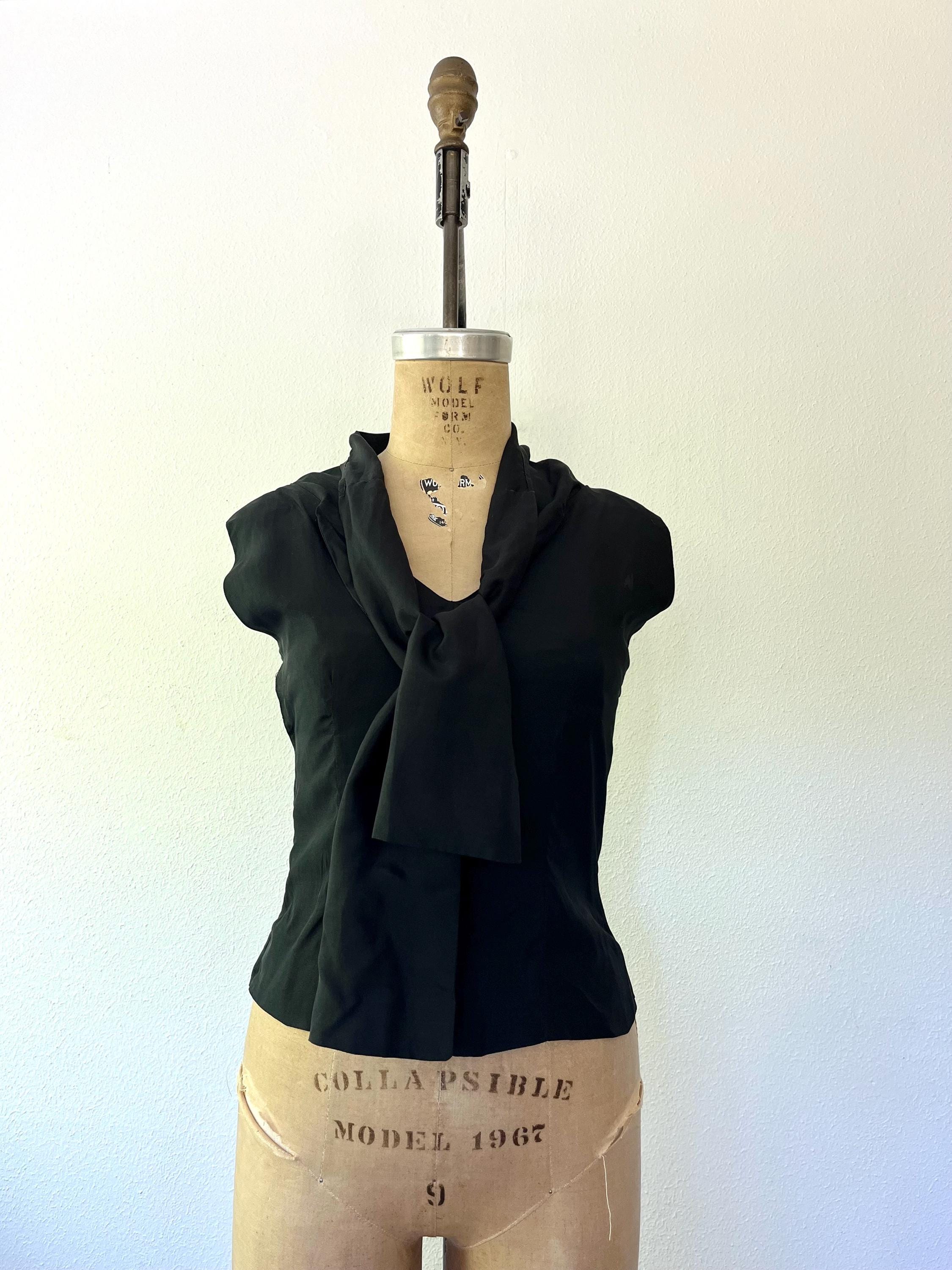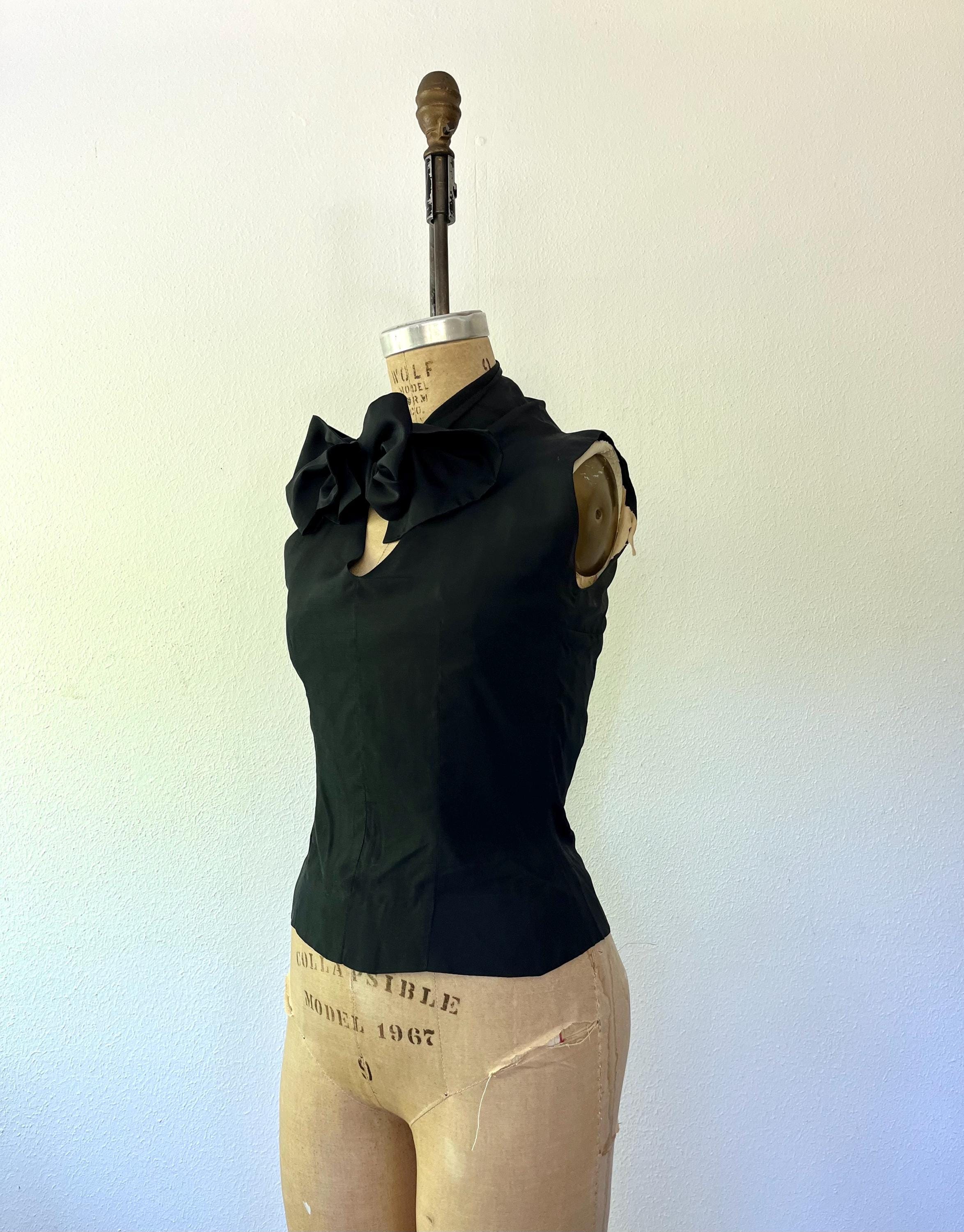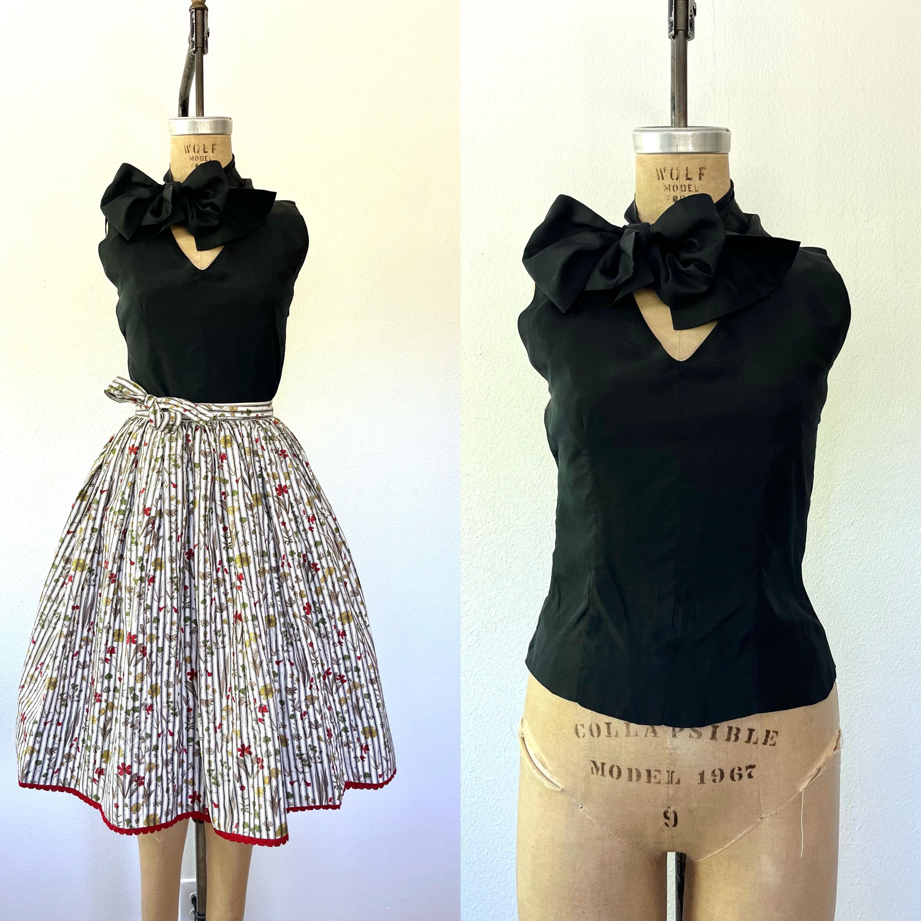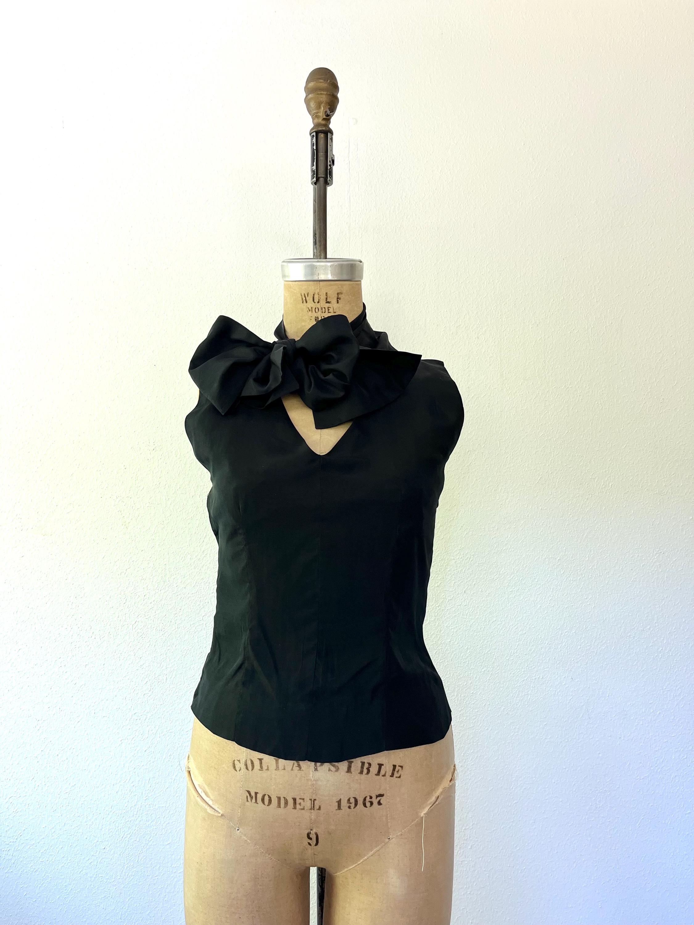 1950s black bow blouse