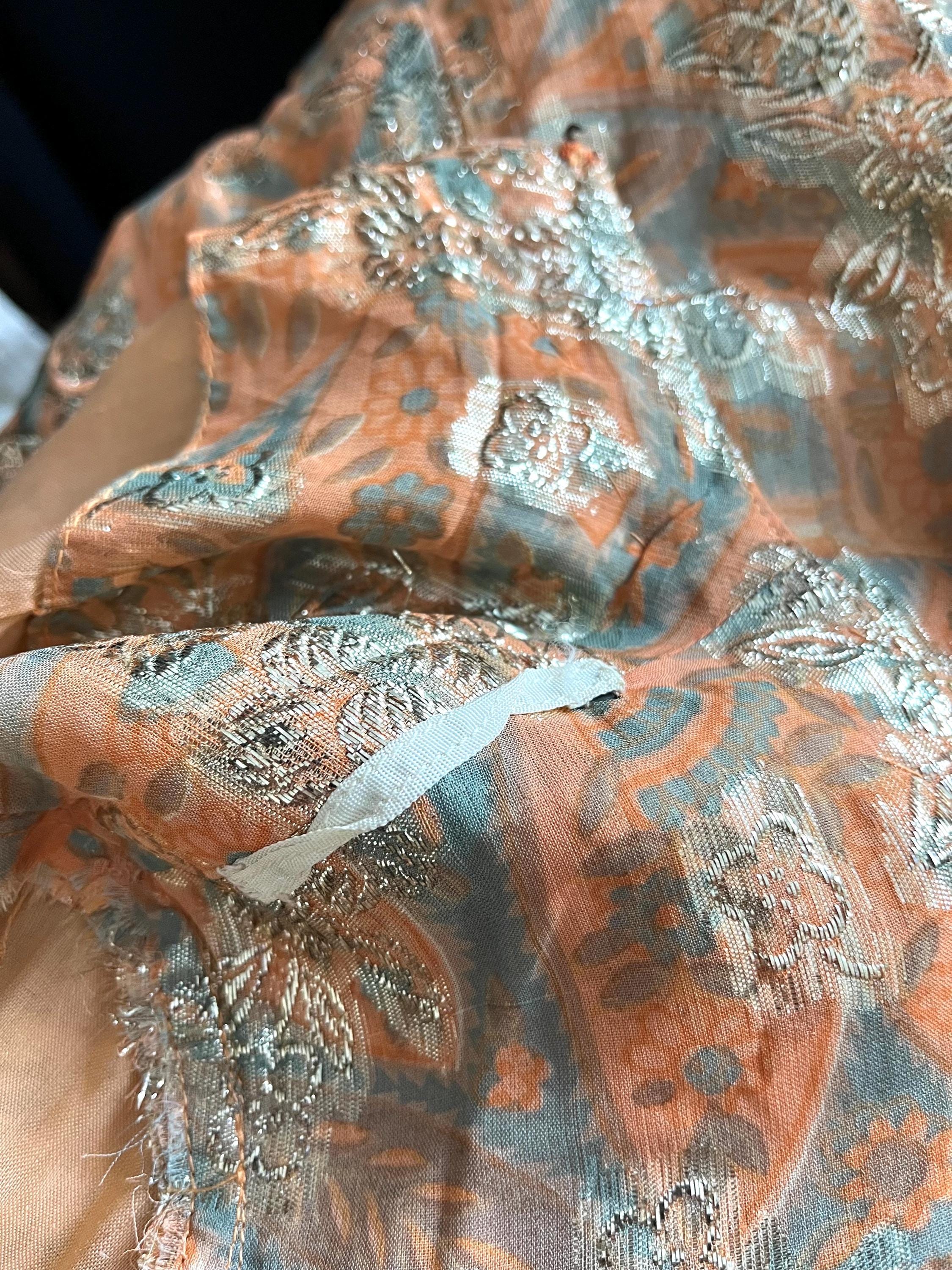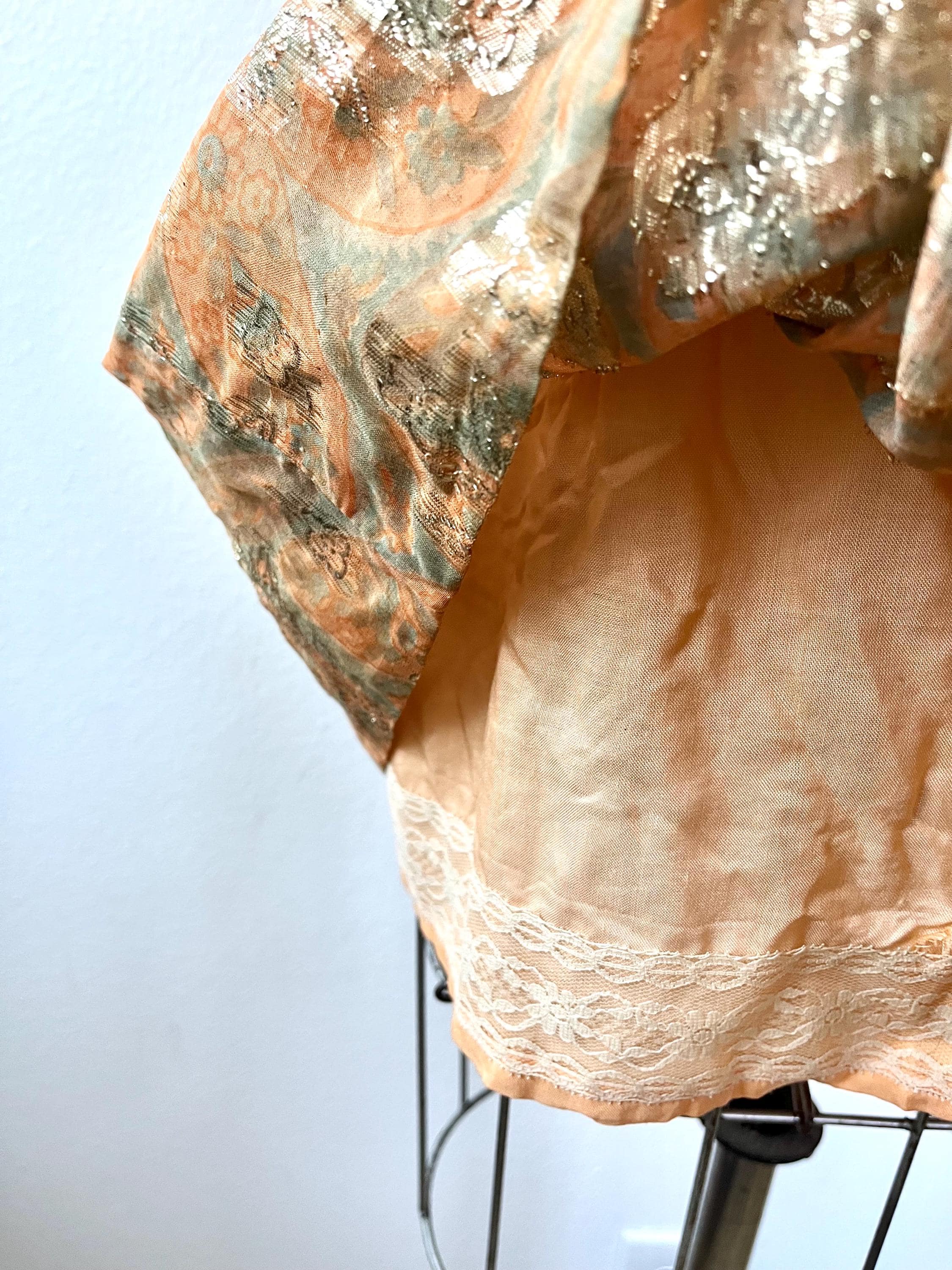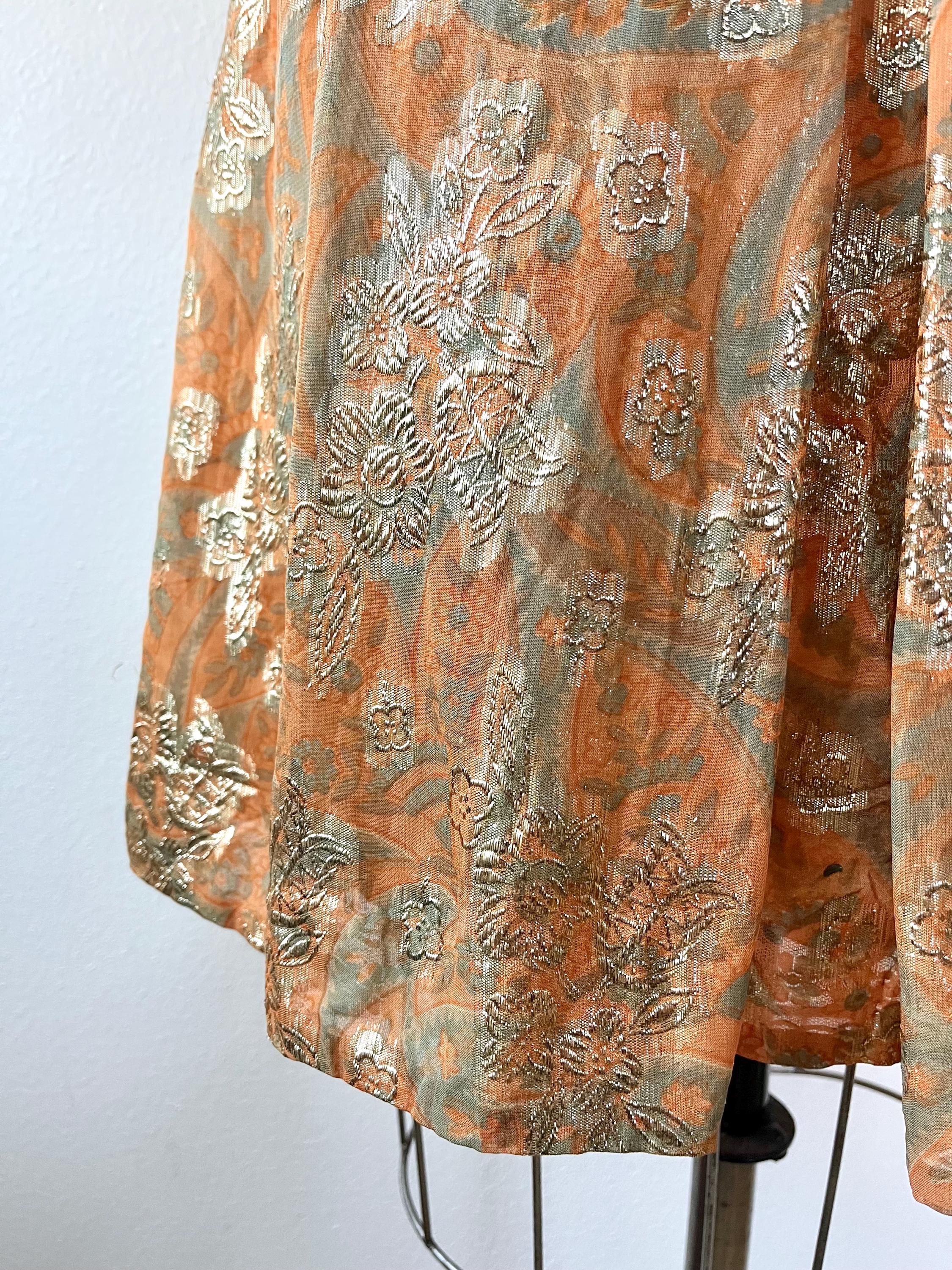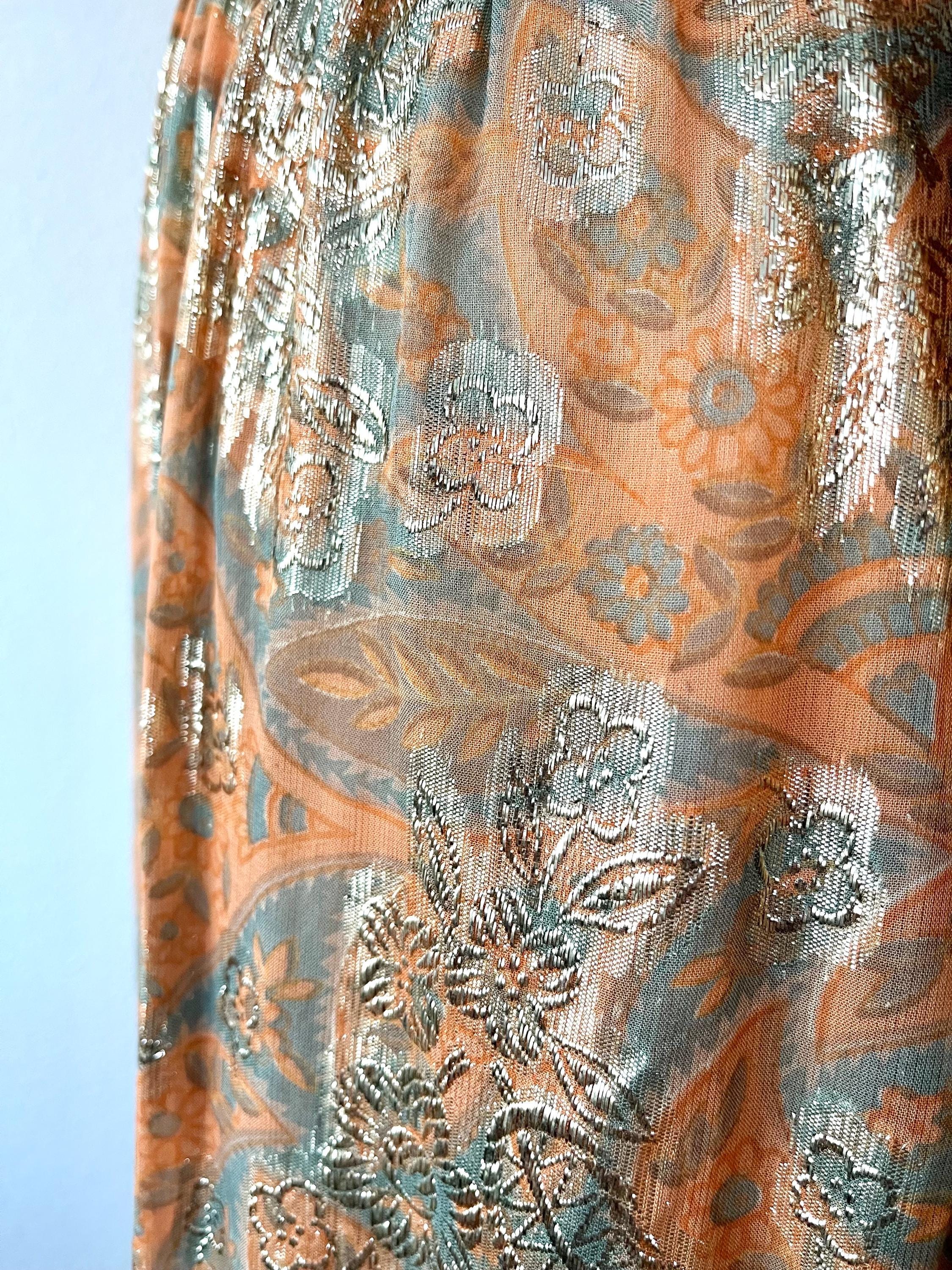 floral and paisley print with metallic lamé floral pattern in an overlay design