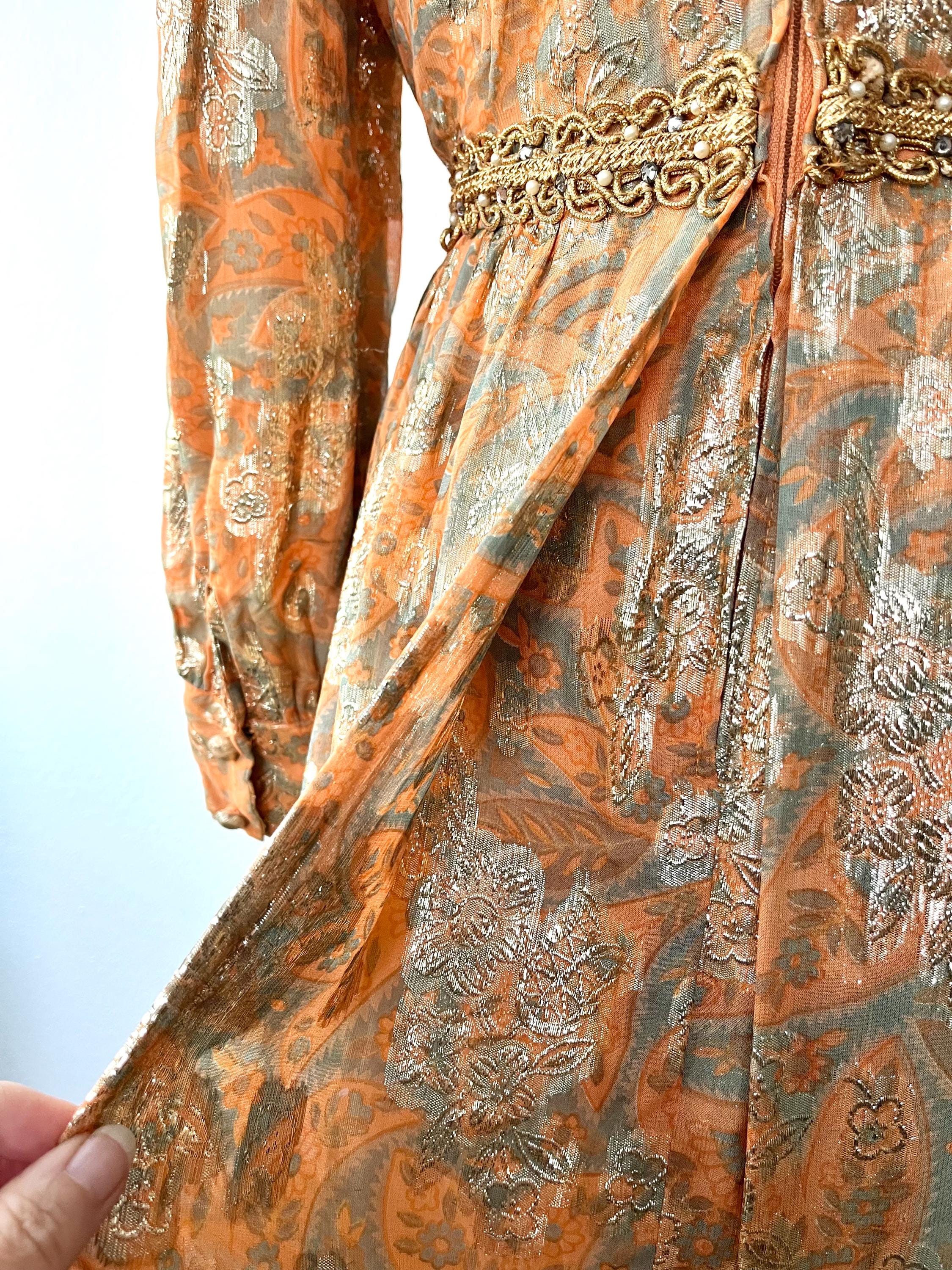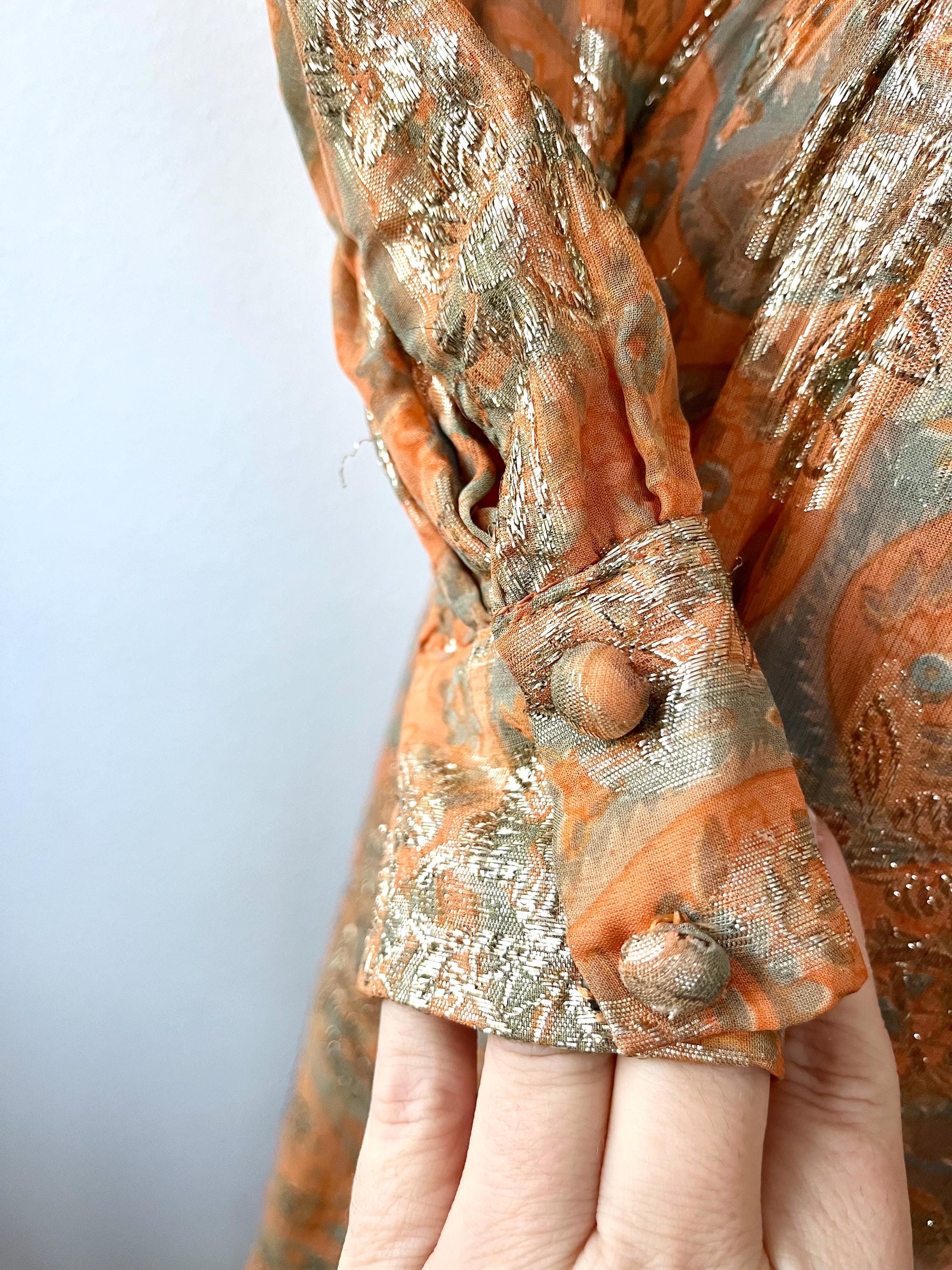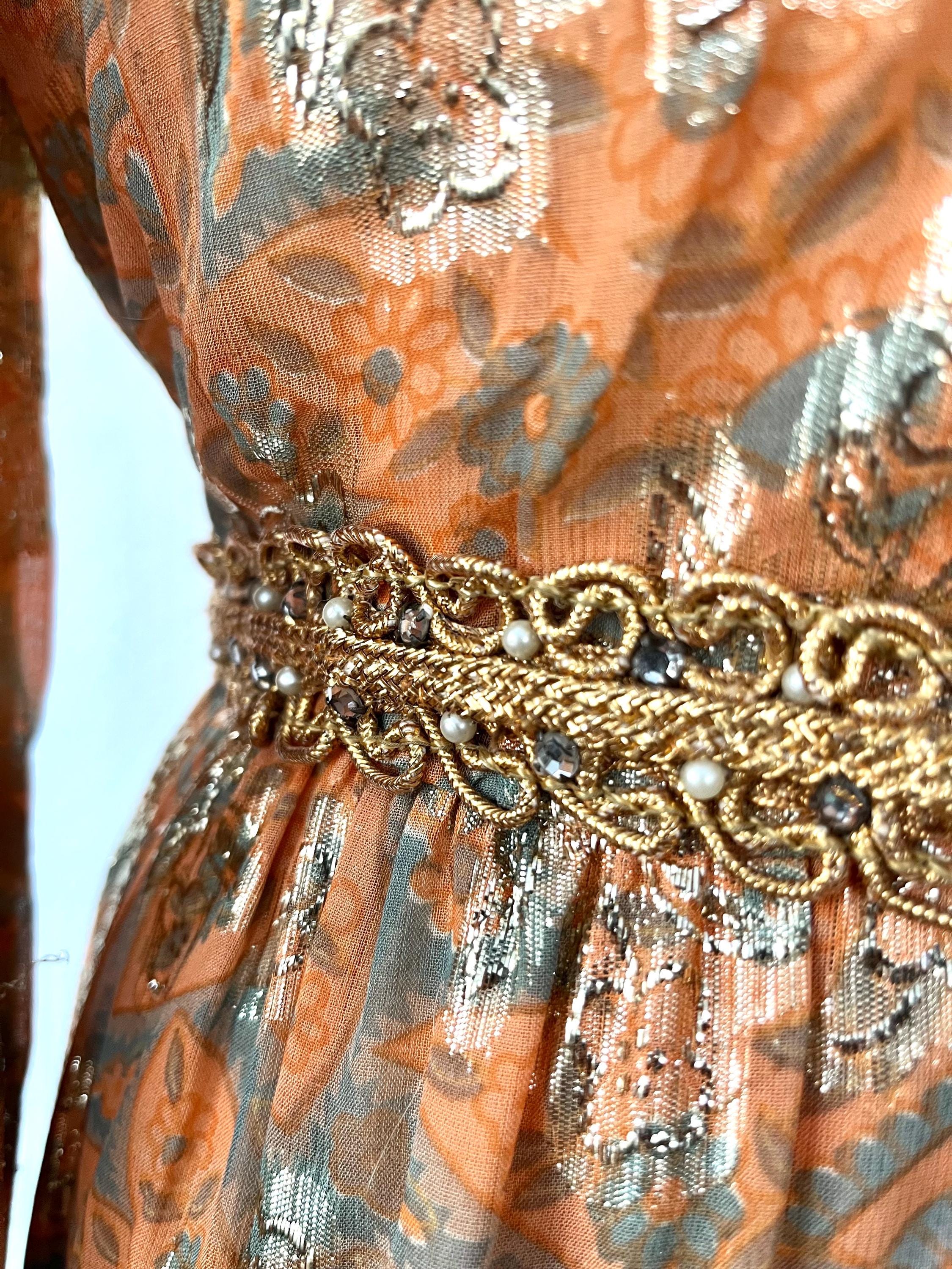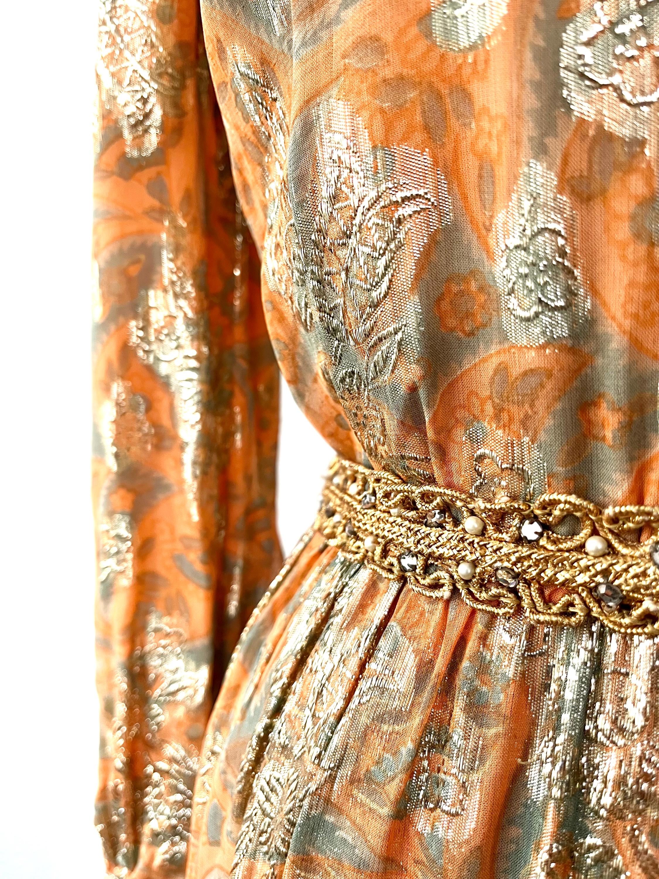 floral and paisley print with metallic lamé floral pattern in an overlay design