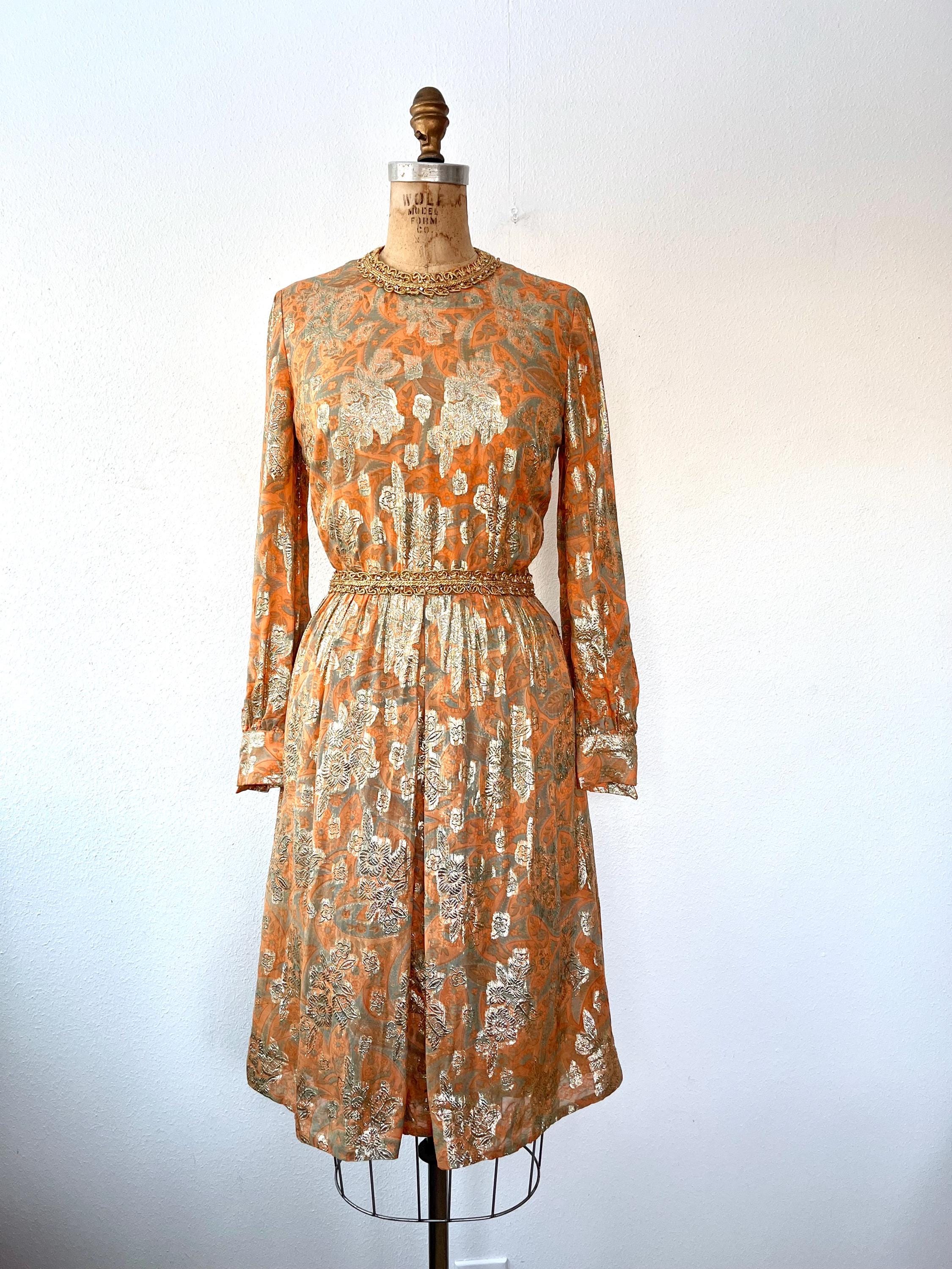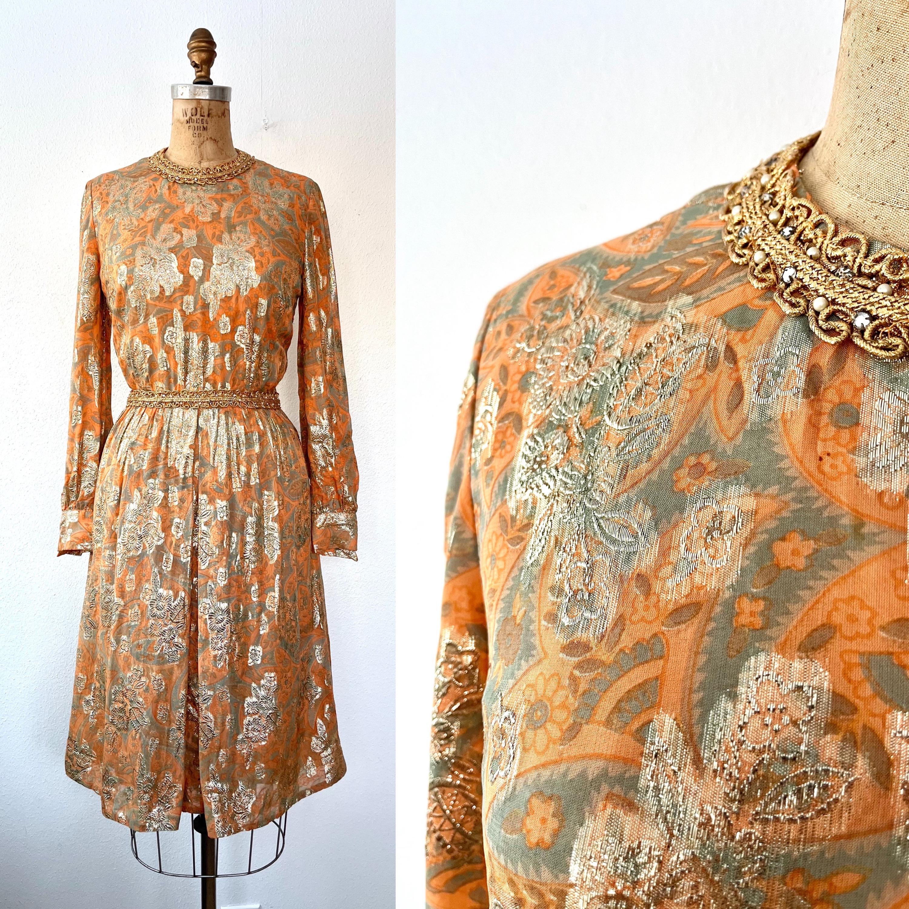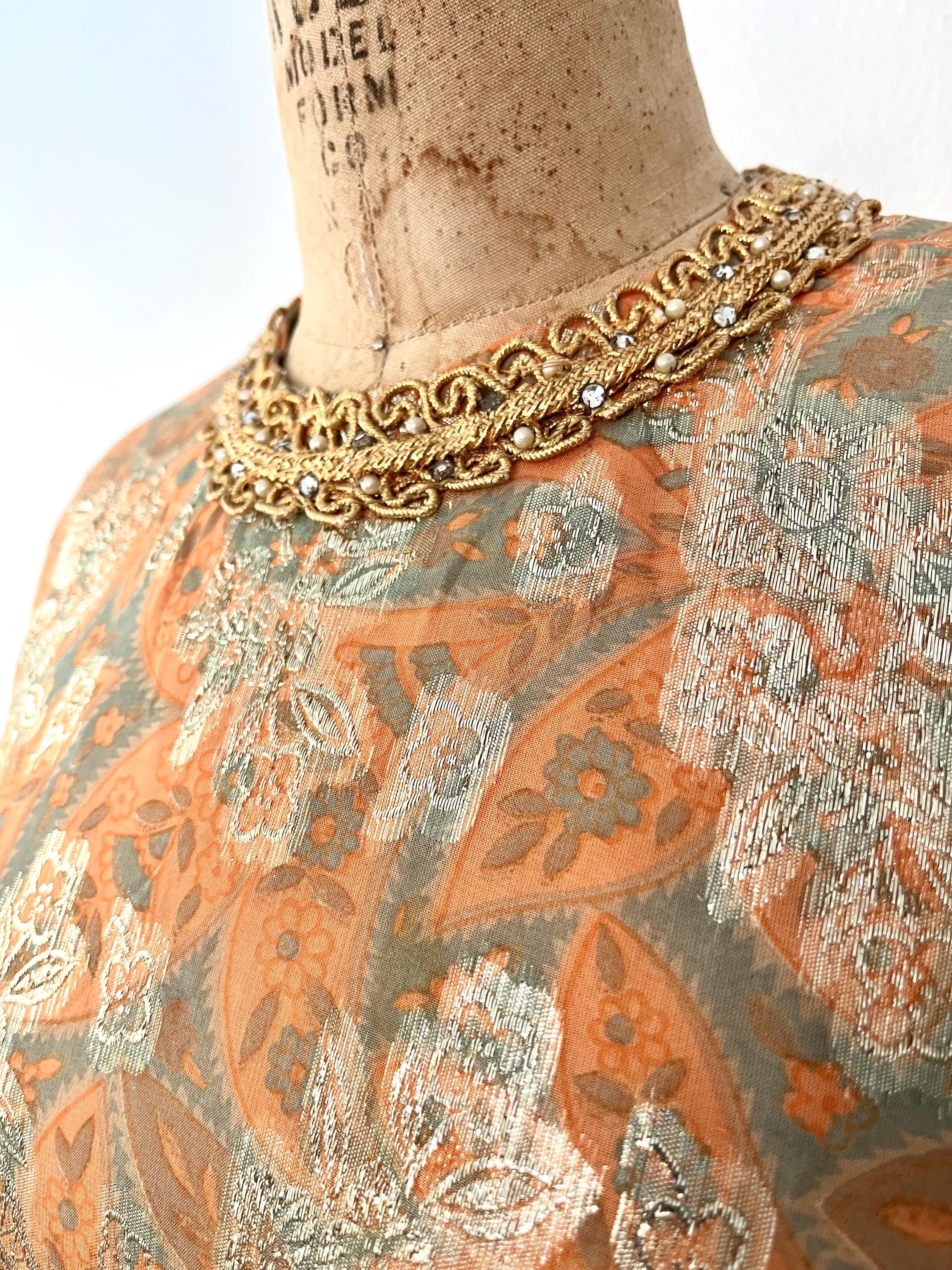 Vintage 60s Lamé Silk Chiffon Tunic Dress
