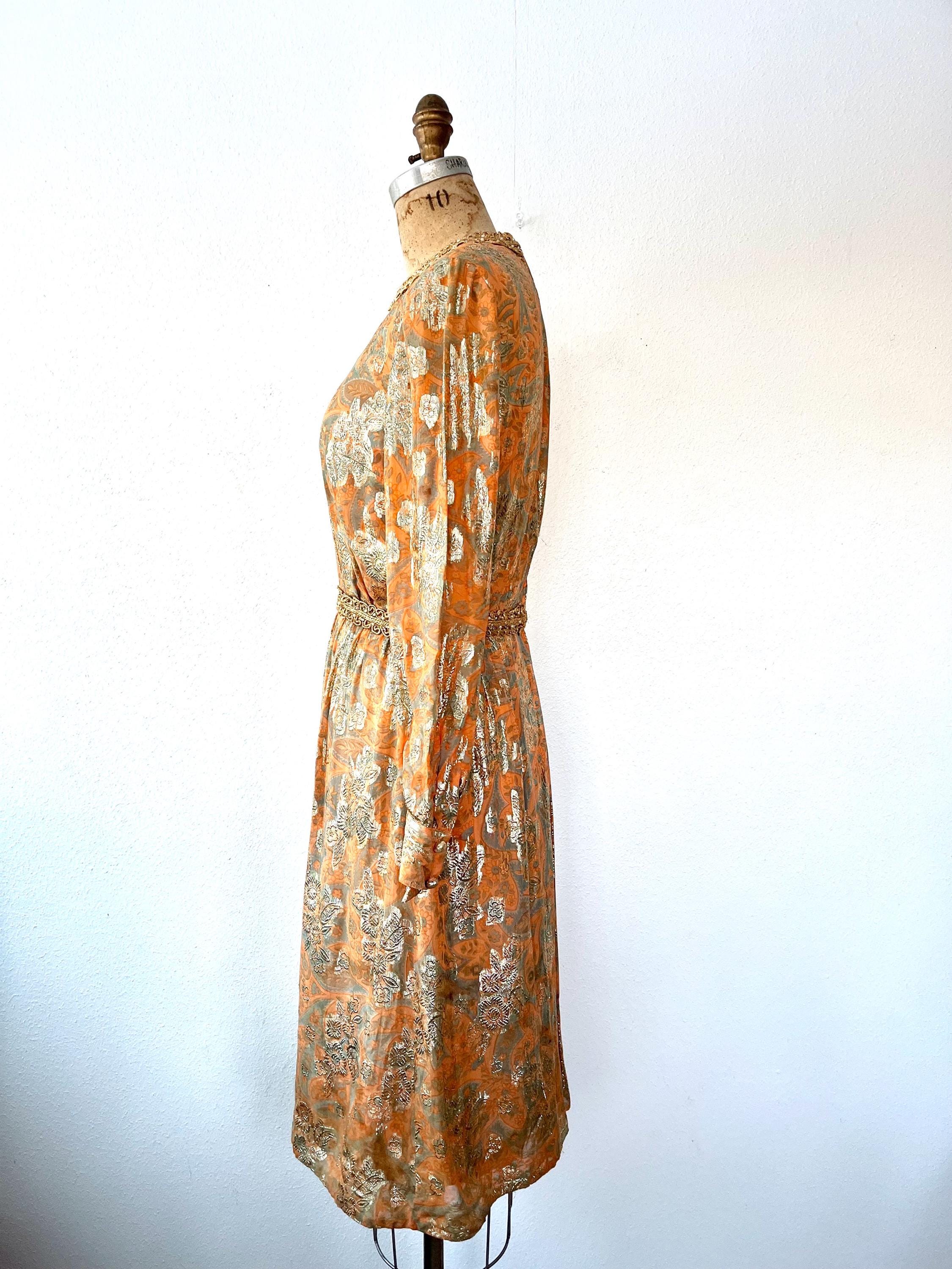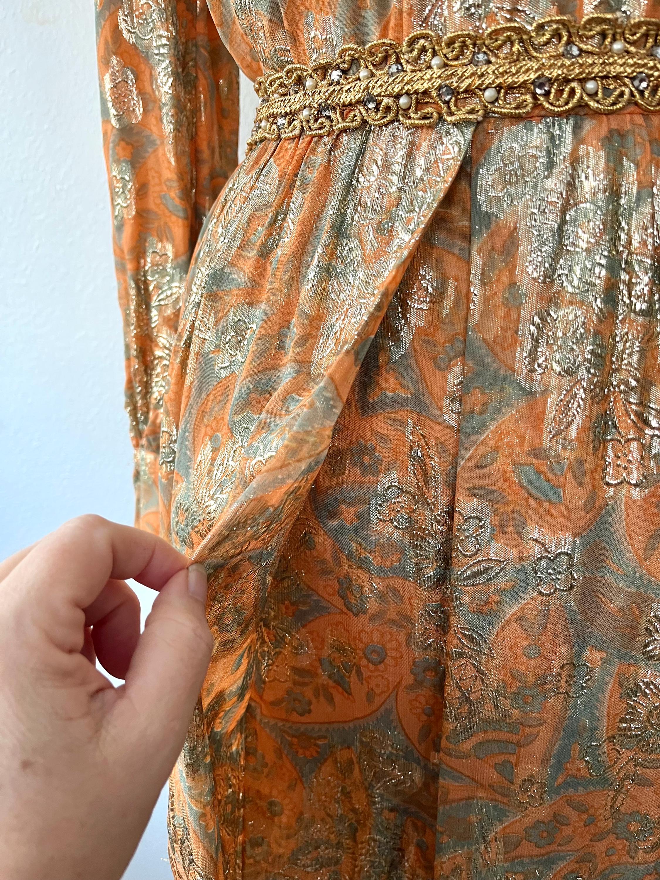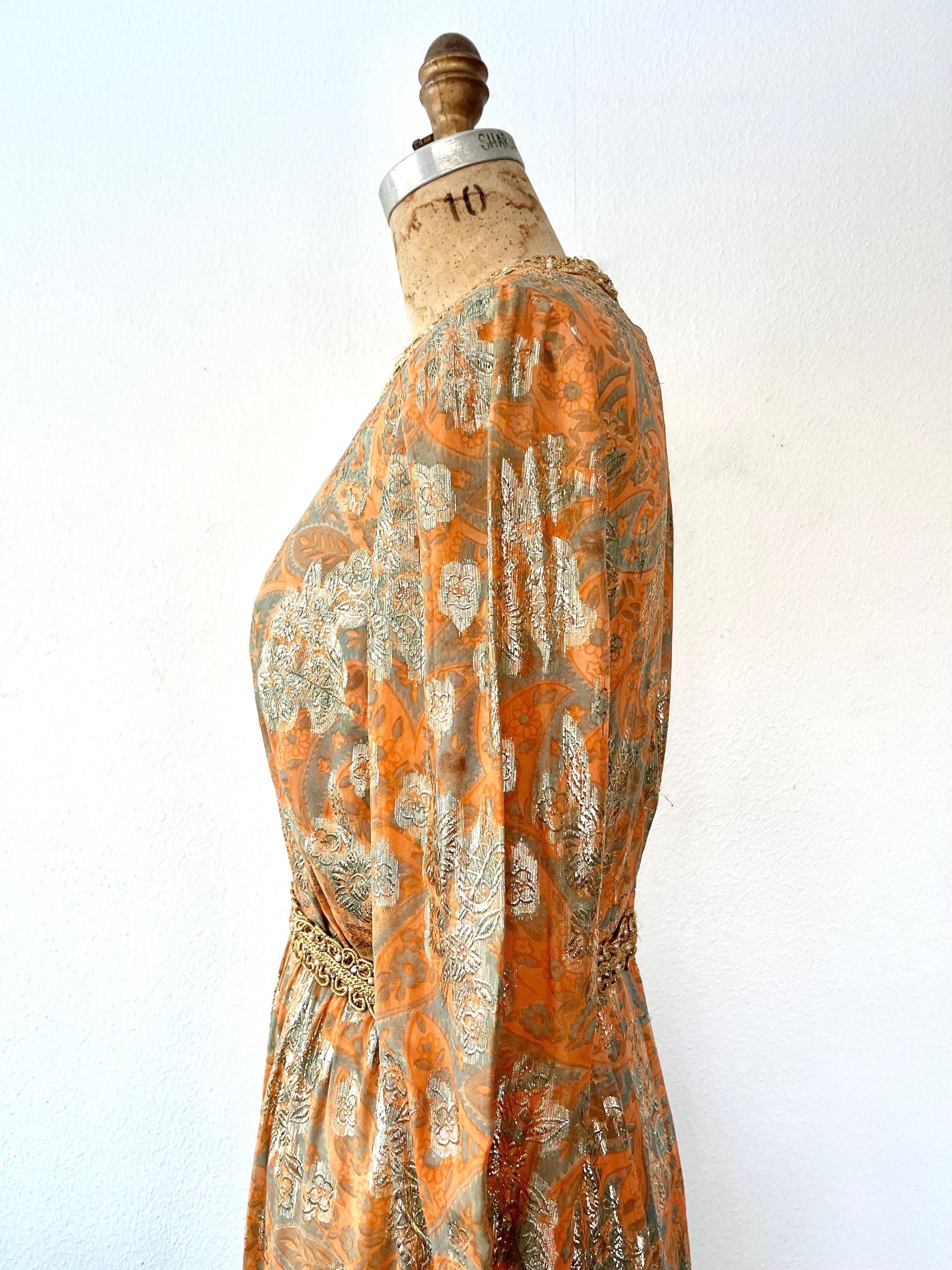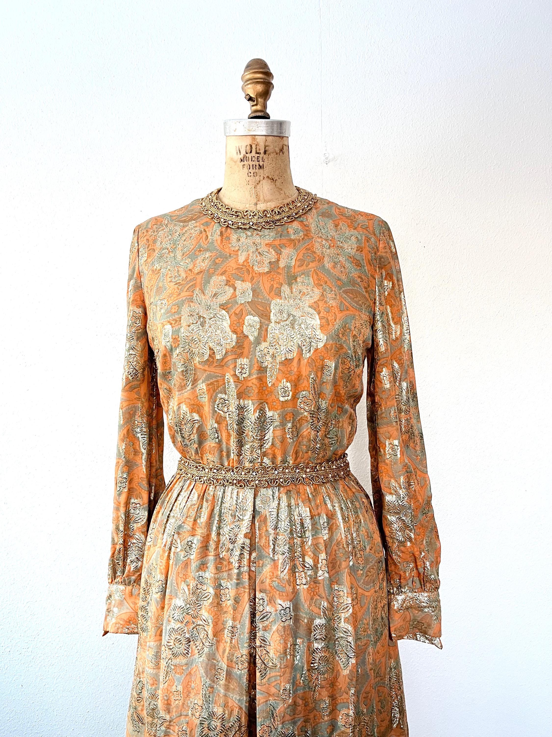 Vintage 60s Lamé Silk Chiffon Tunic Dress