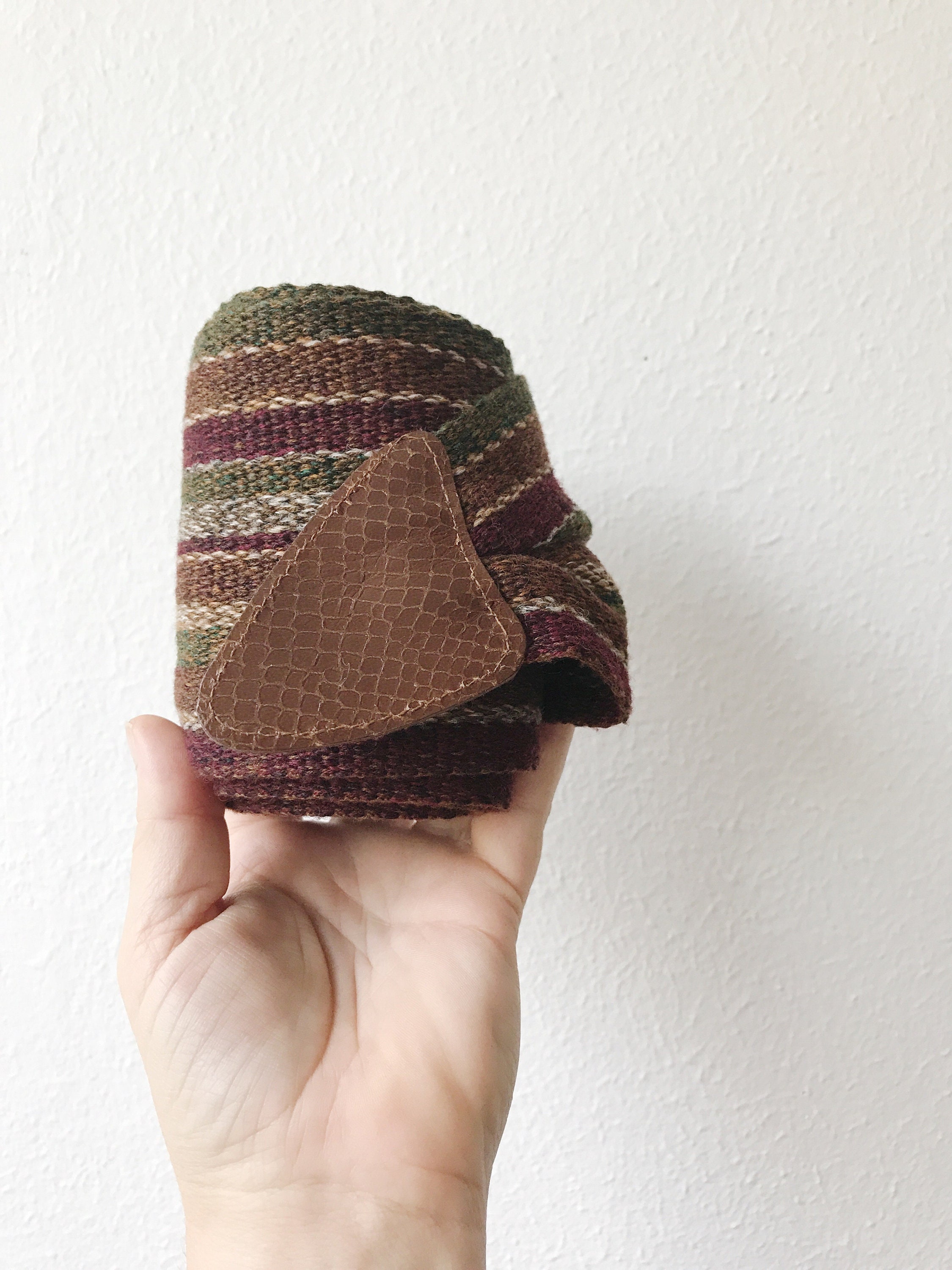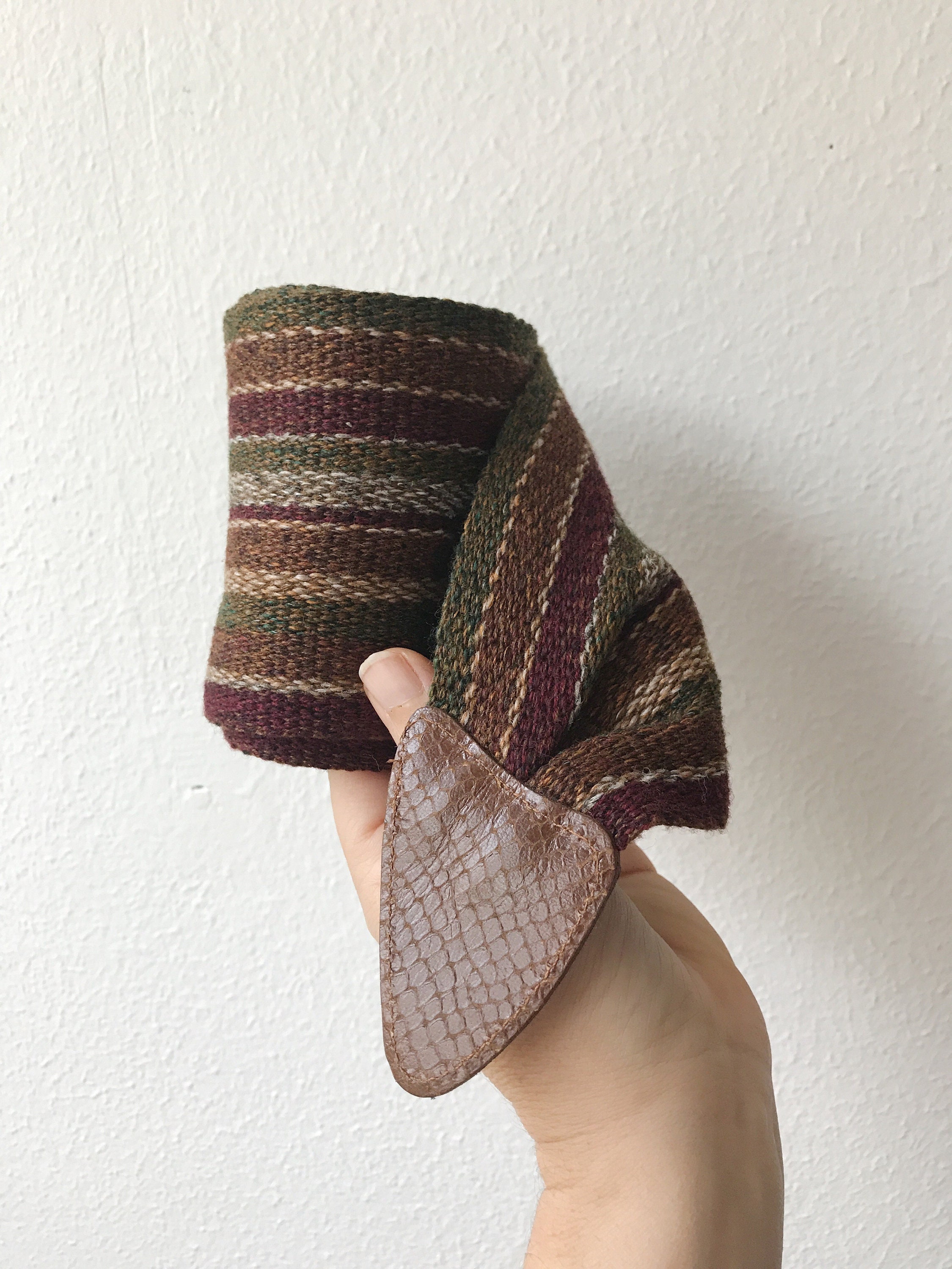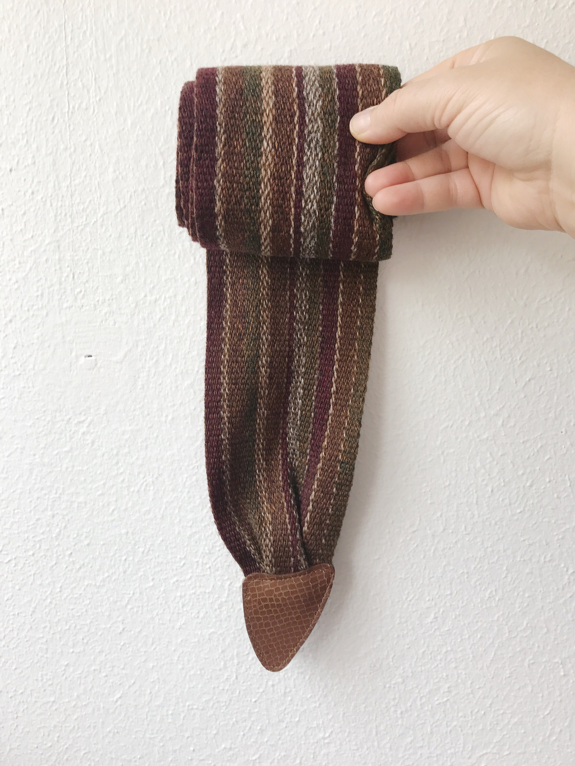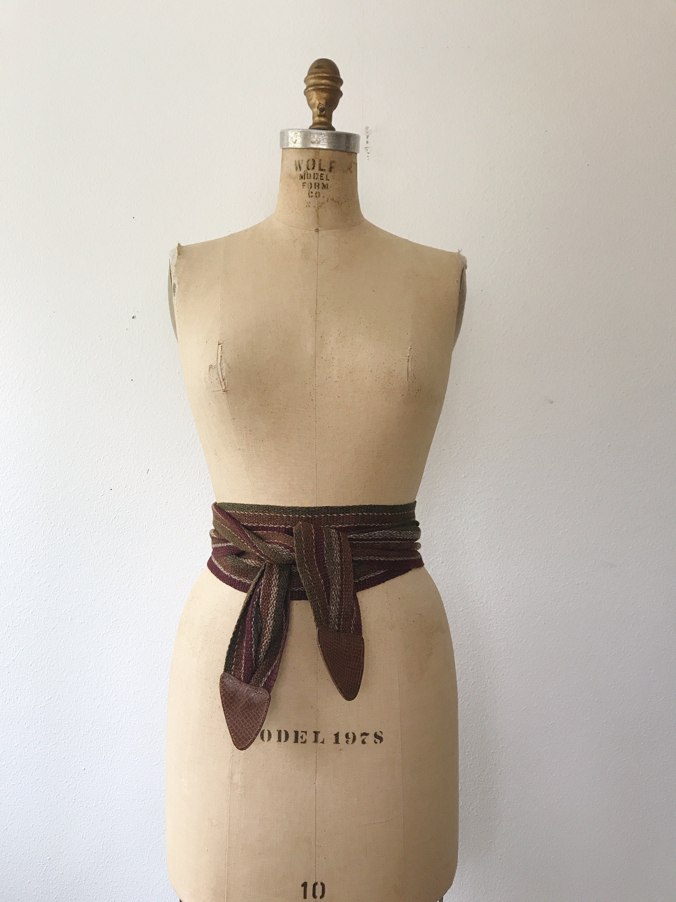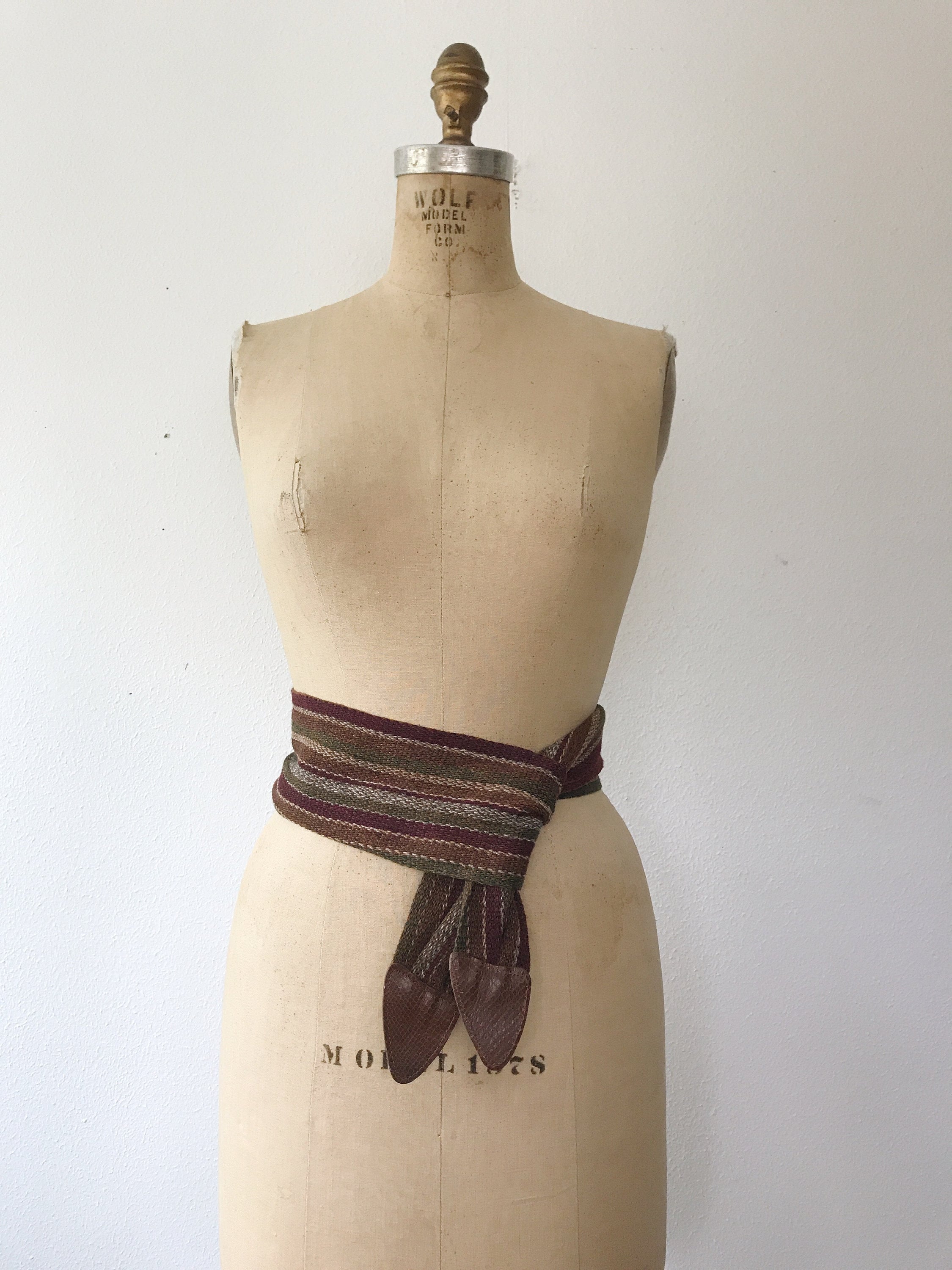 80s vintage woven cotton belt with snake embossed leather tips