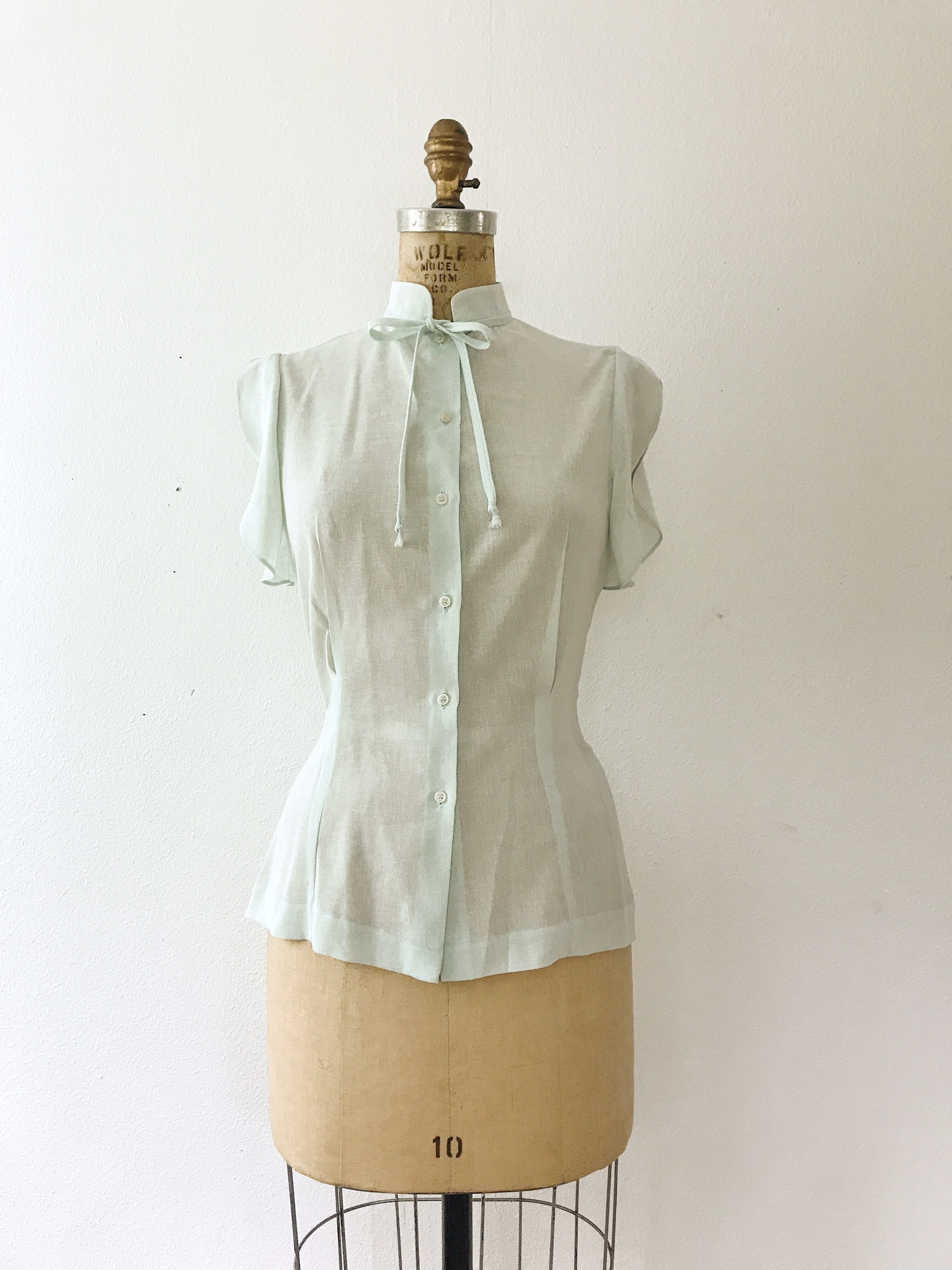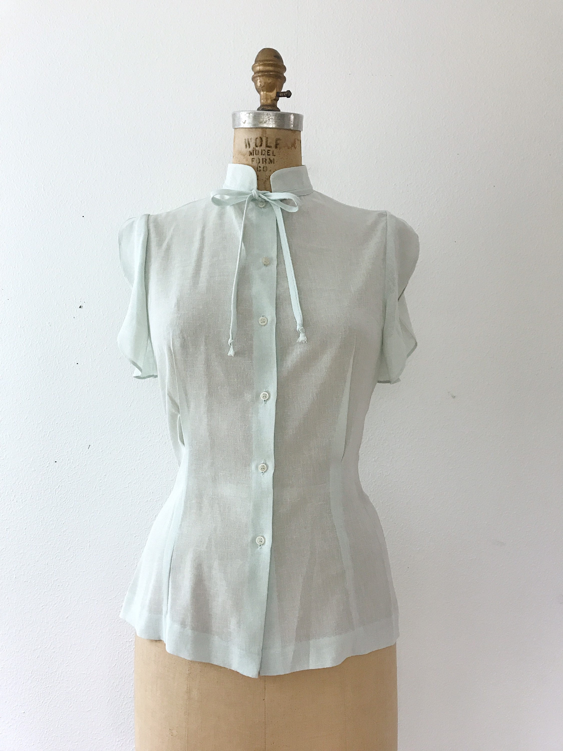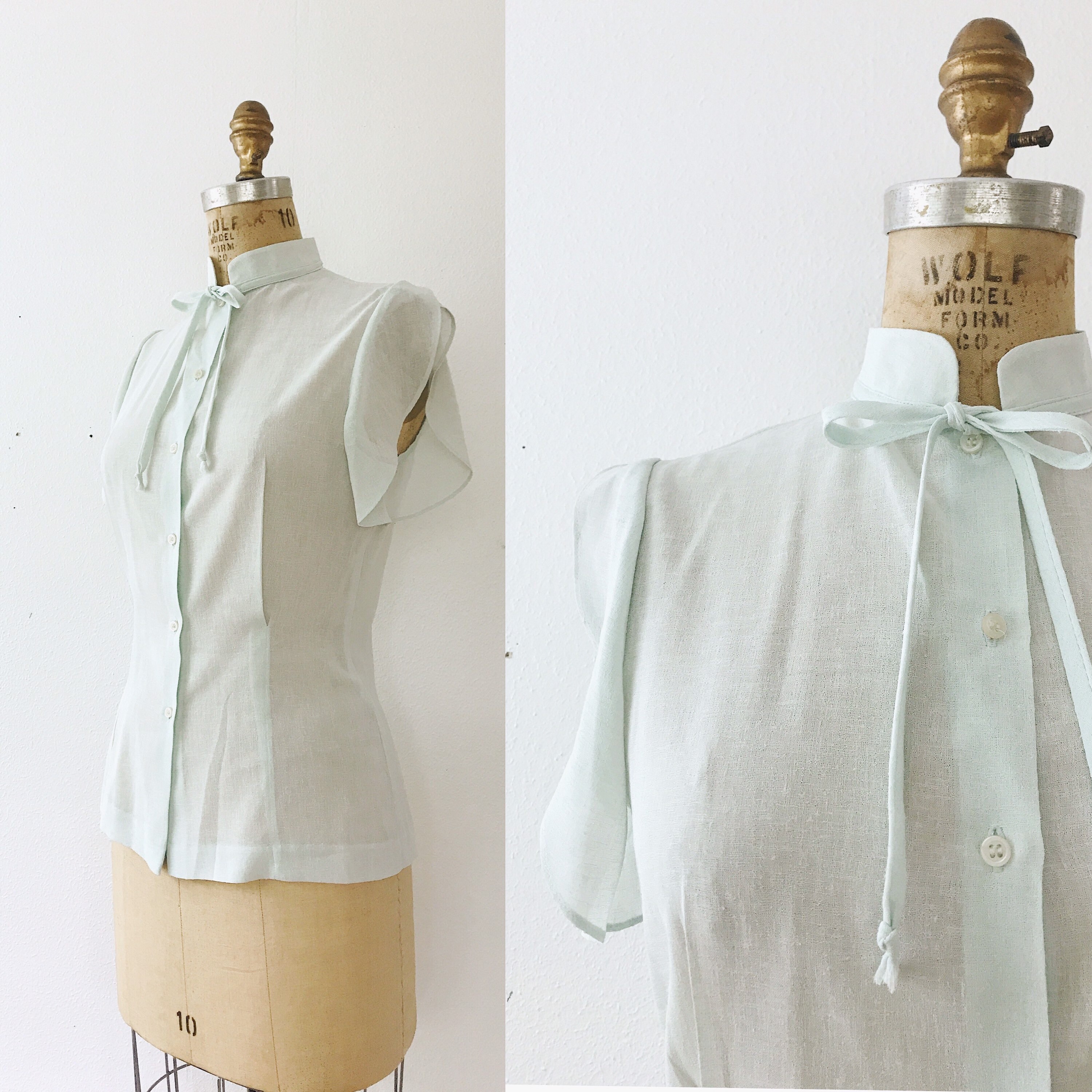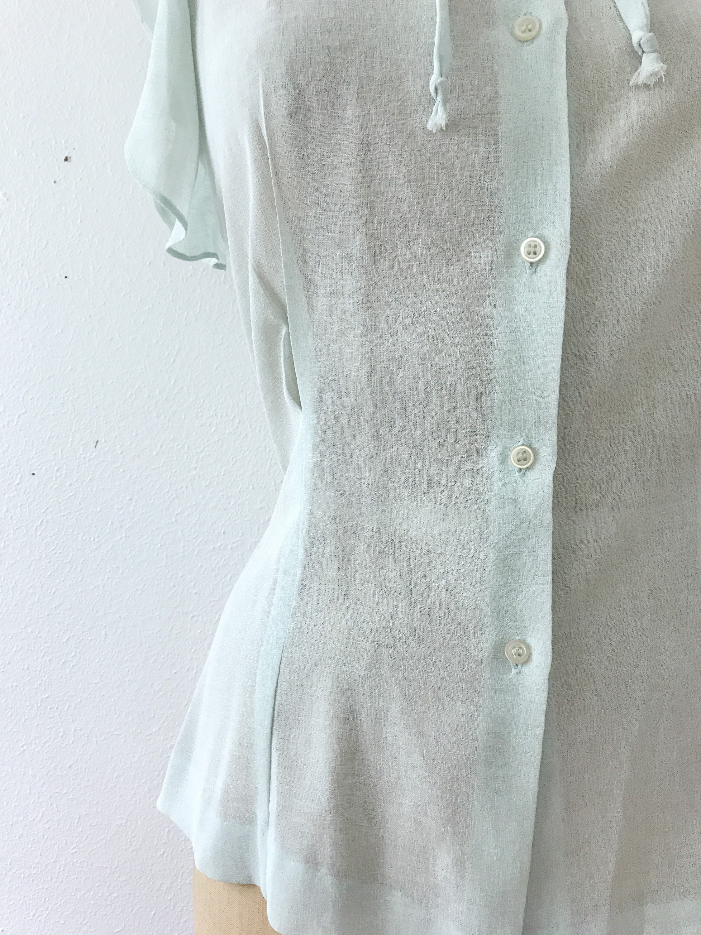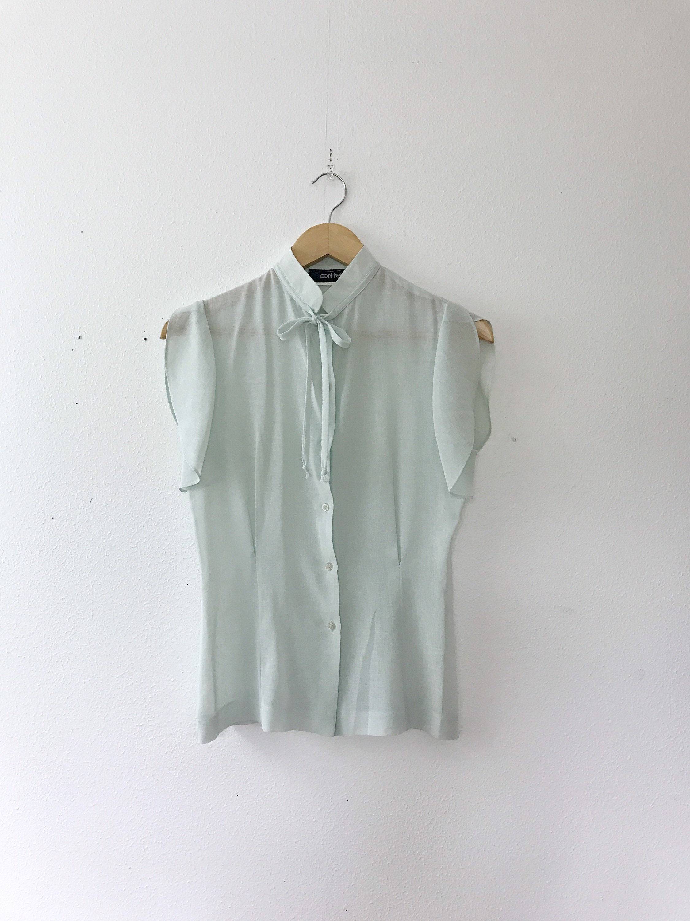 70s sheer mint blouse with pretty details
