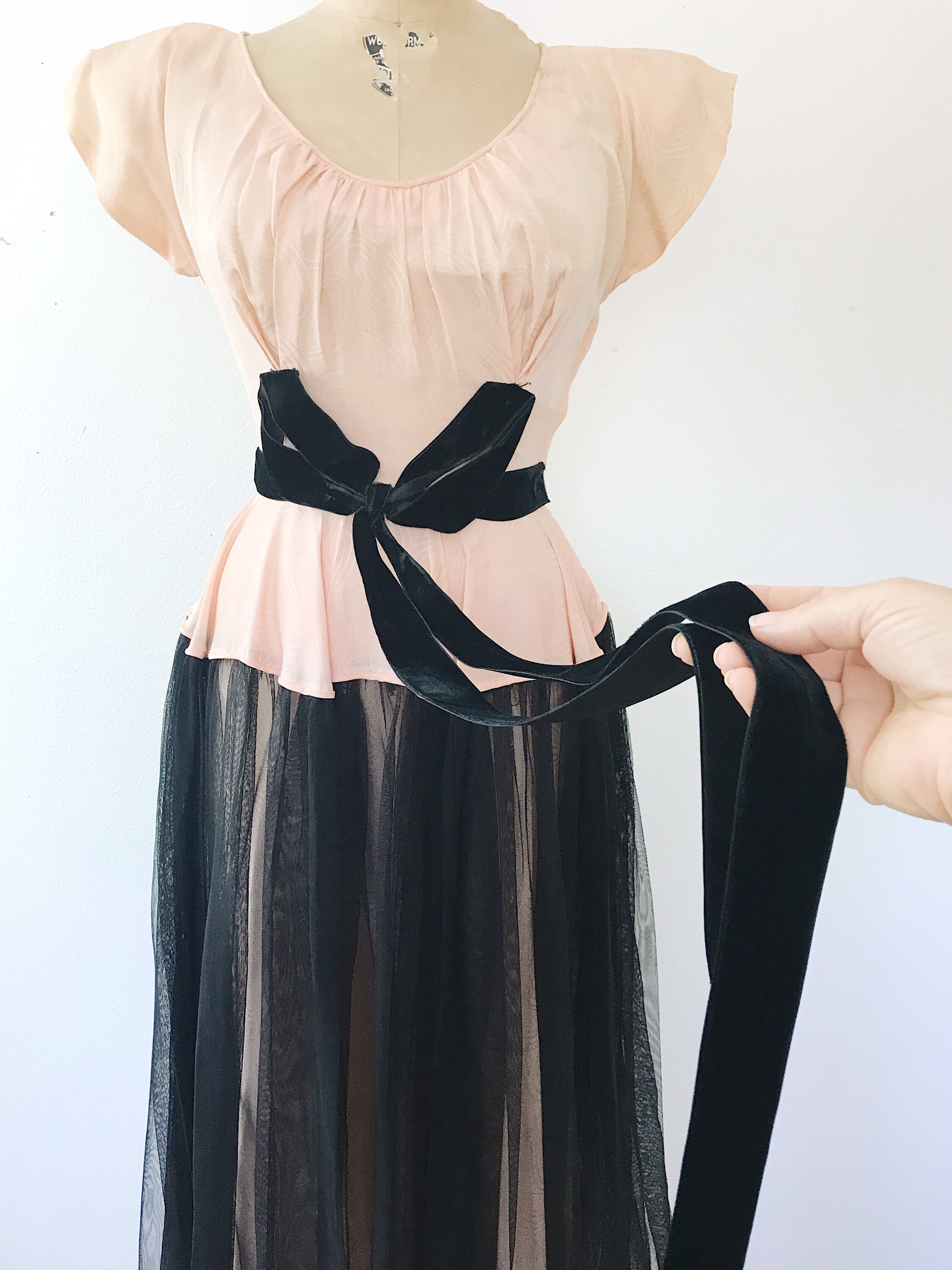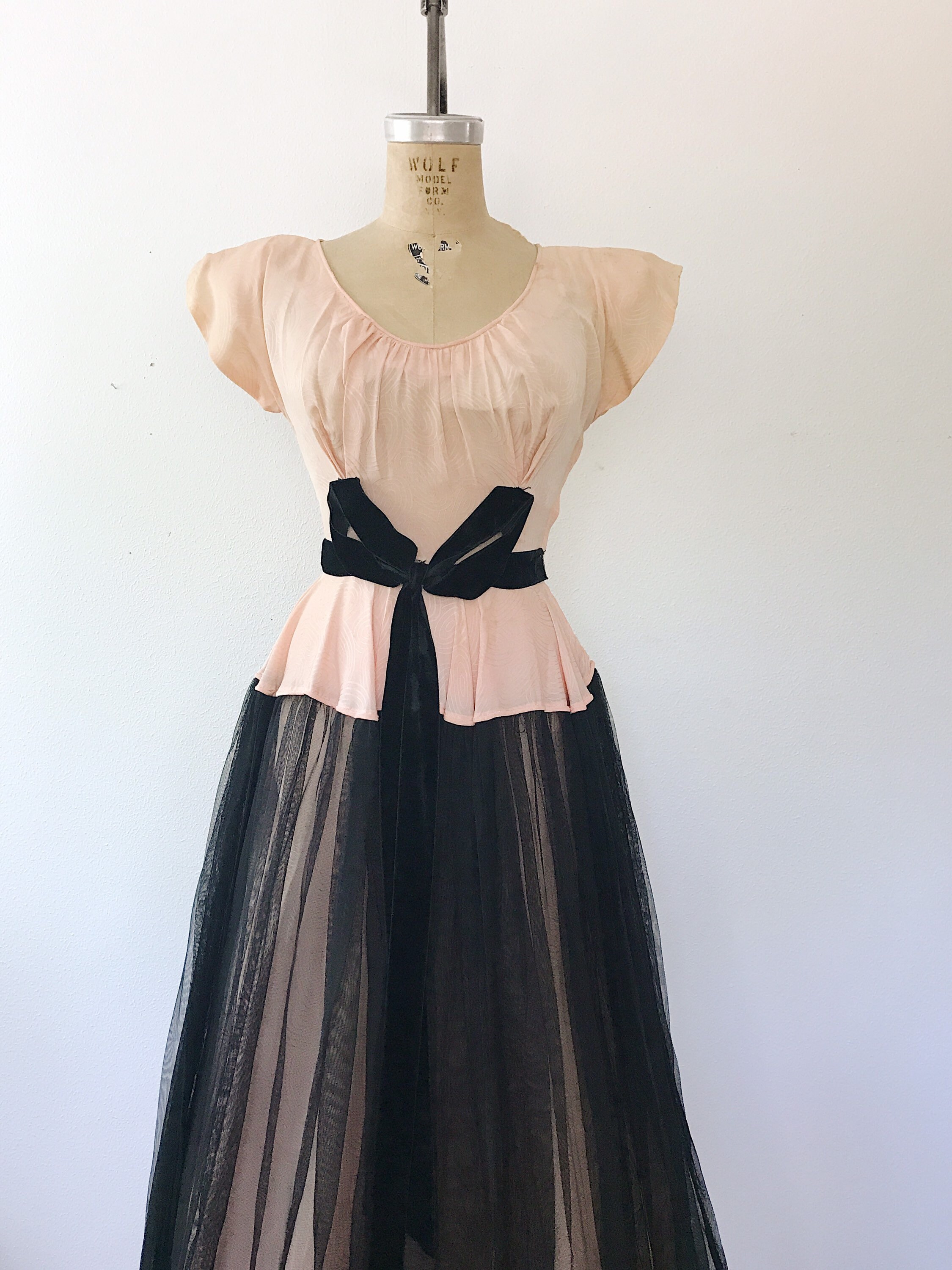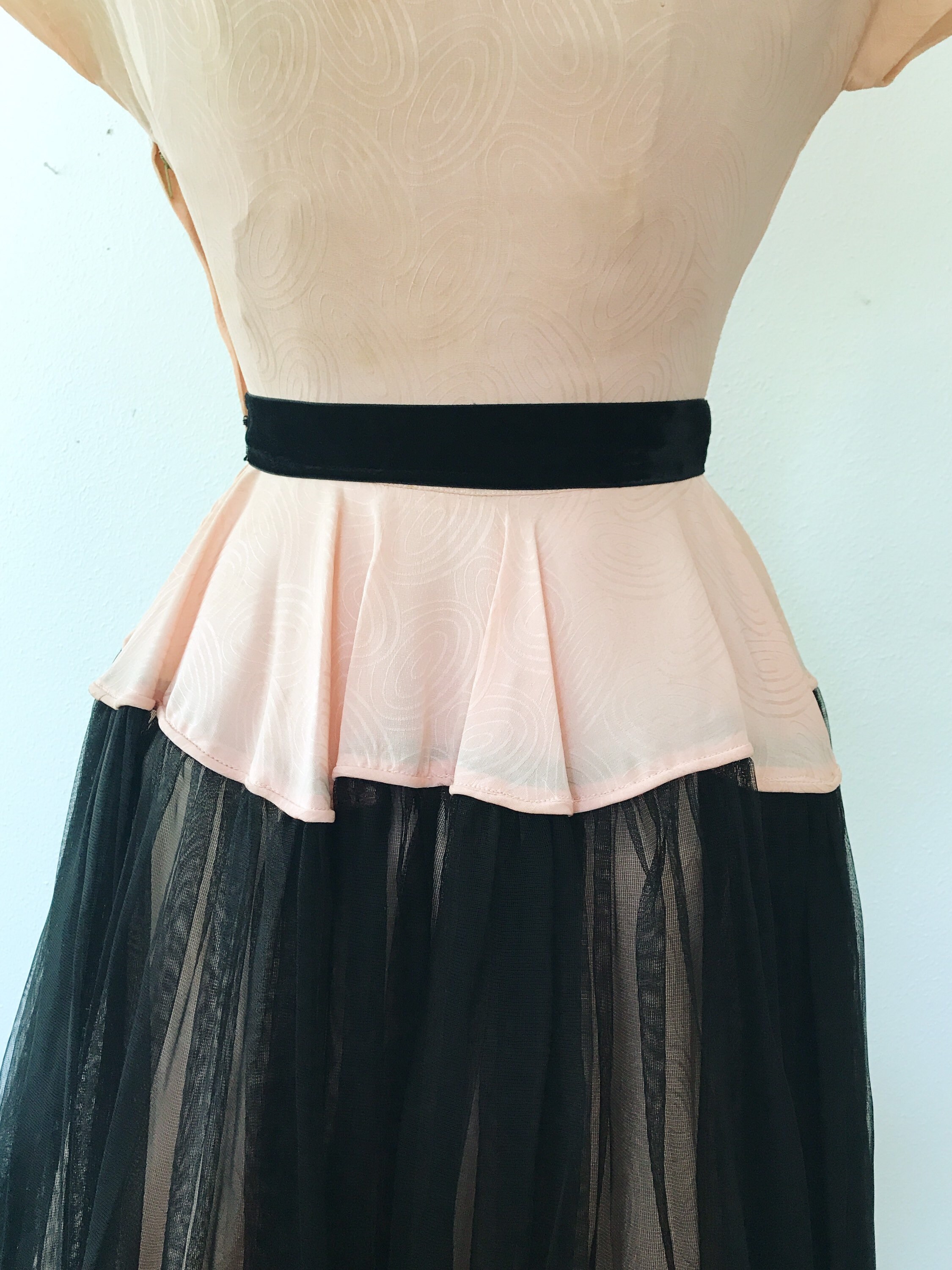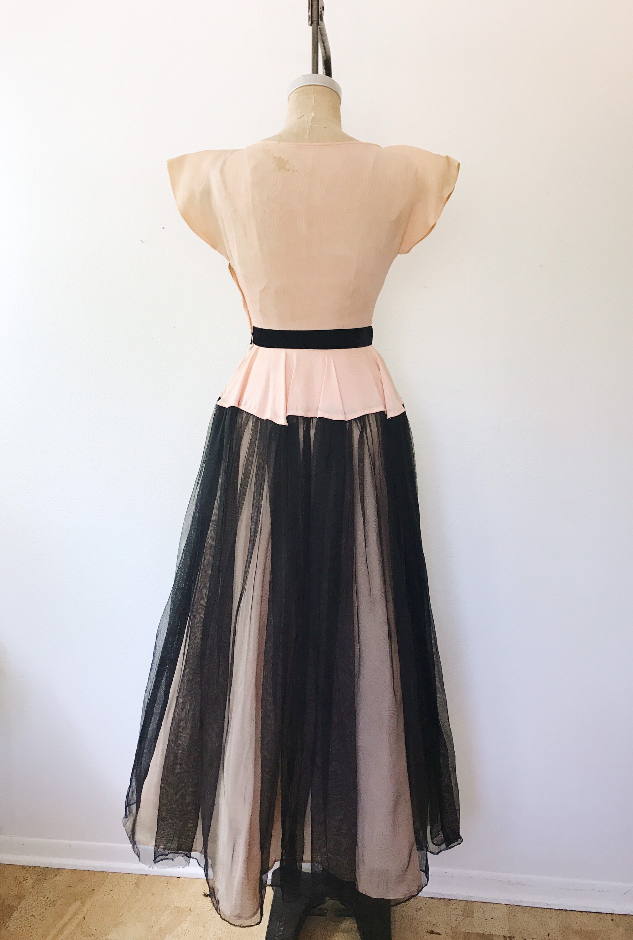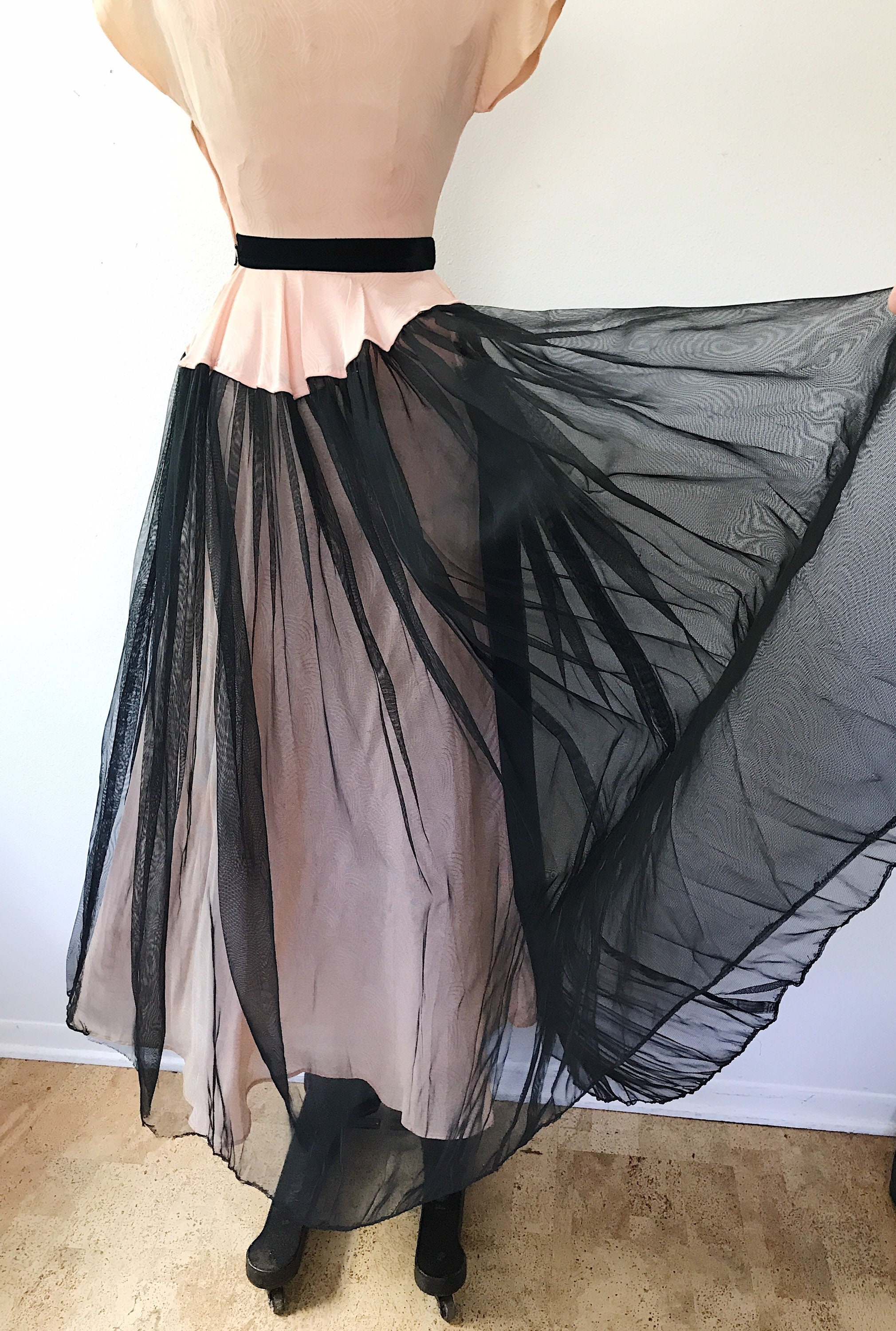 black netting overlay on the sweeping skirt