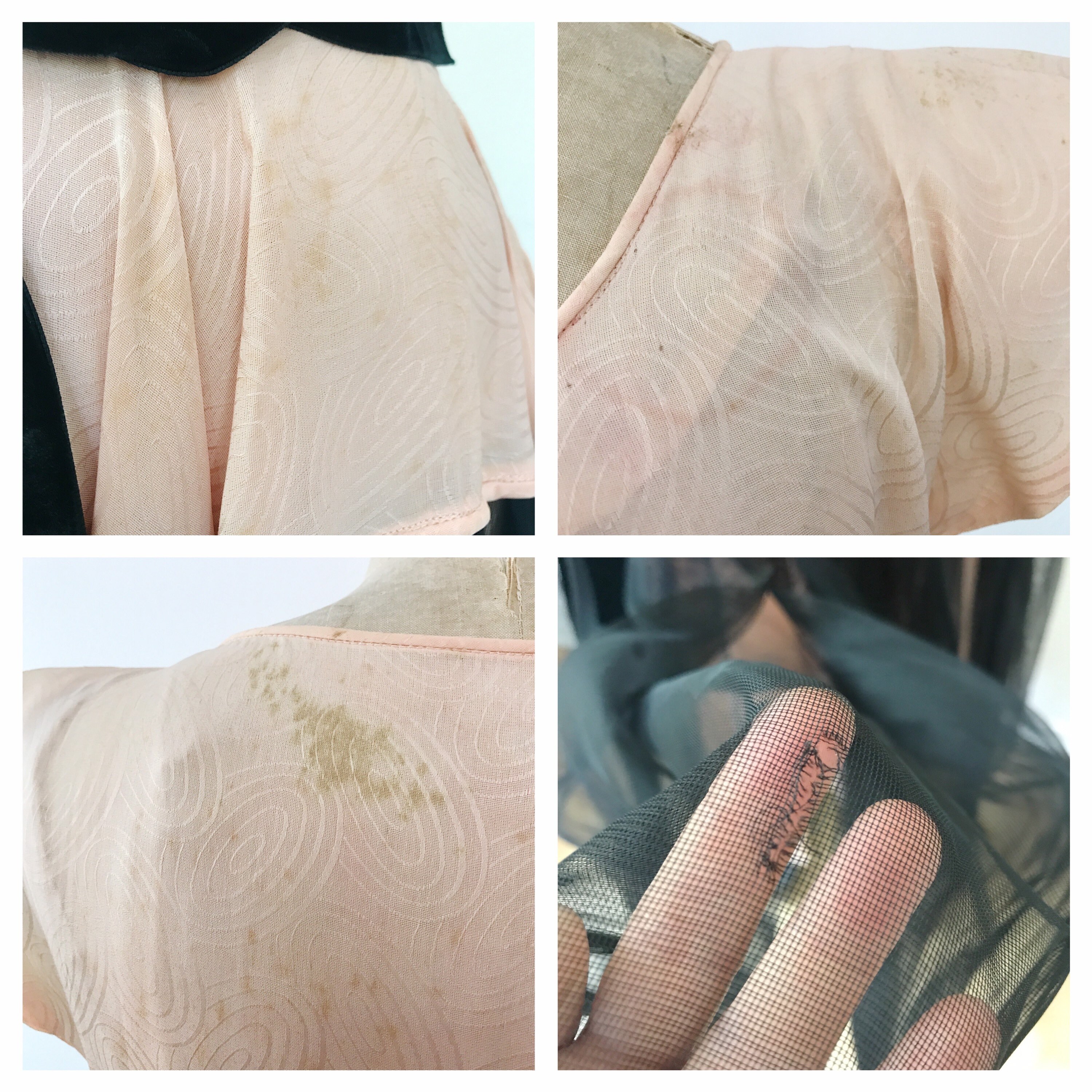 great structural condition- good overall condition, light overall staining on the peach voile- last photos