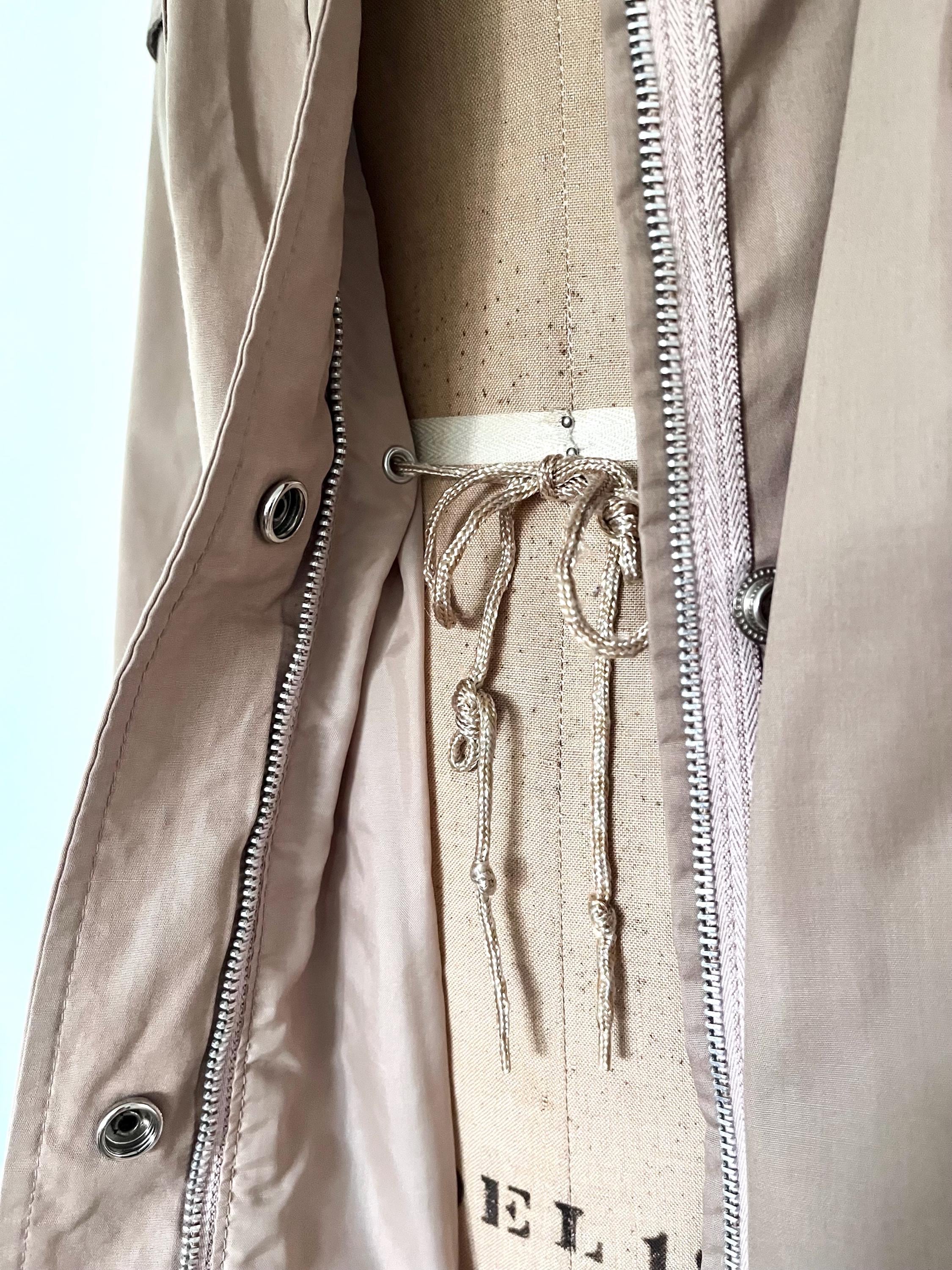 hidden hood and exposed silver zippers