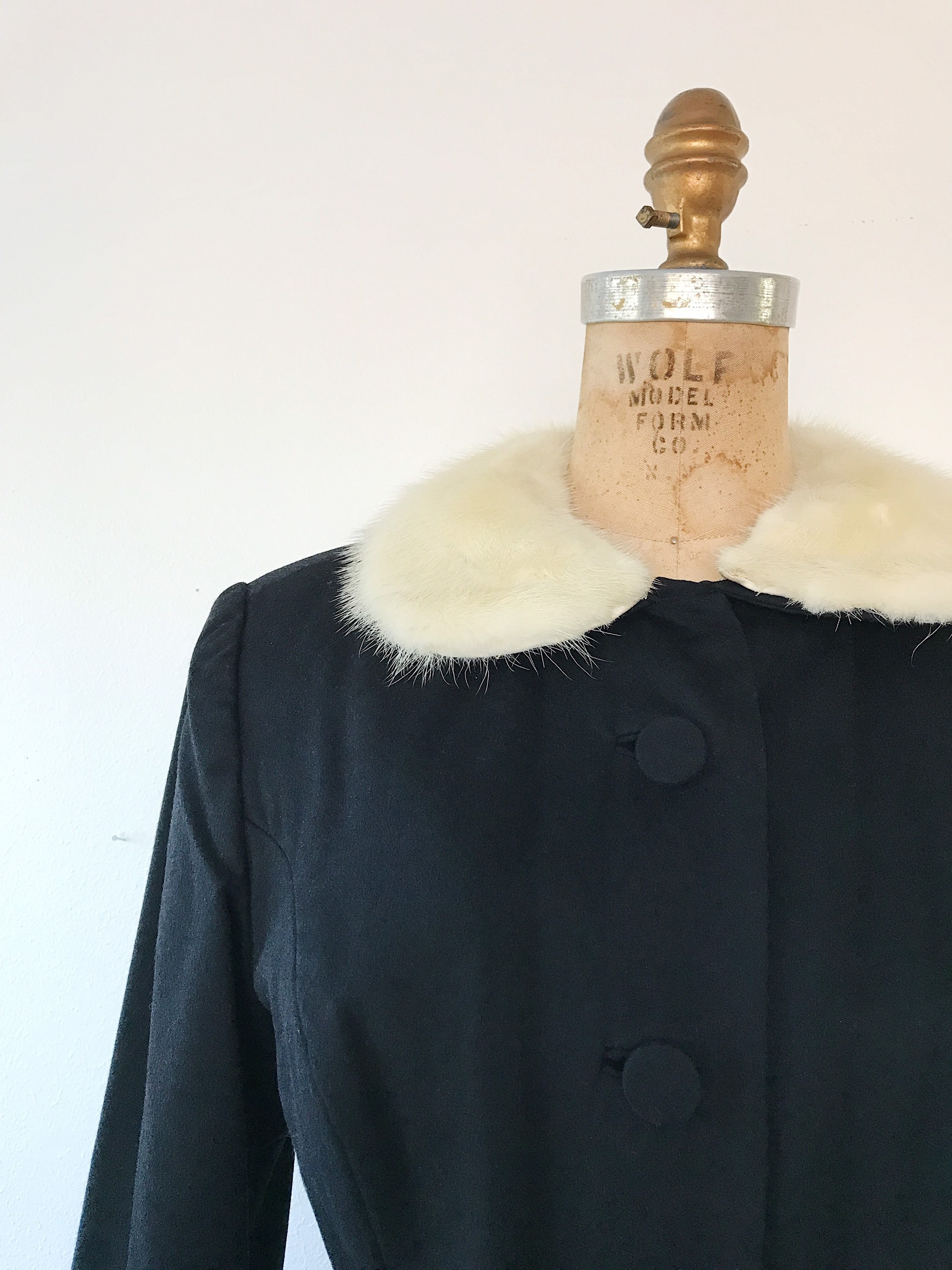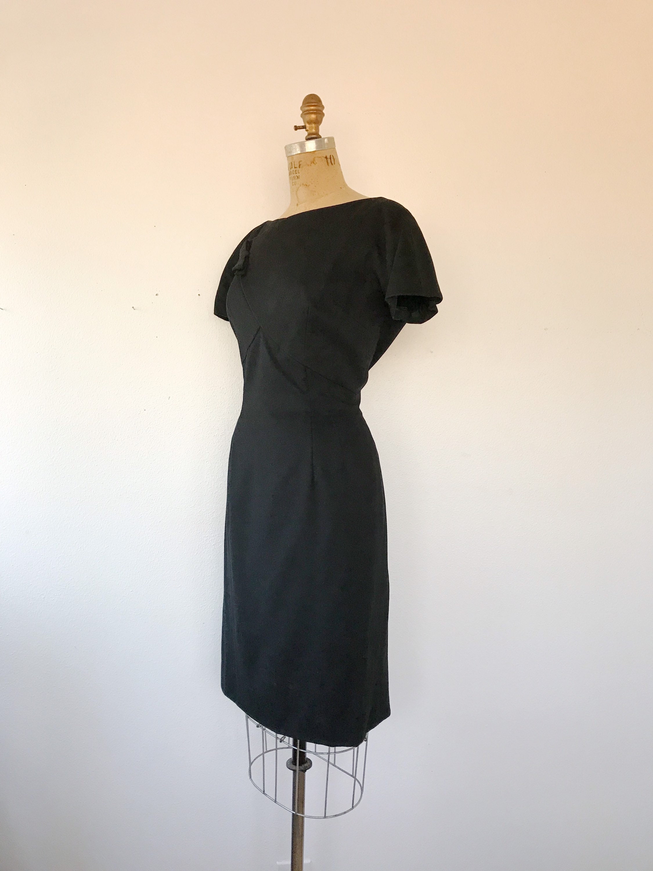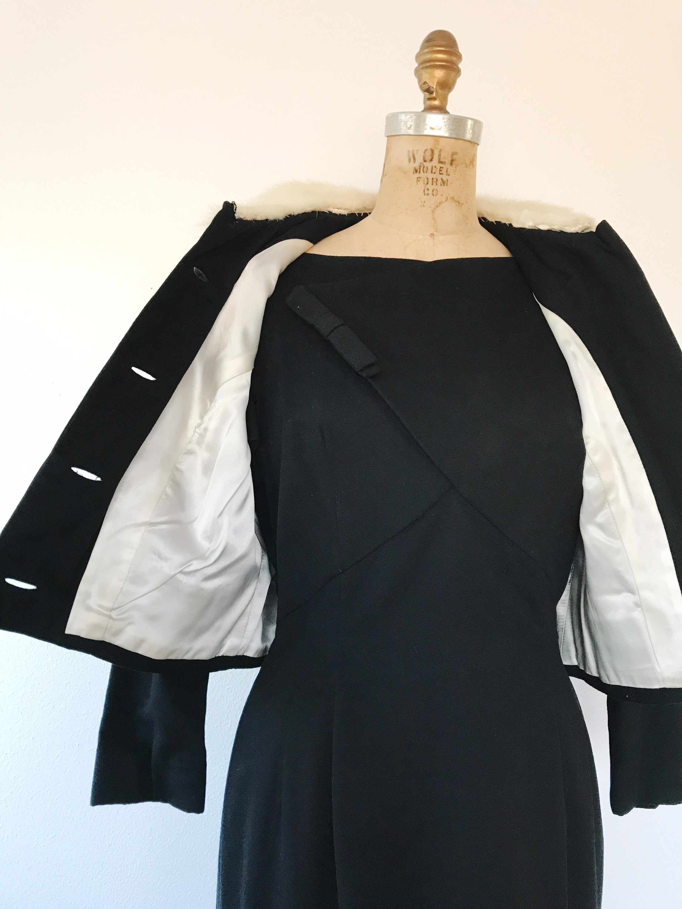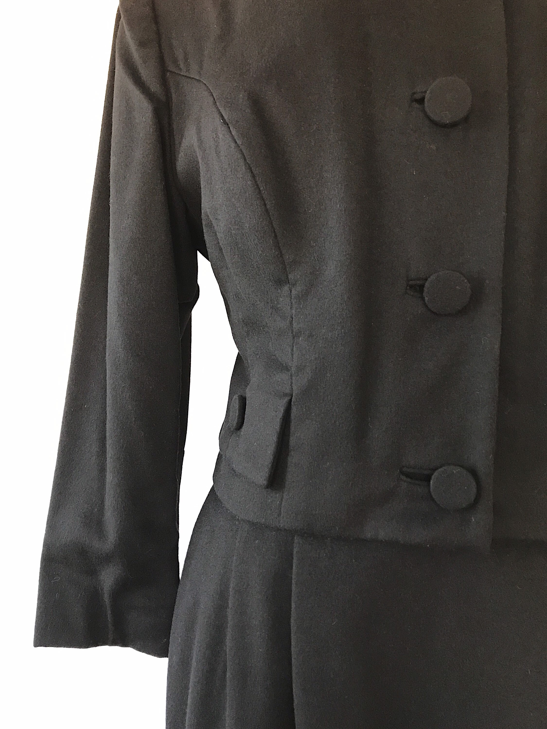 in a black flannel like fabric (or a thinner synthetic kind of wool)